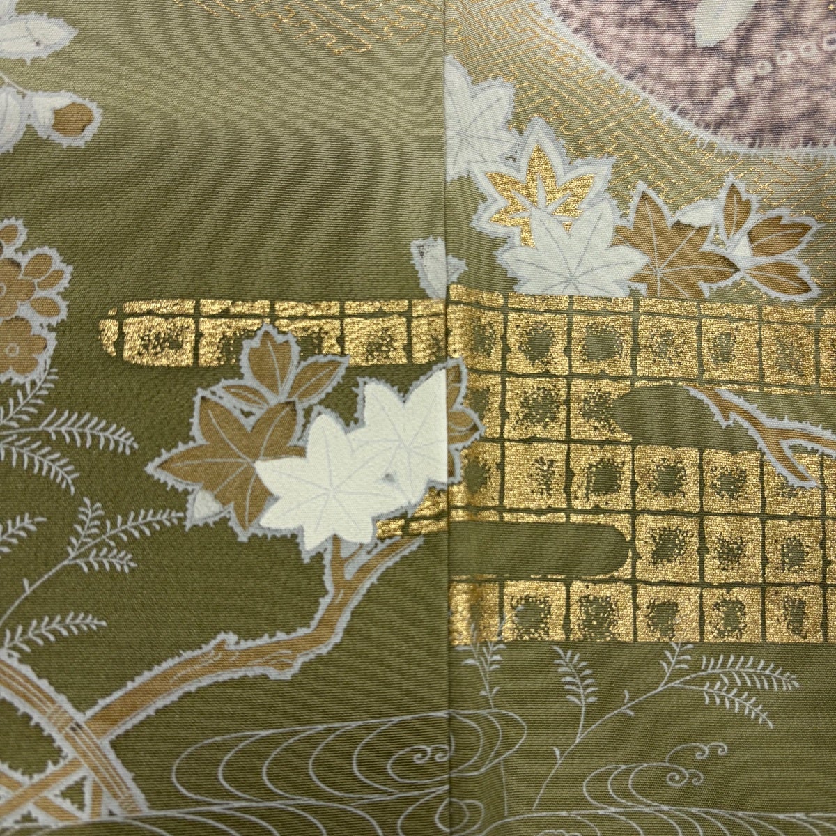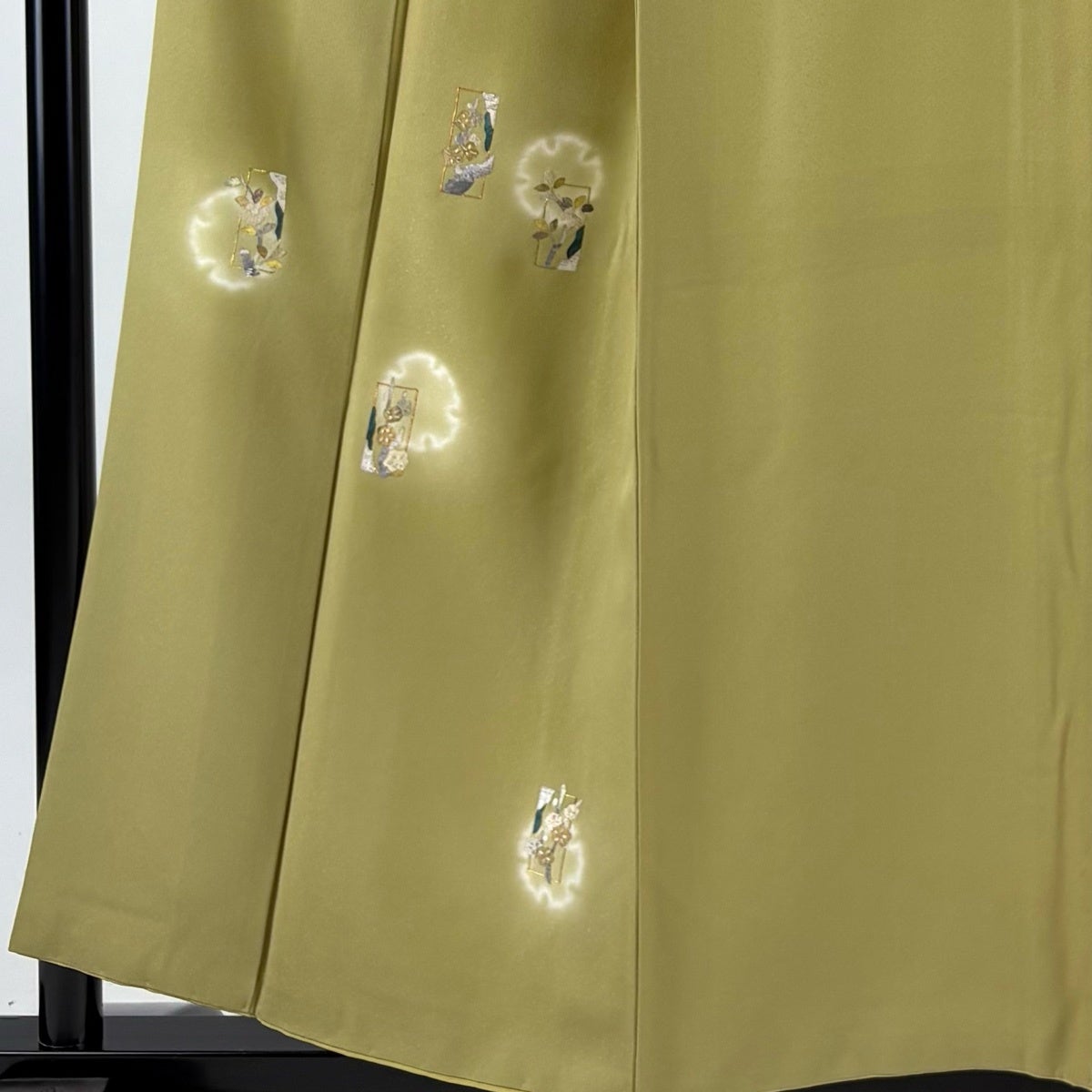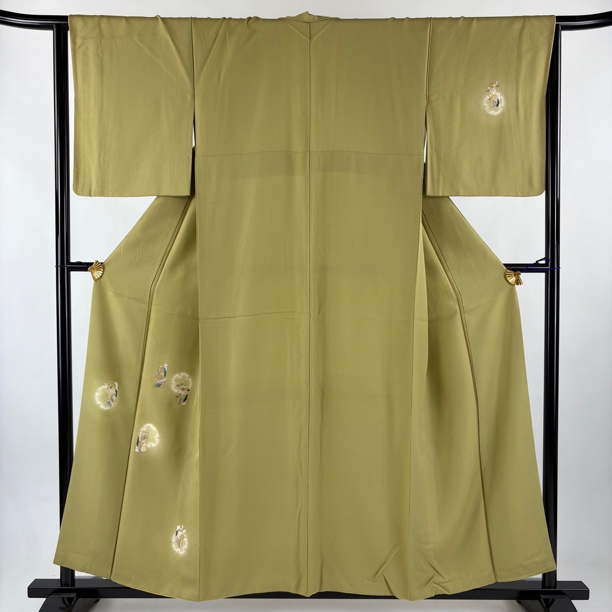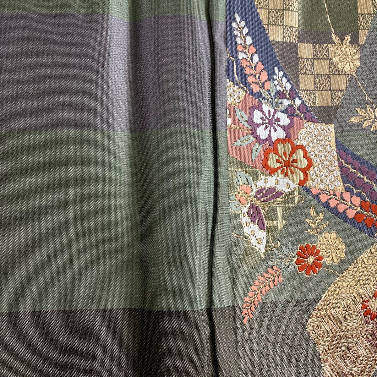 付下げ 身丈156cm 裄丈65cm M 袷 短冊 雪輪 箔 金銀彩 鶯色 正絹 秀品