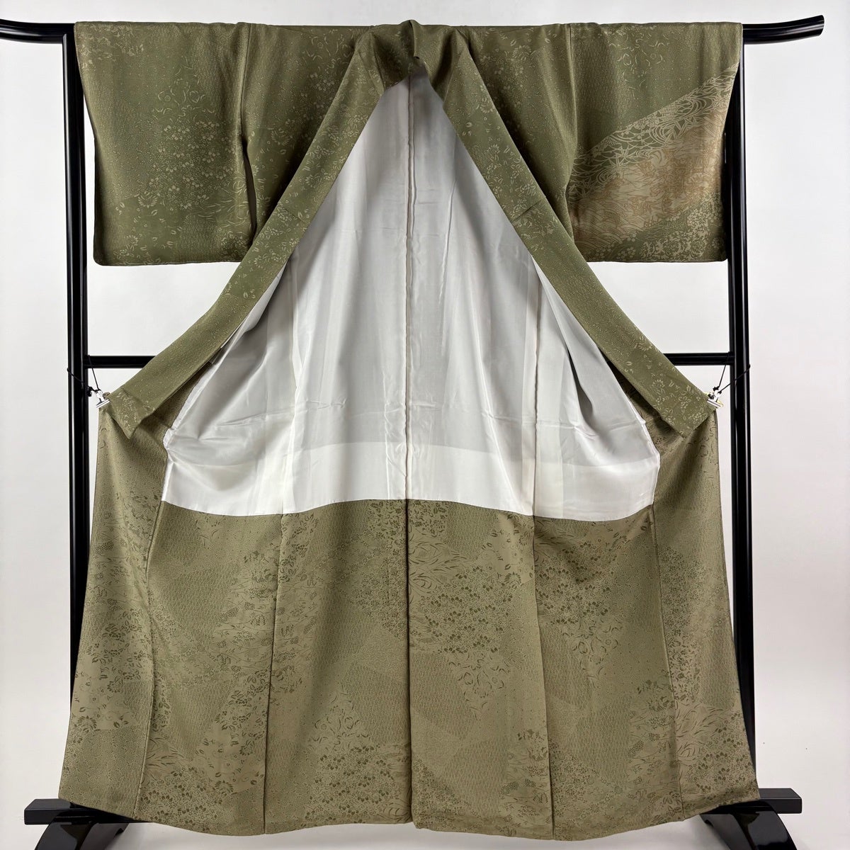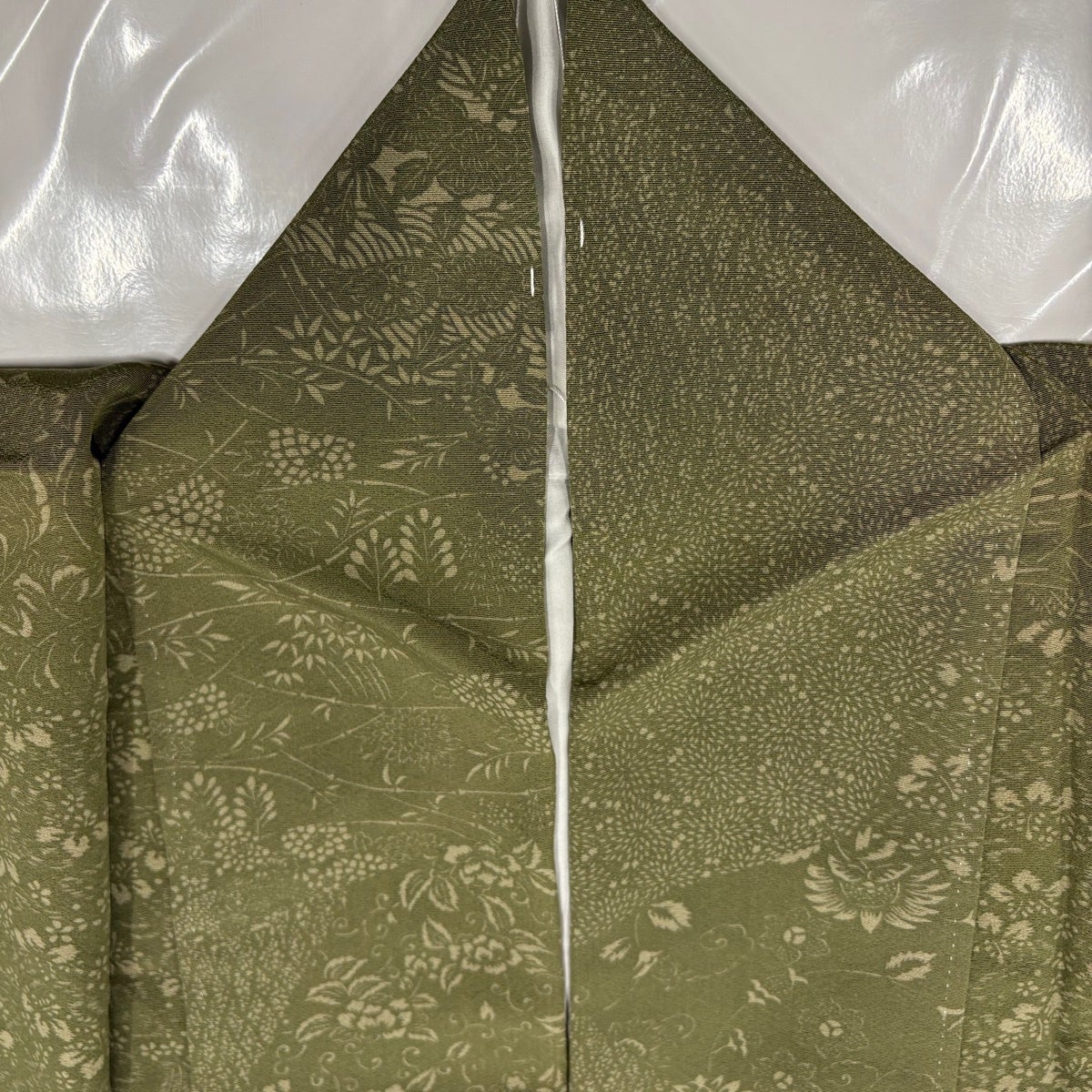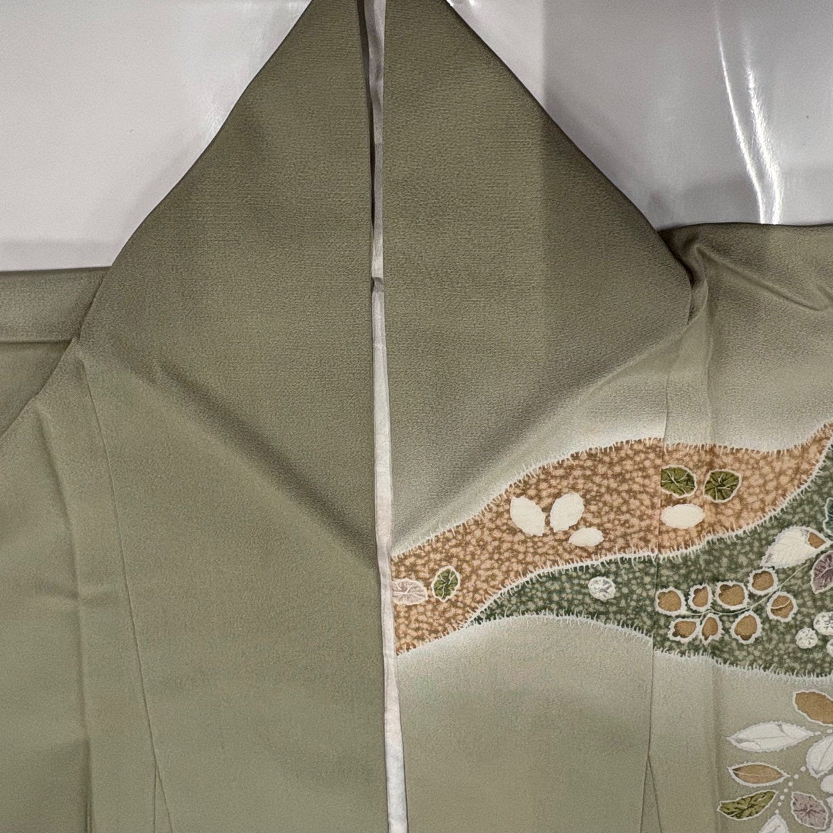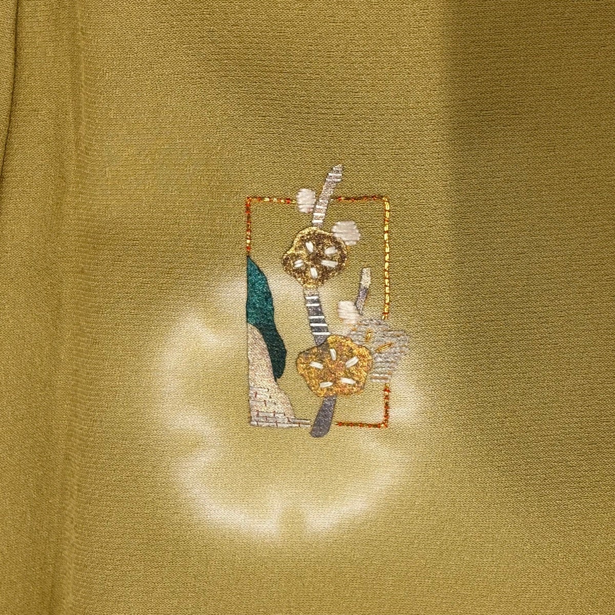 付下げ 身丈166.5cm 裄丈69.5cm L 袷 華文 七宝 刺繍 抹茶色 正絹 秀品