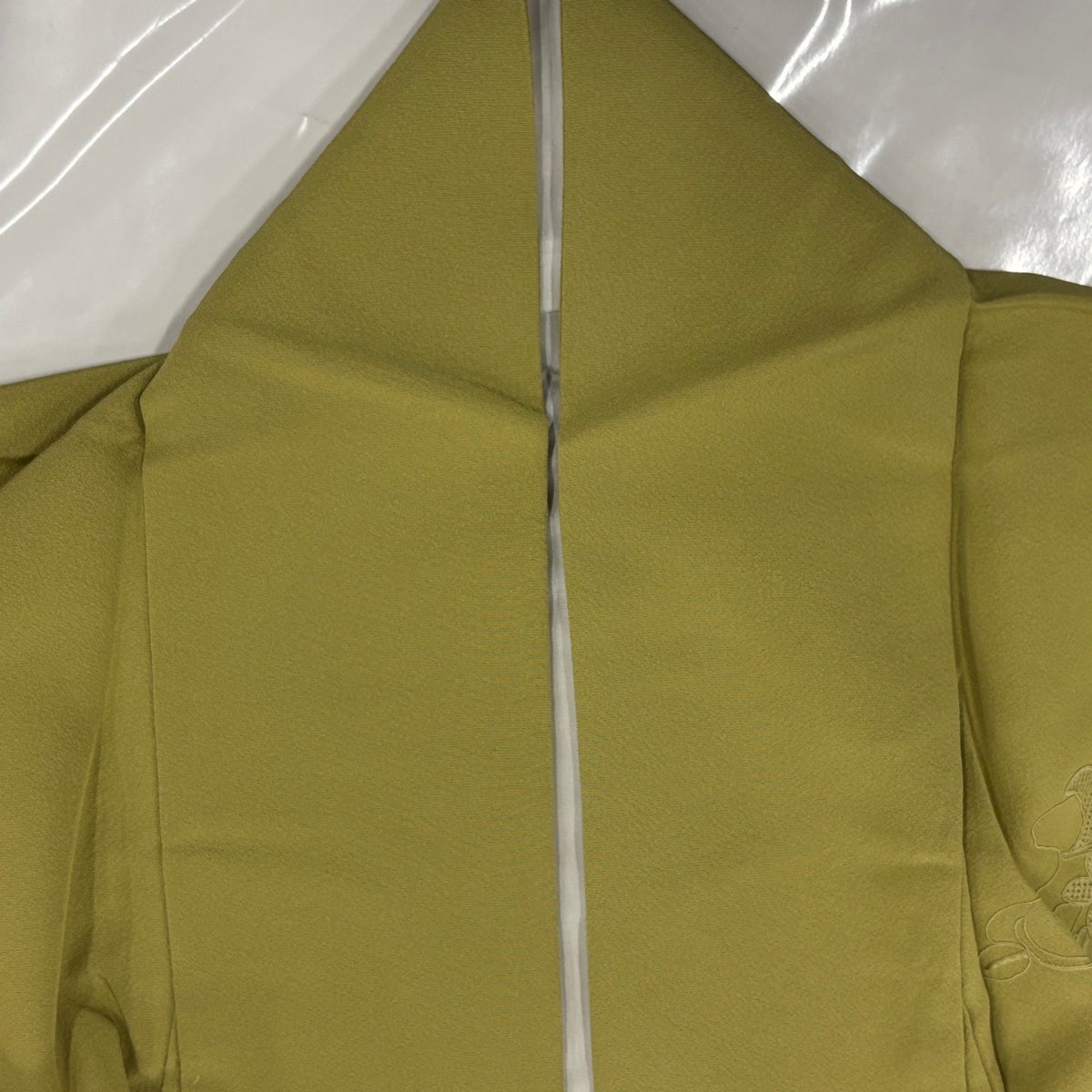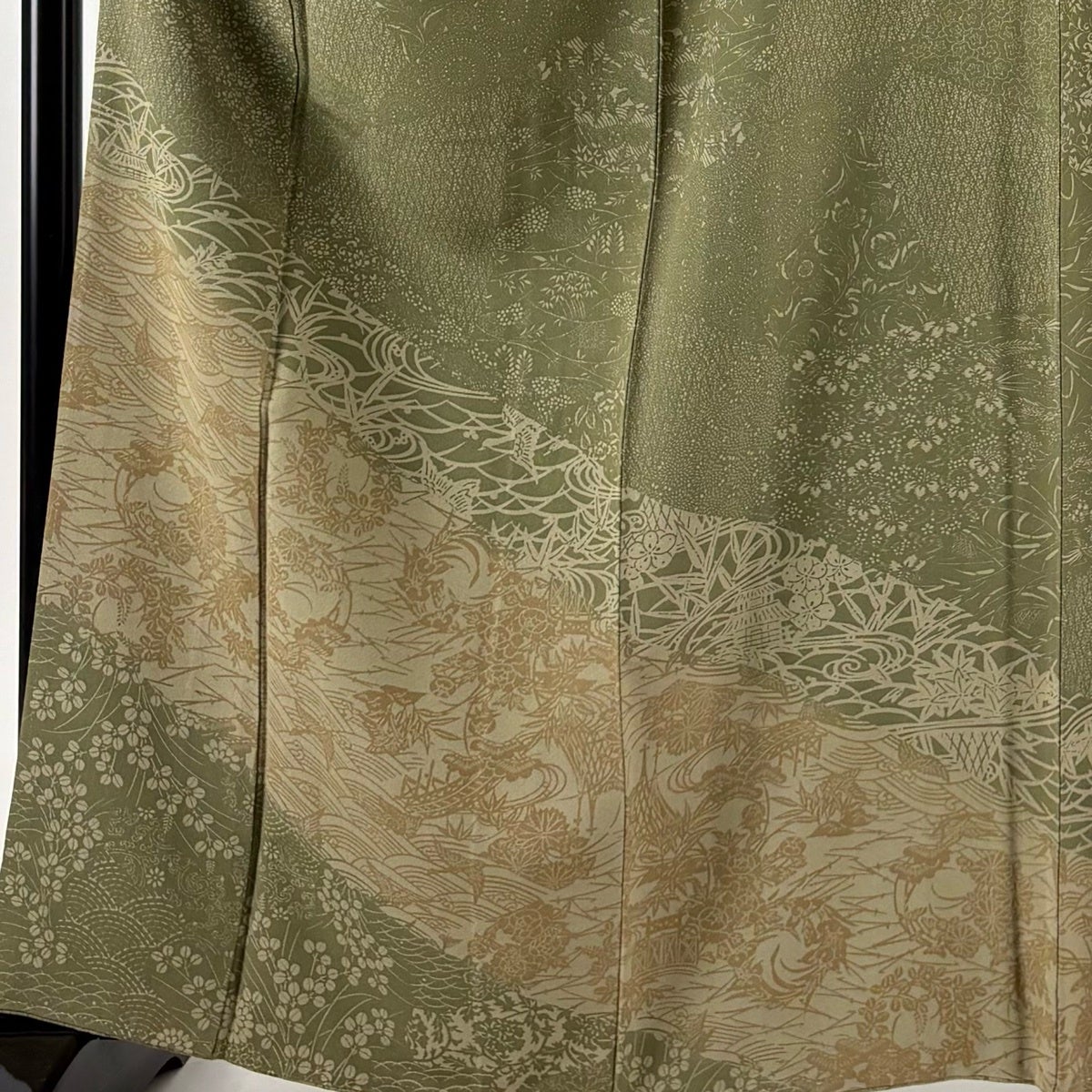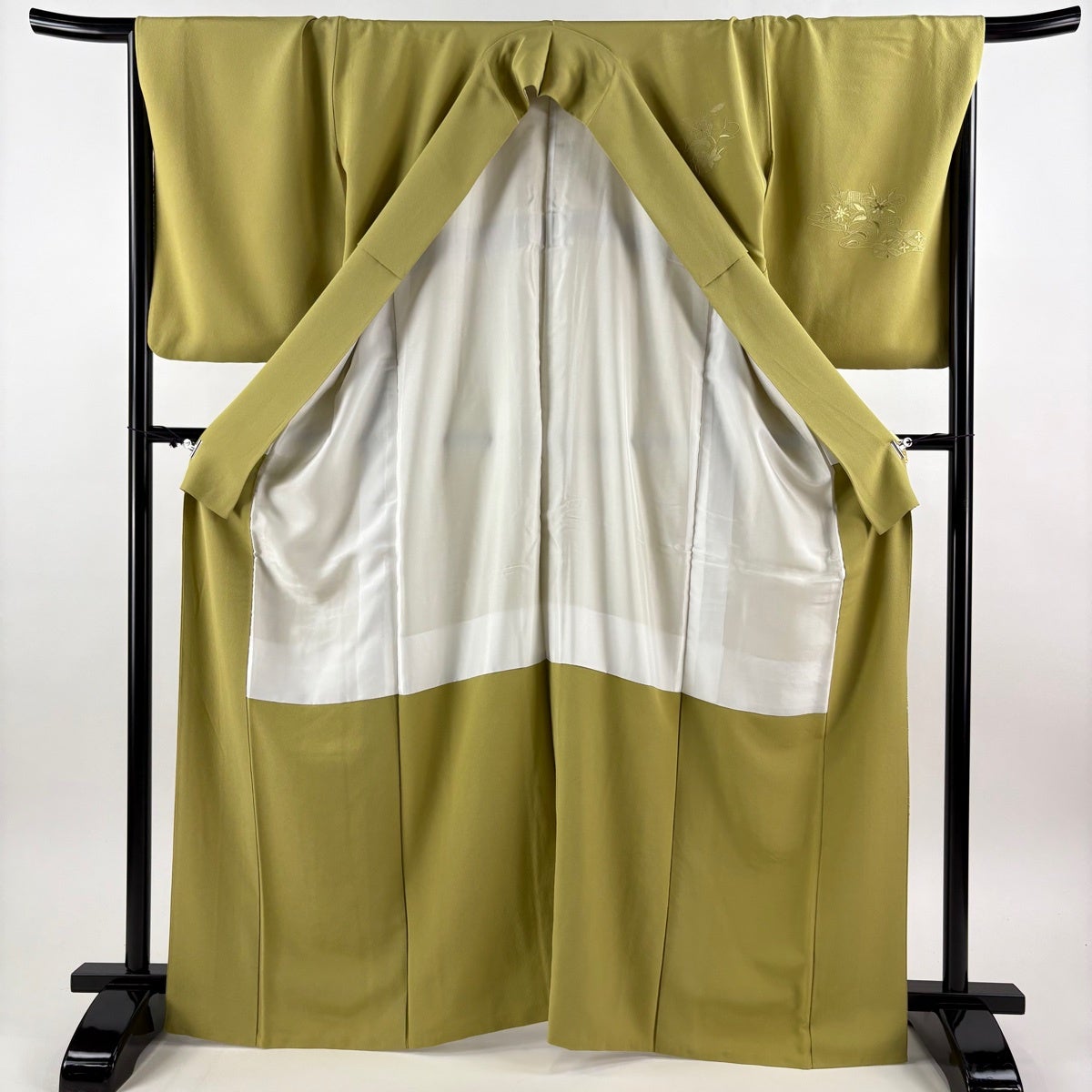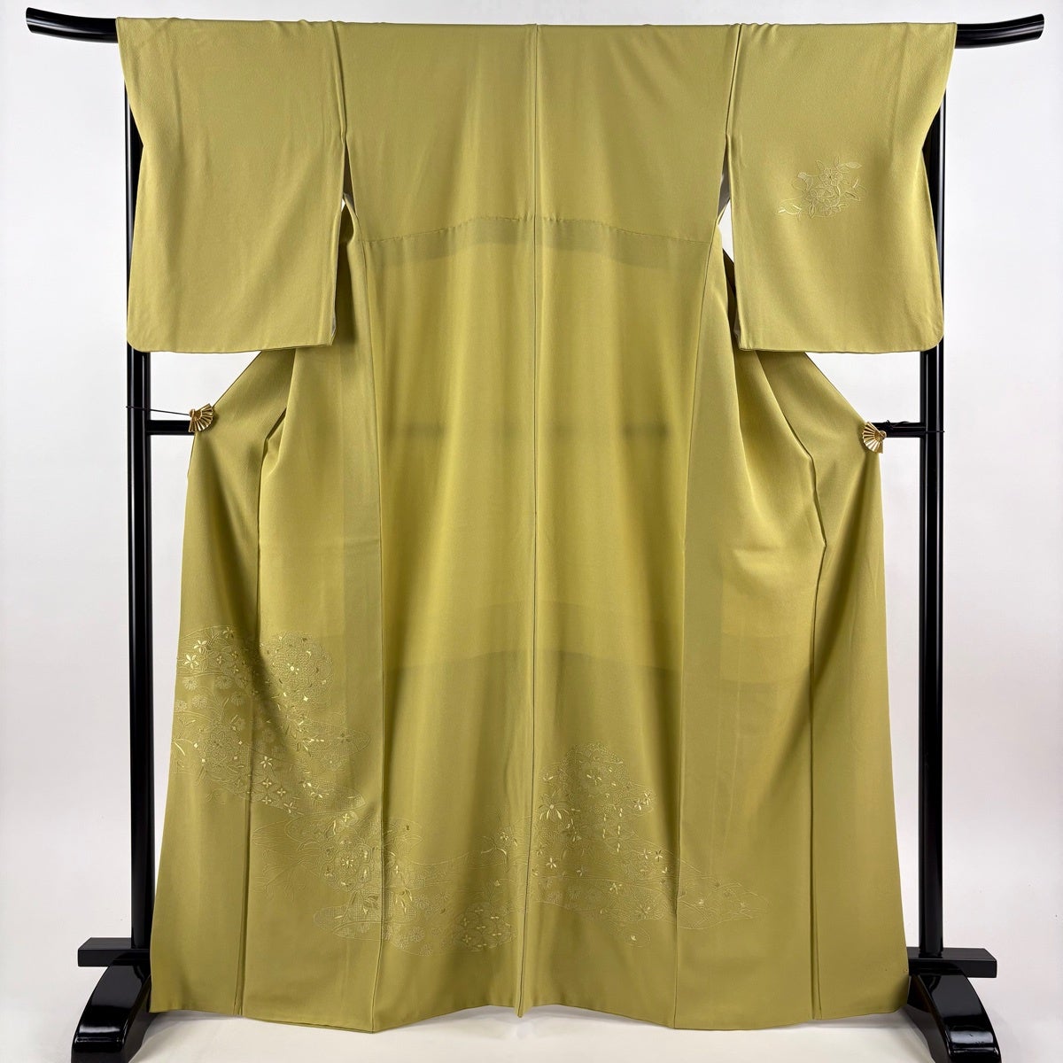 付下げ 身丈166.5cm 裄丈69.5cm L 袷 華文 七宝 刺繍 抹茶色 正絹 秀品
