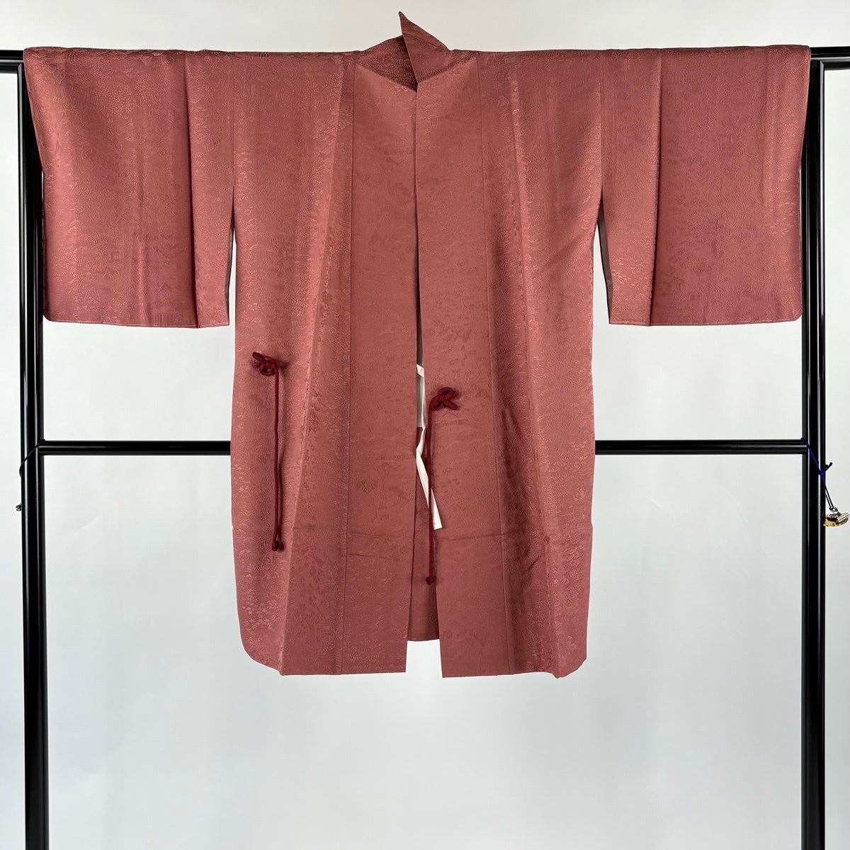 【美品】 道中着 身丈102cm 裄丈67cm M 和装コート 地紋 茜色 正絹 秀品