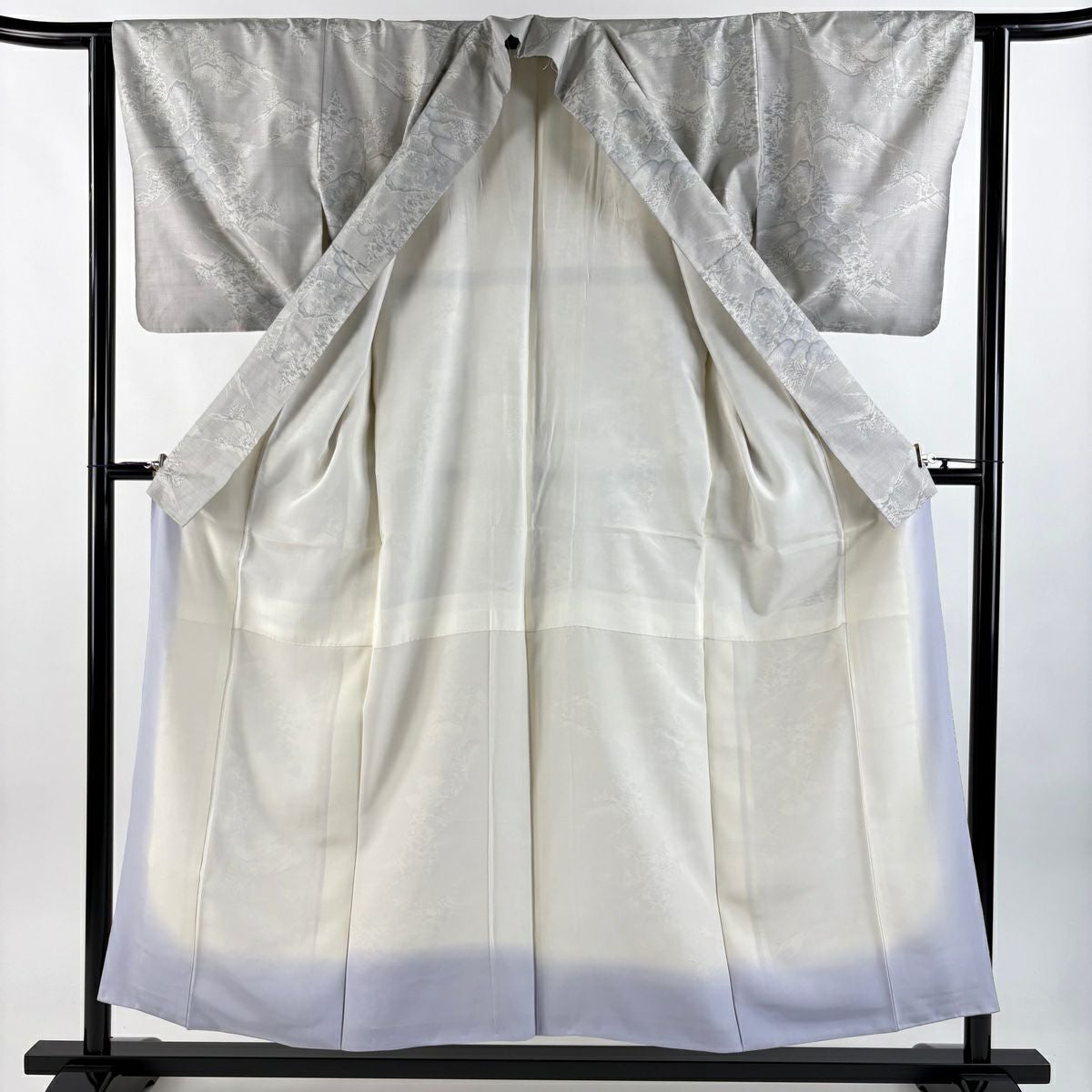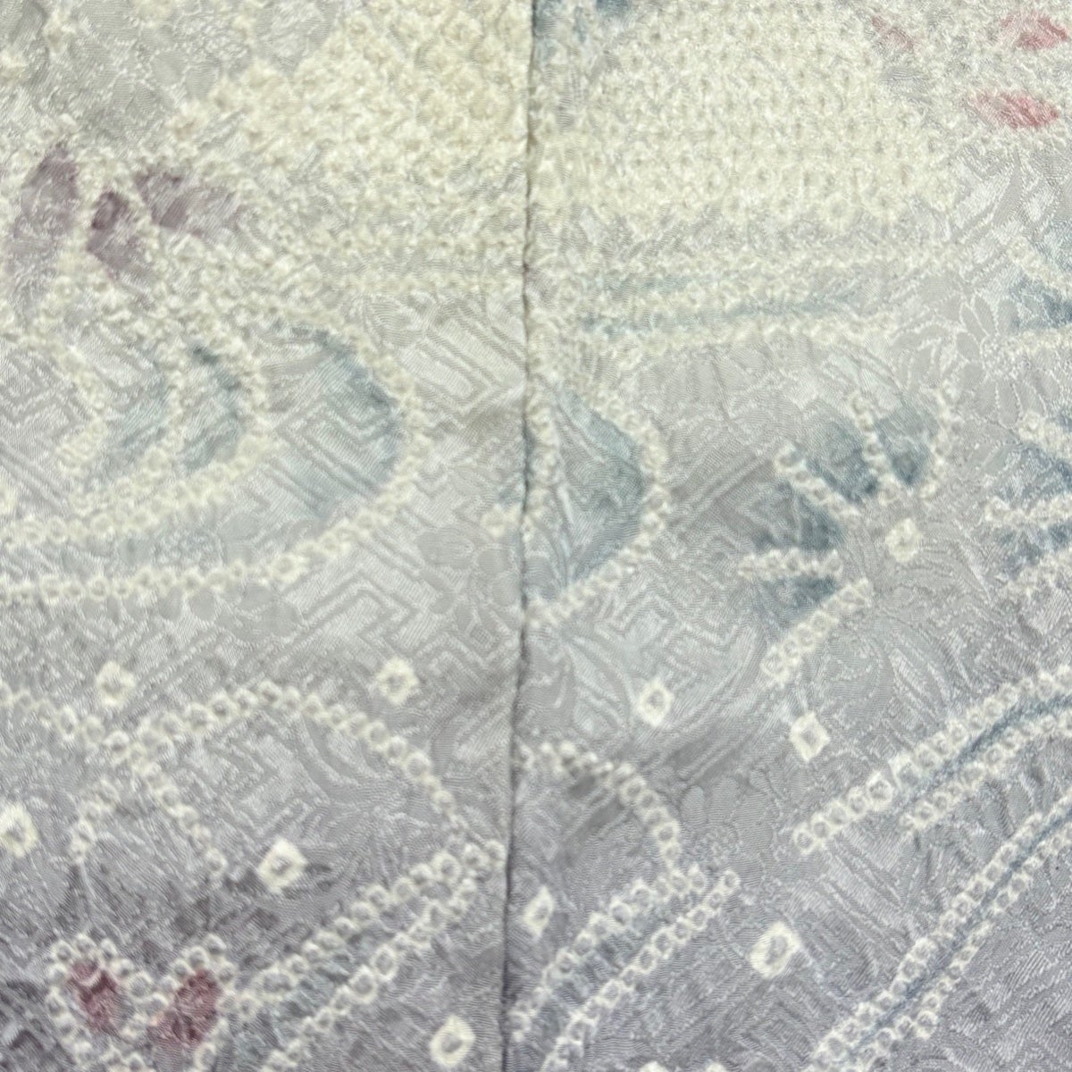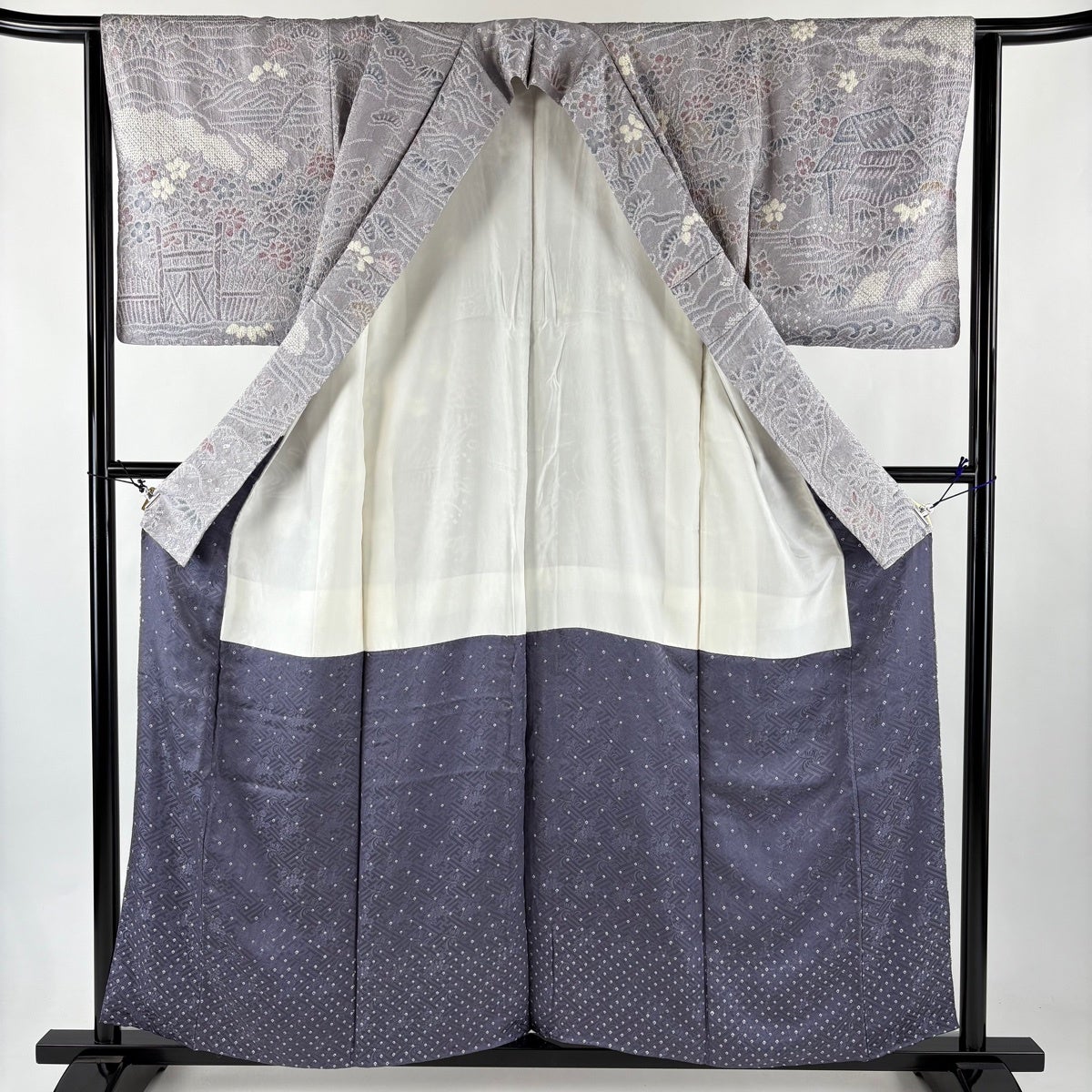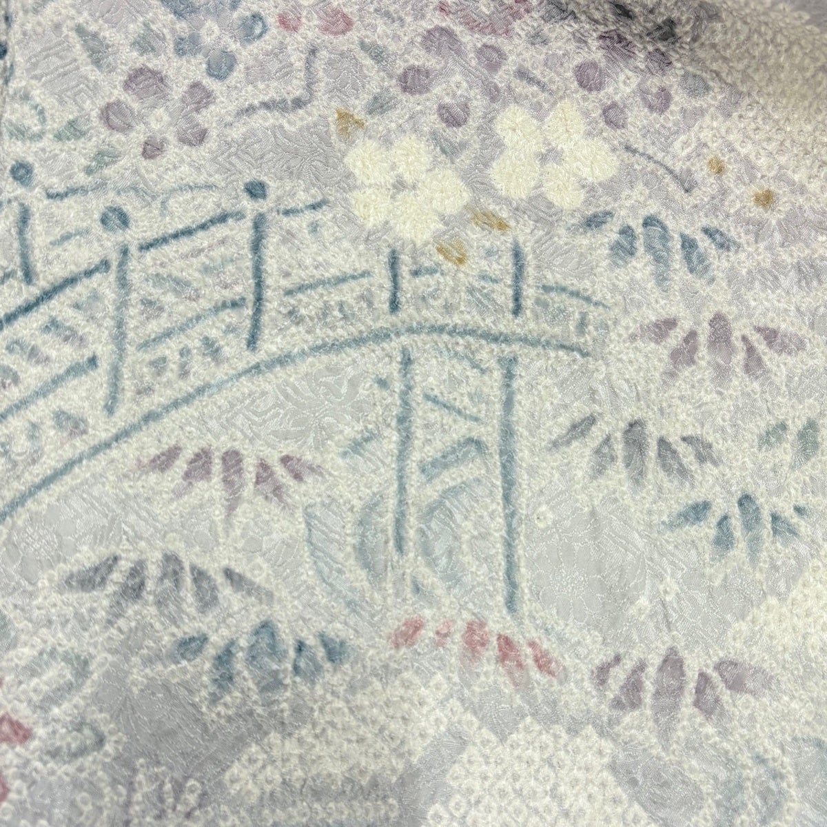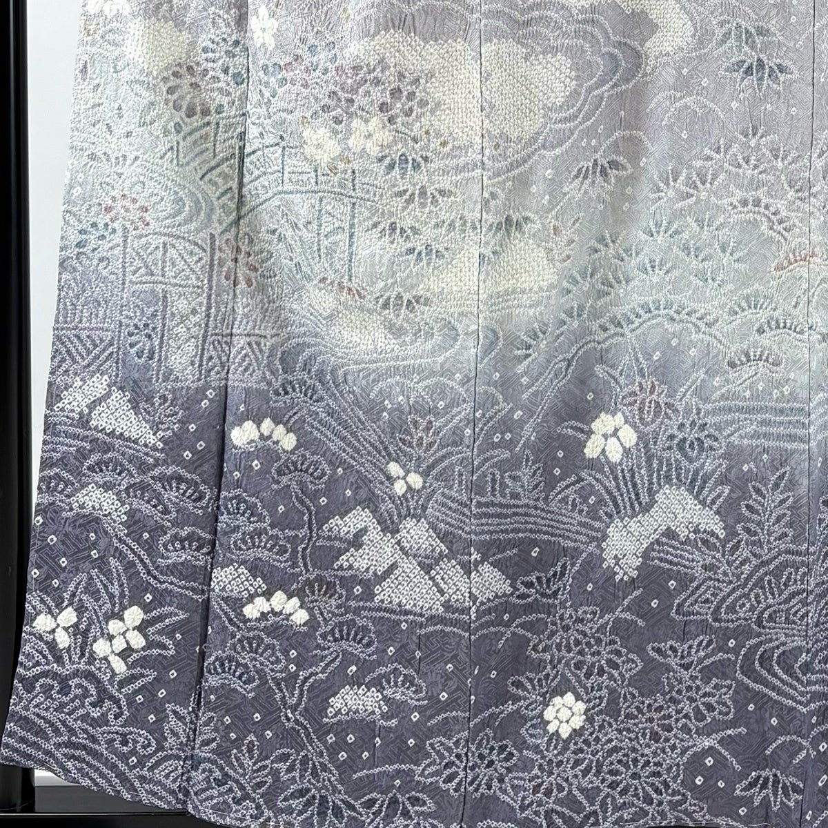 訪問着 身丈158cm 裄丈63cm S 袷 草花 橋 絞り ぼかし 灰紫 正絹 秀品