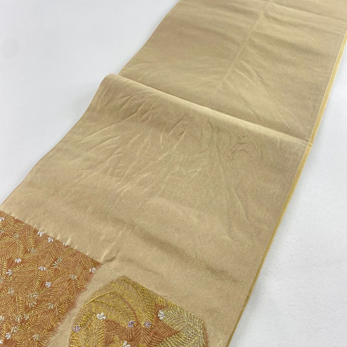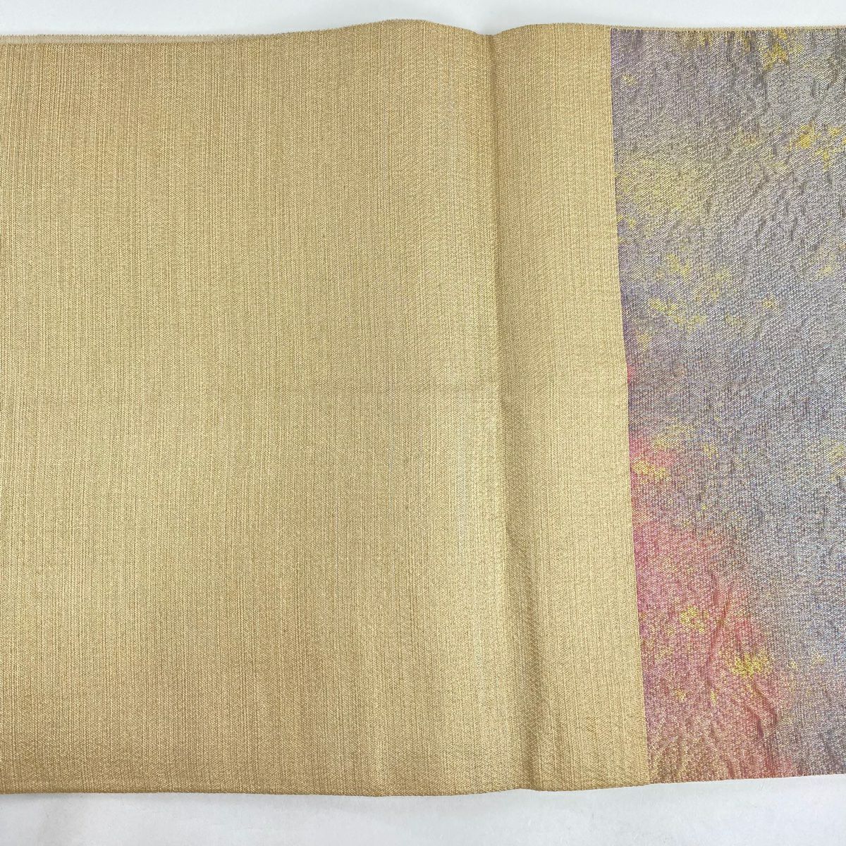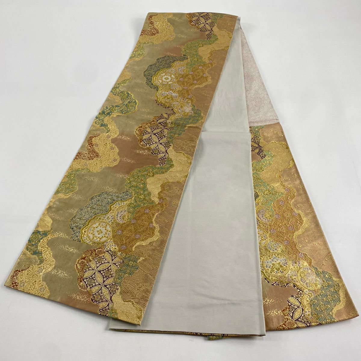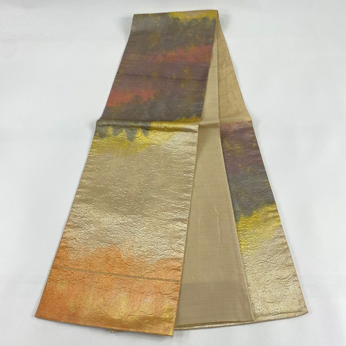 【美品】 袋帯 秀品 紬地 ますいわ屋 幾何学模様 ぼかし ベージュ 全通 正絹