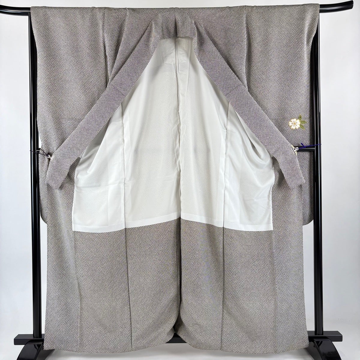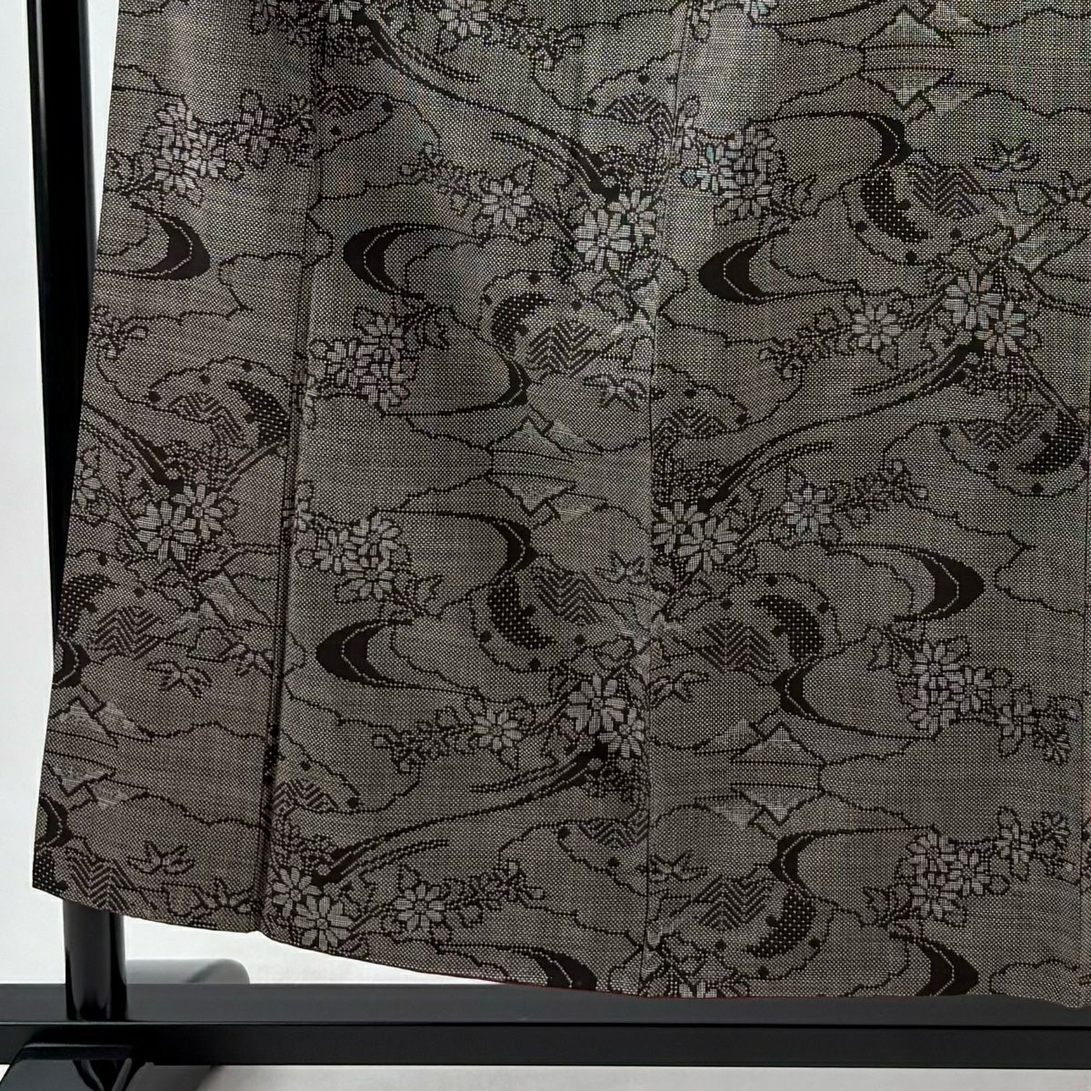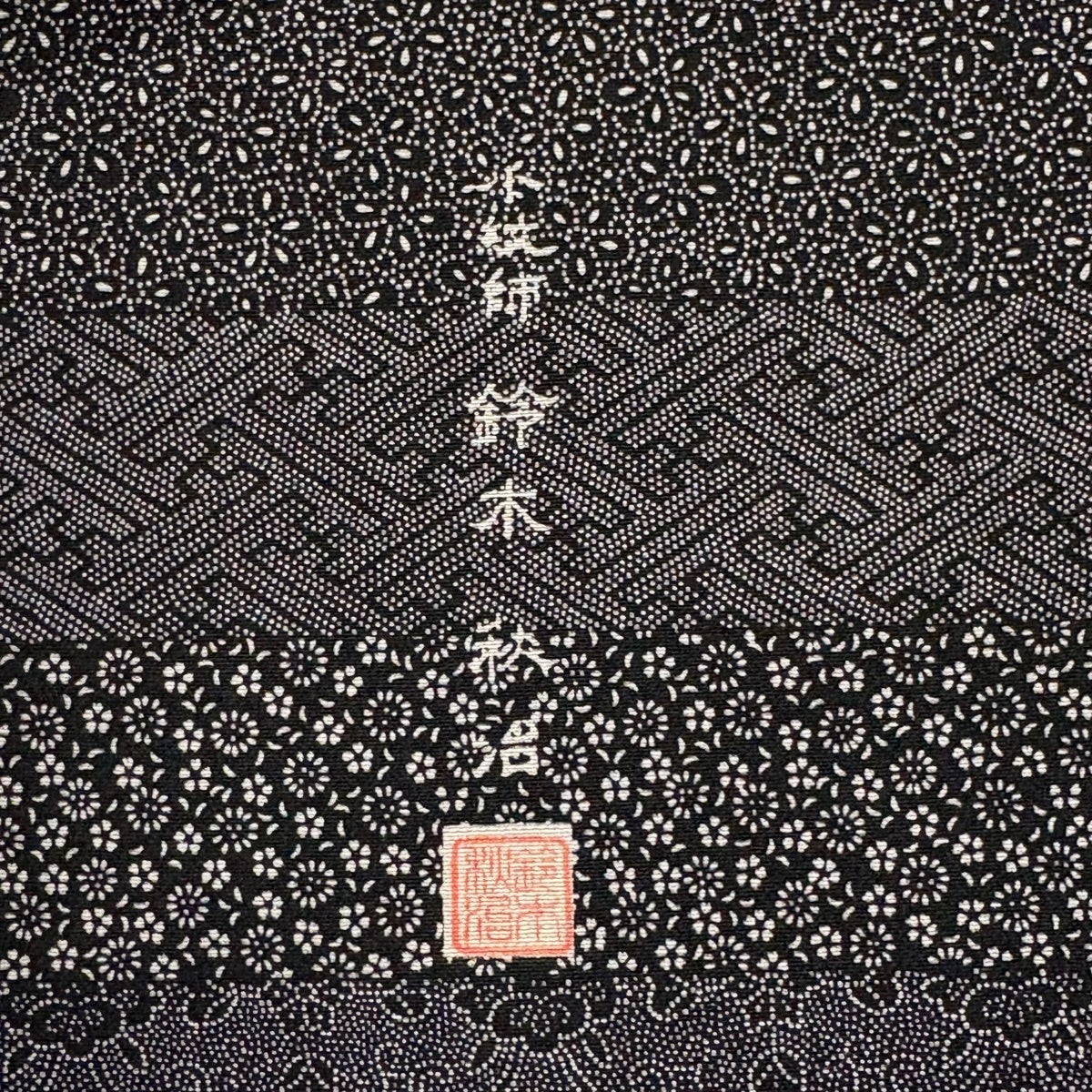江戸小紋 身丈152.5cm 裄丈65cm M 袷 落款あり 草花 鮫 黒灰 正絹 秀品