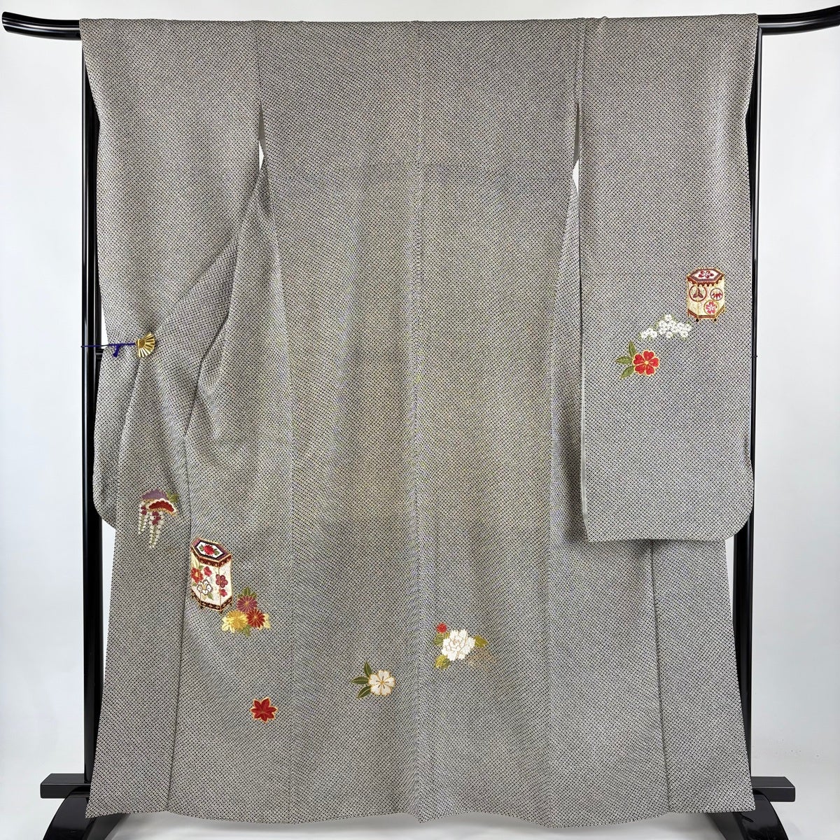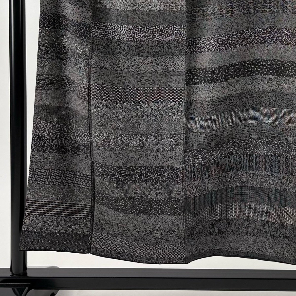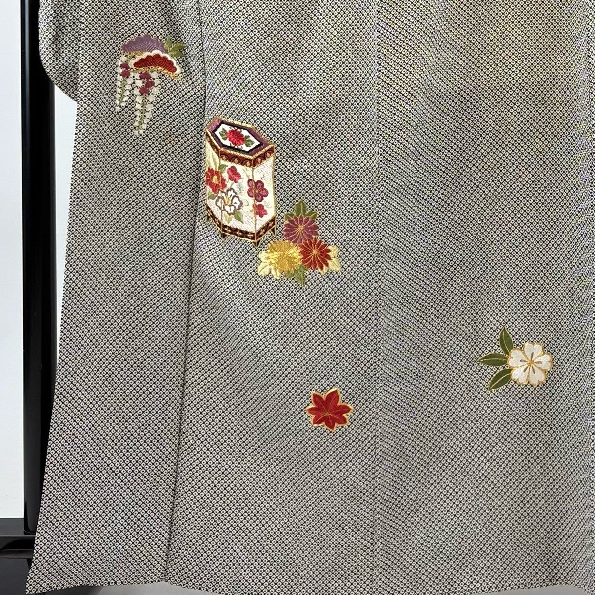江戸小紋 身丈152.5cm 裄丈65cm M 袷 落款あり 草花 鮫 黒灰 正絹 秀品