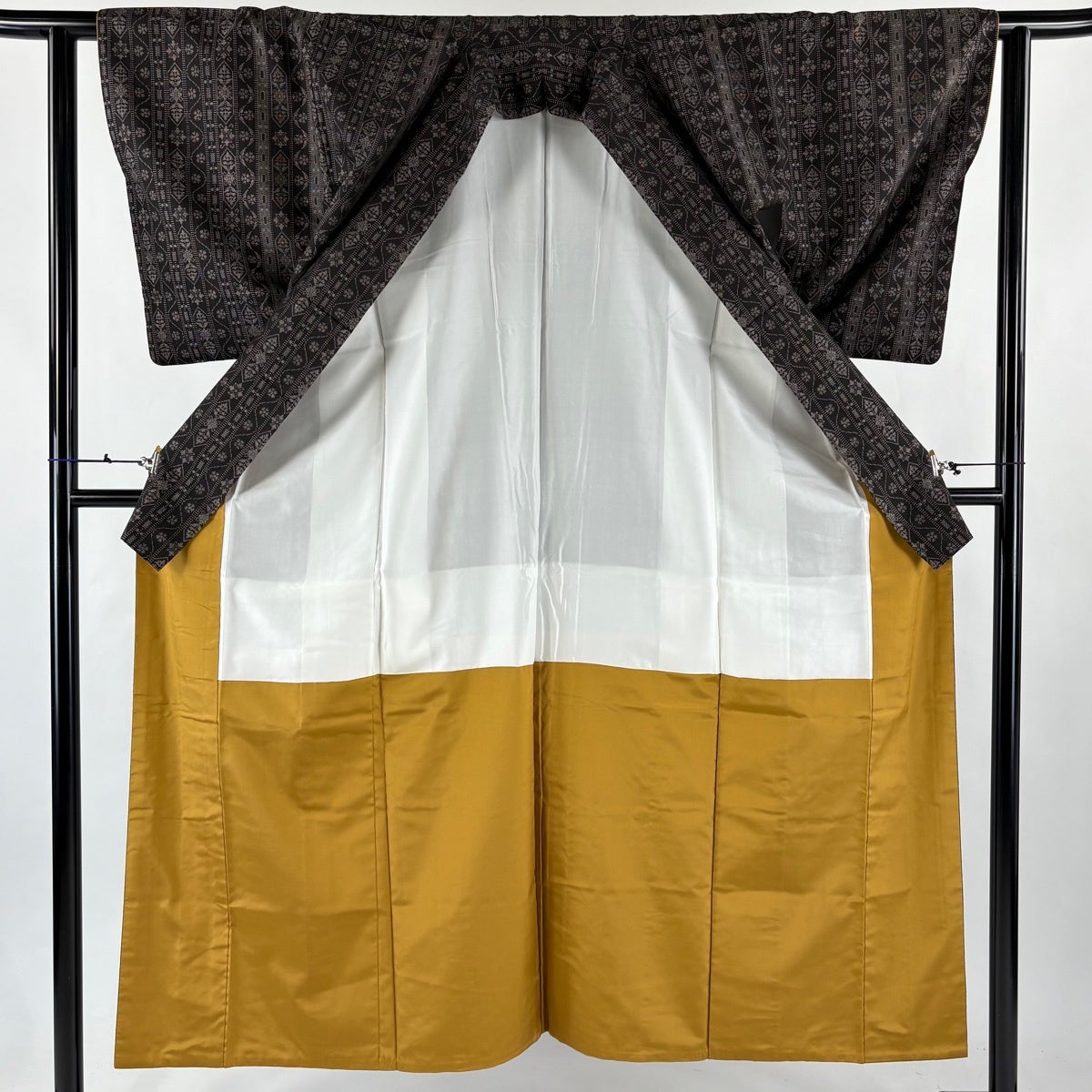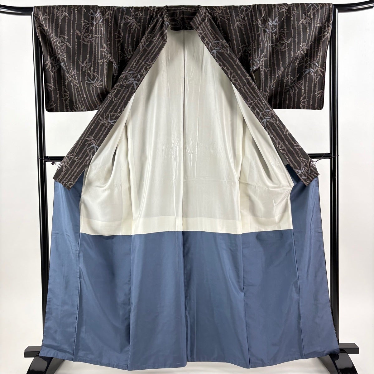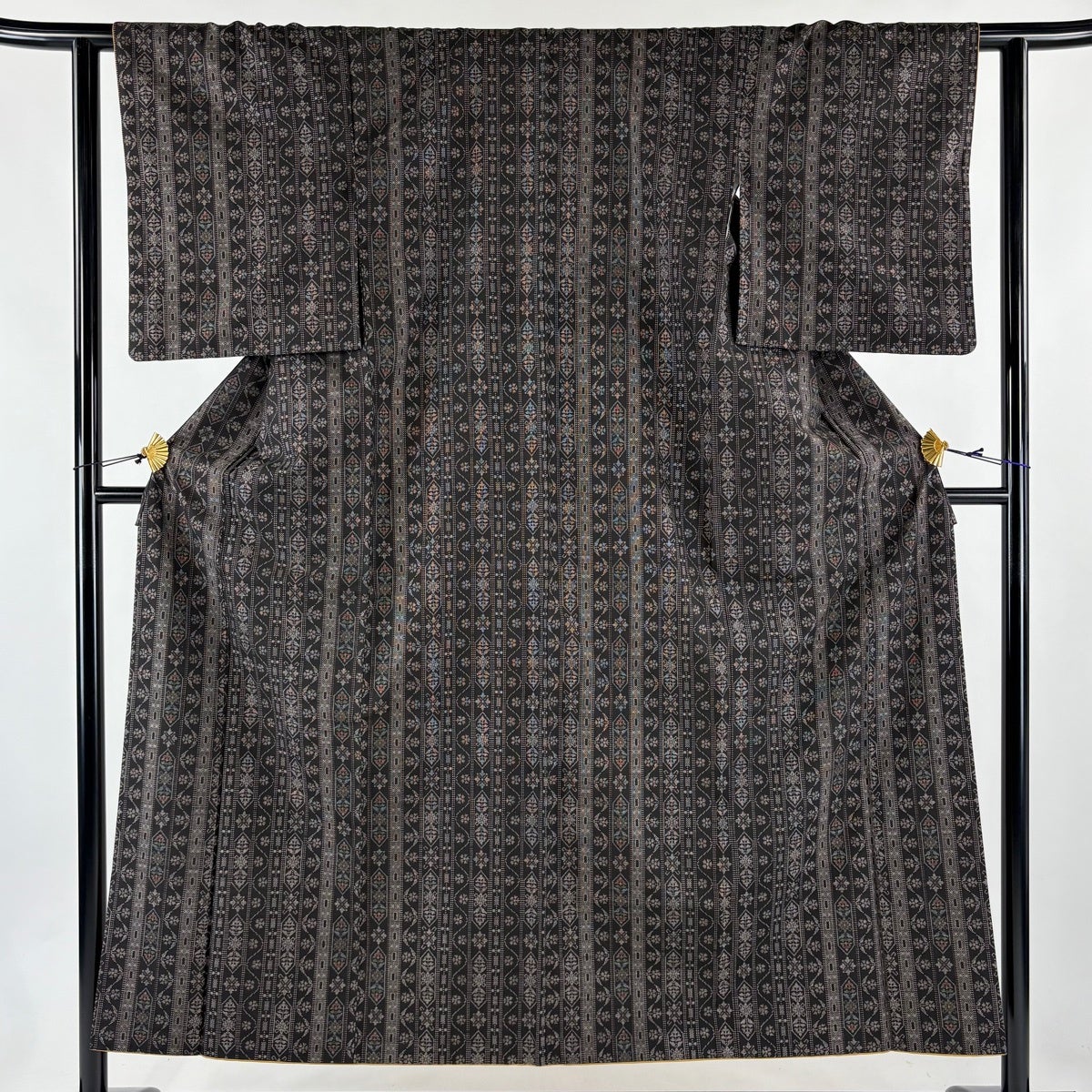 大島紬 身丈164cm 裄丈65cm M 袷 純泥染 証紙あり 竹 焦茶色 正絹 秀品