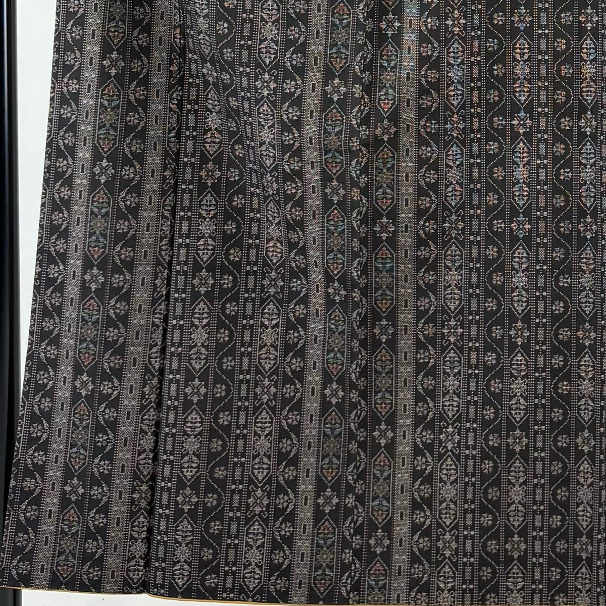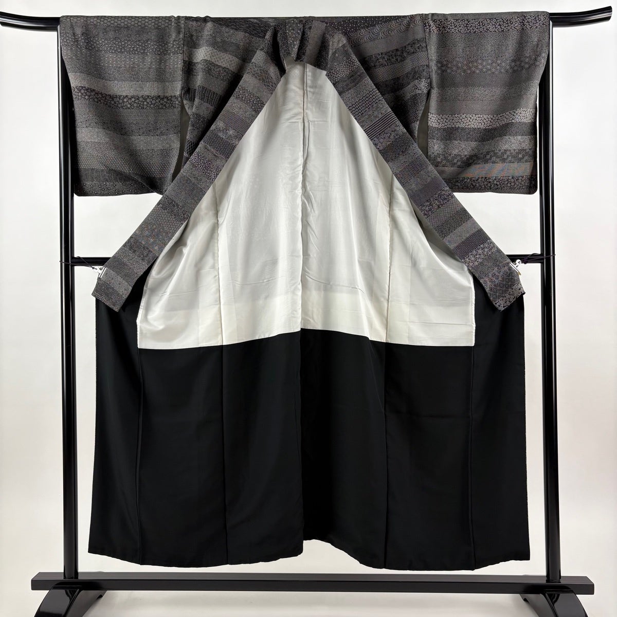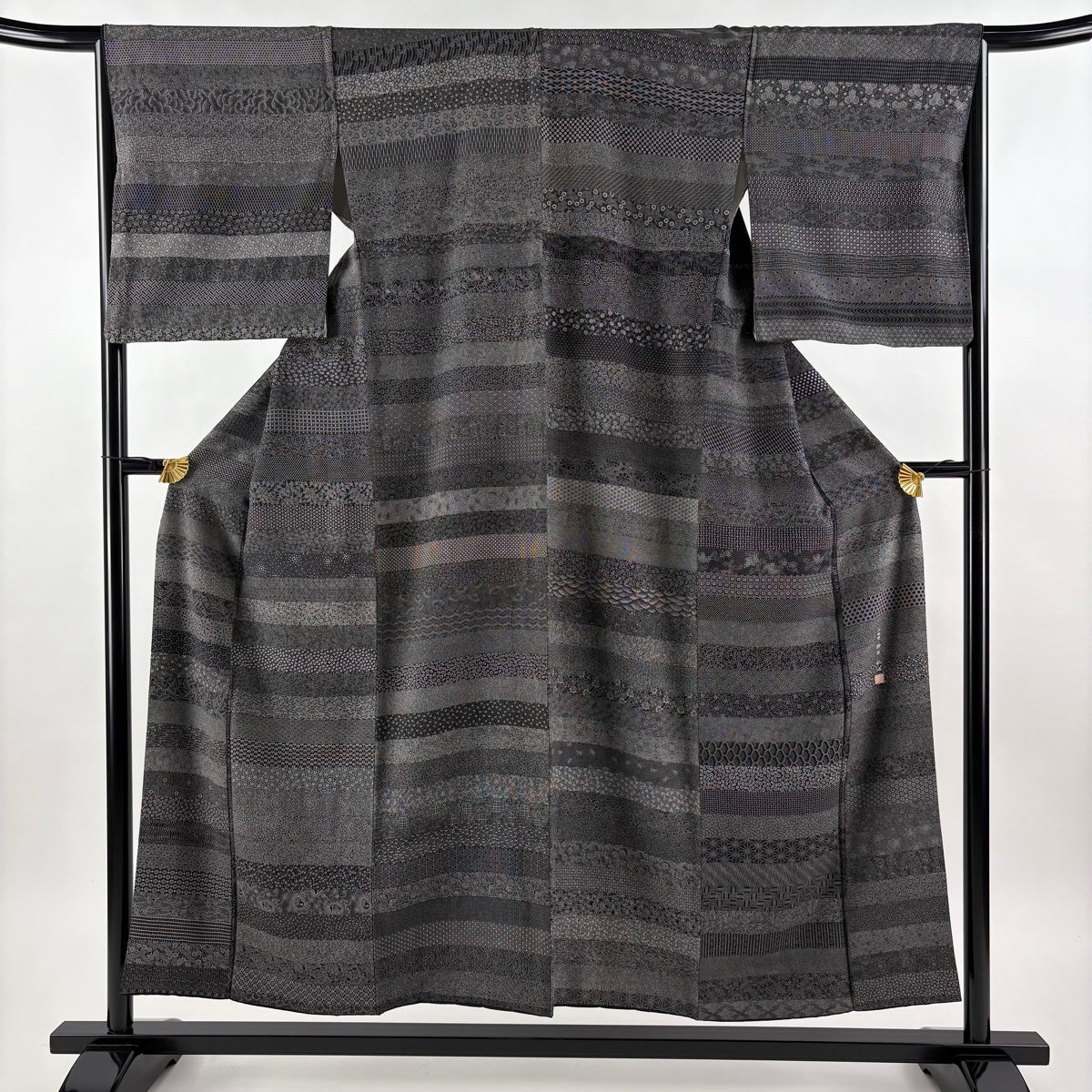 【美品】 小紋 身丈158cm 裄丈64cm M 袷 落款あり 縦縞 黒灰 正絹 秀品