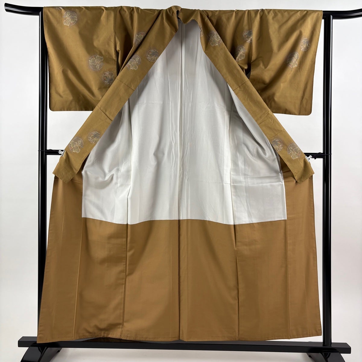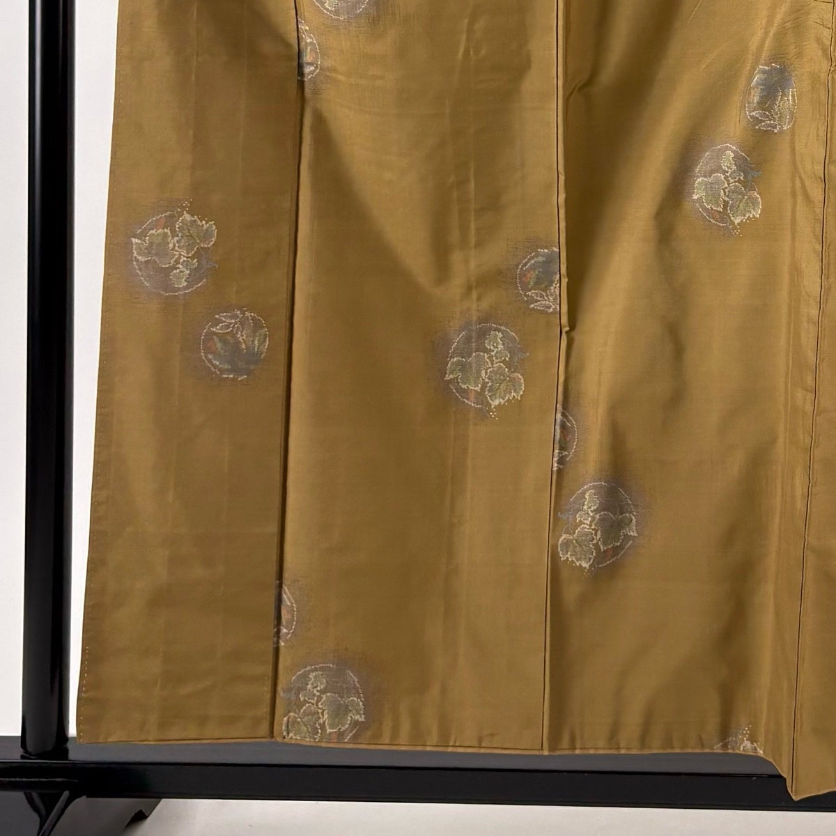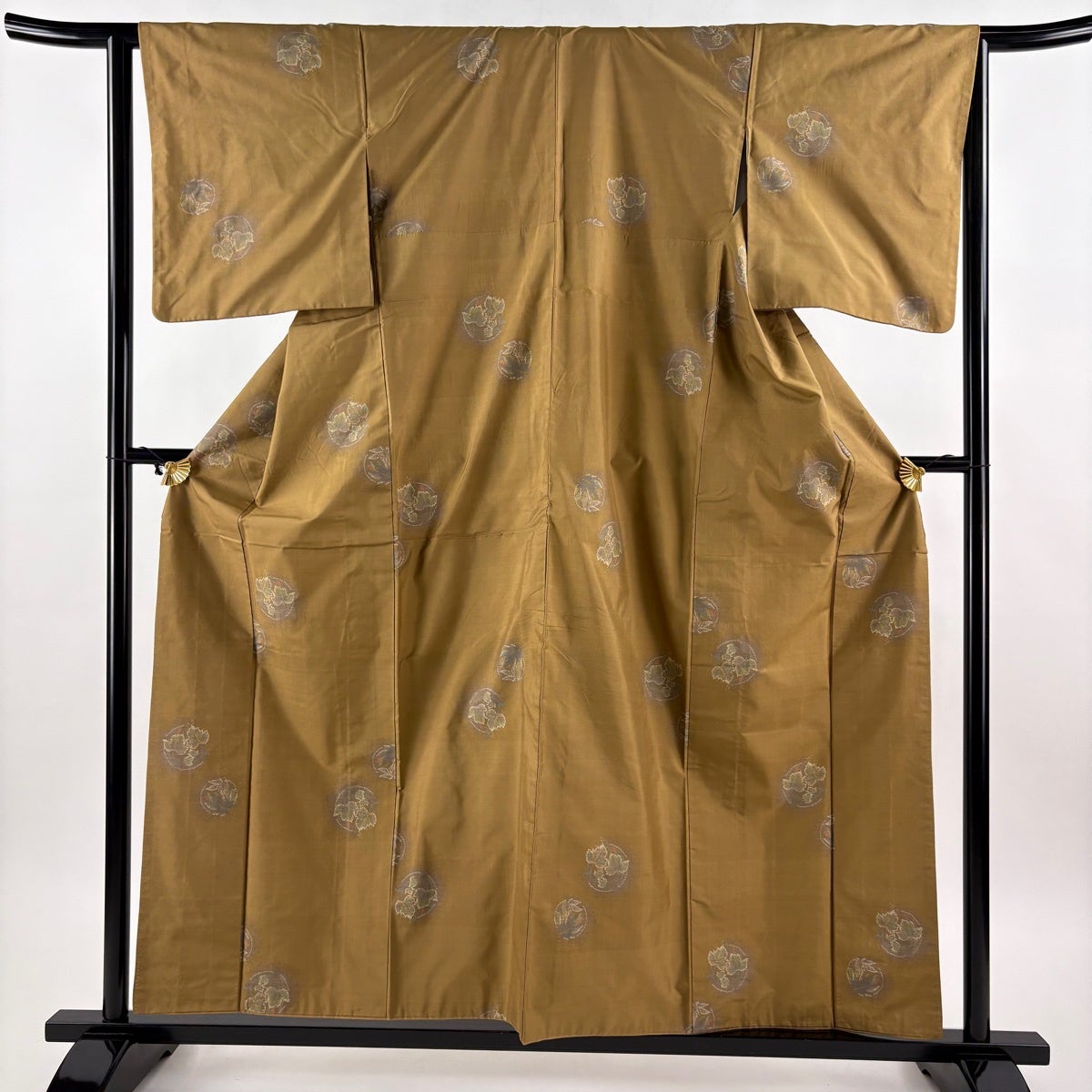【美品】 紬 身丈157.5cm 裄丈63cm S 袷 花丸文 蔦 黄土色 正絹 秀品