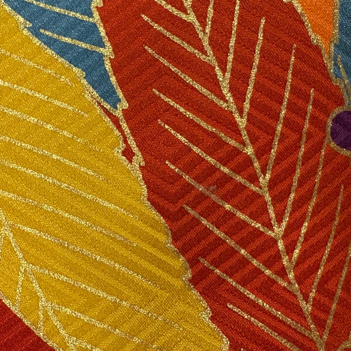 振袖 身丈166cm 裄丈67cm M 袷 菊 葉柄 金糸 金彩 オレンジ 正絹 秀品