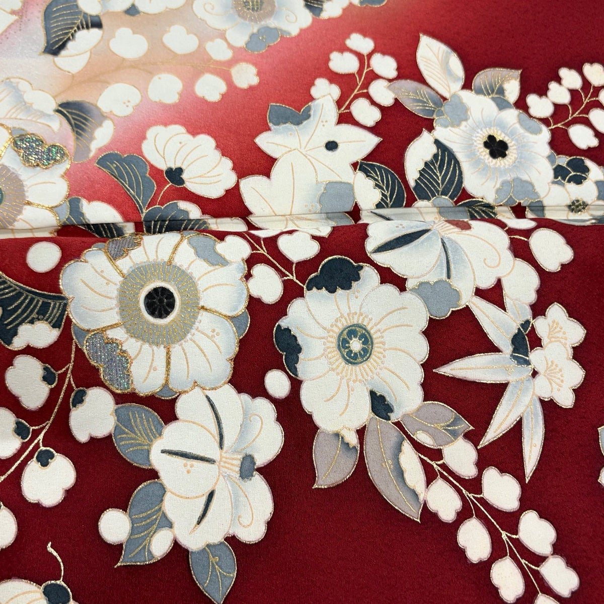 訪問着 身丈158cm 裄丈65.5cm M 袷 辻が花柄 ラメ 金糸 赤 正絹 秀品