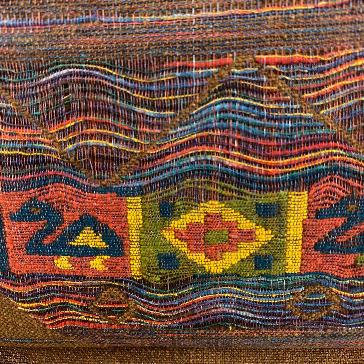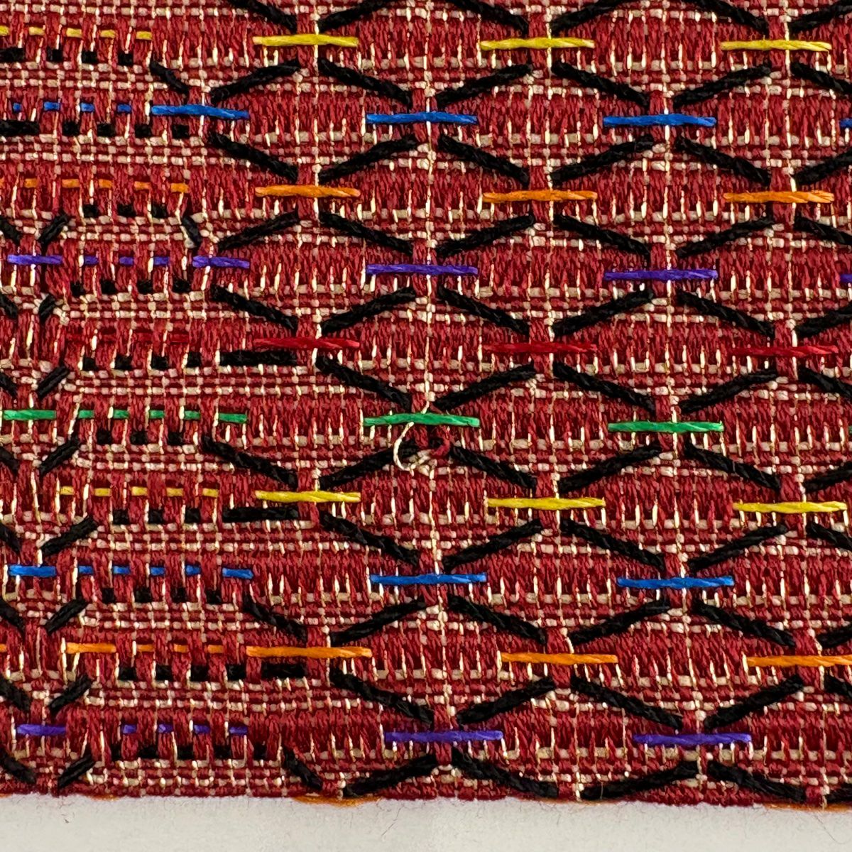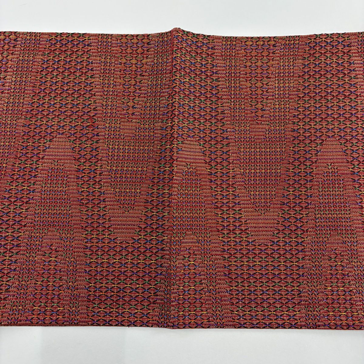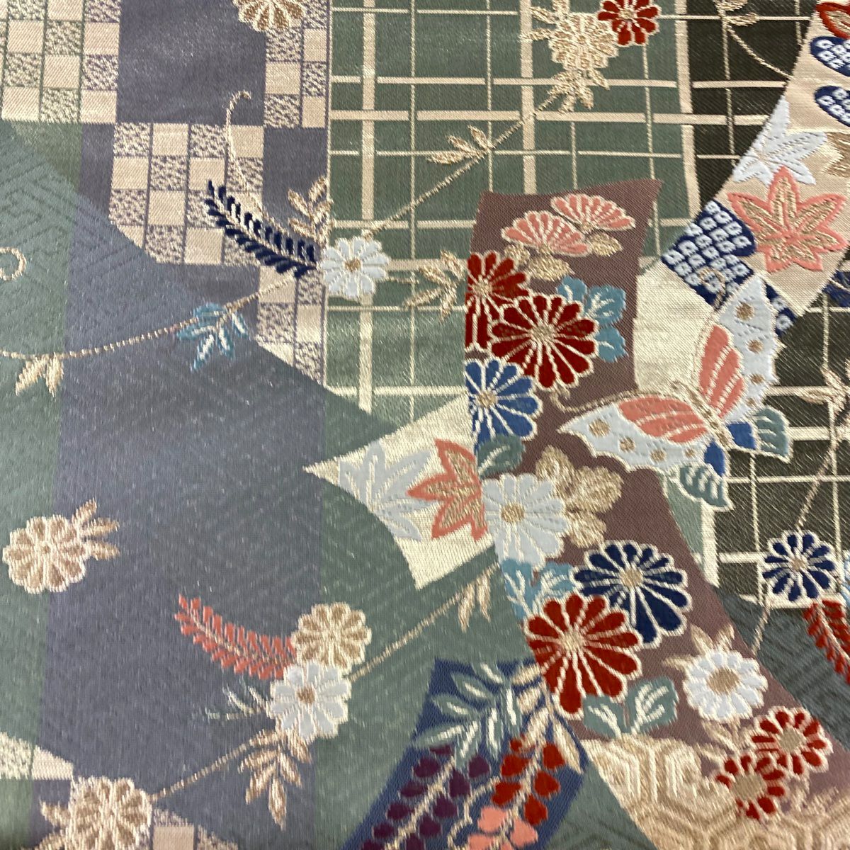 【美品】 袋帯 秀品 落款あり 蒼舟幸子 幾何学 金通し 金銀彩 赤茶 お太鼓柄 正絹