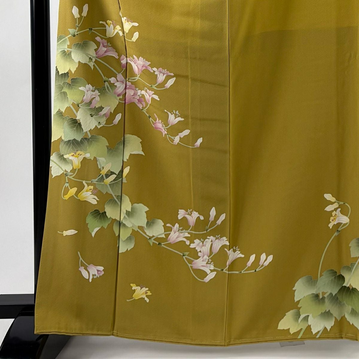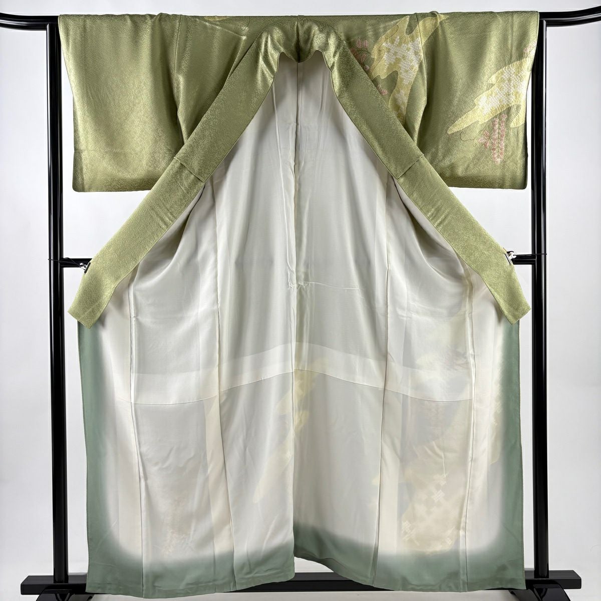 訪問着 身丈165cm 裄丈68.5cm L 袷 草花 金彩 ぼかし 抹茶色 正絹 秀品