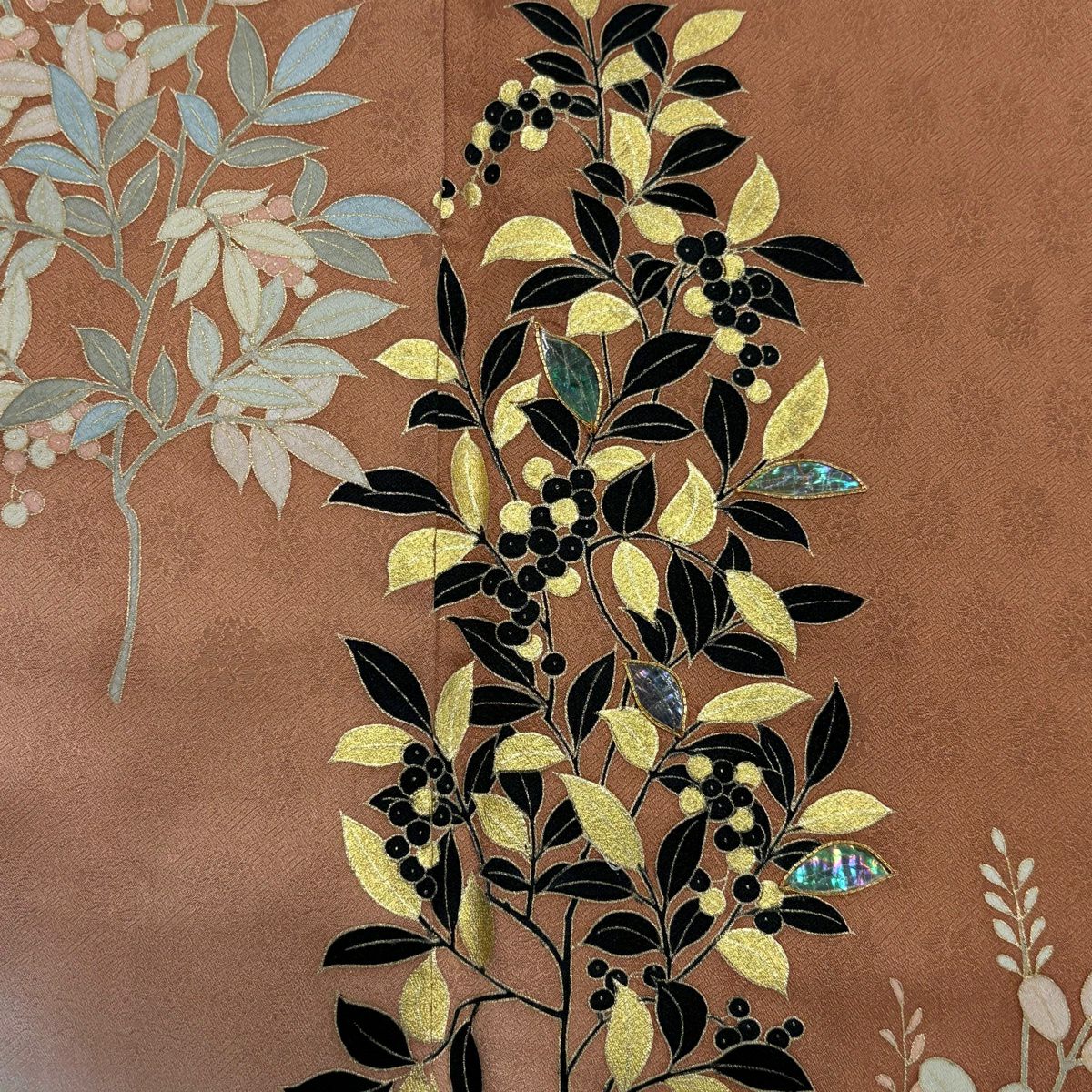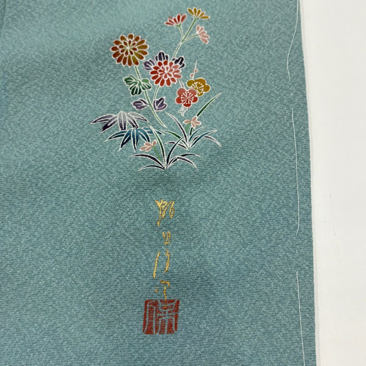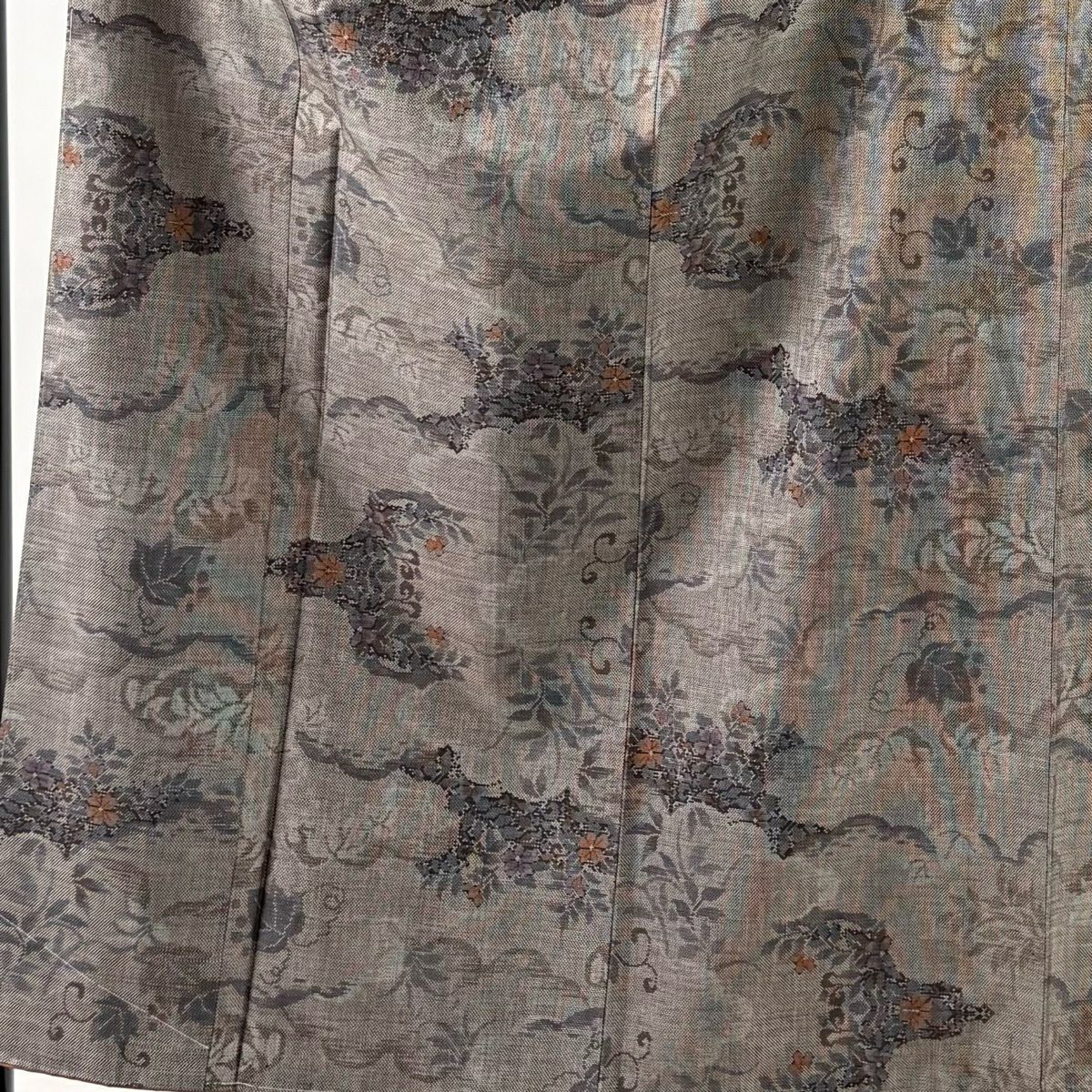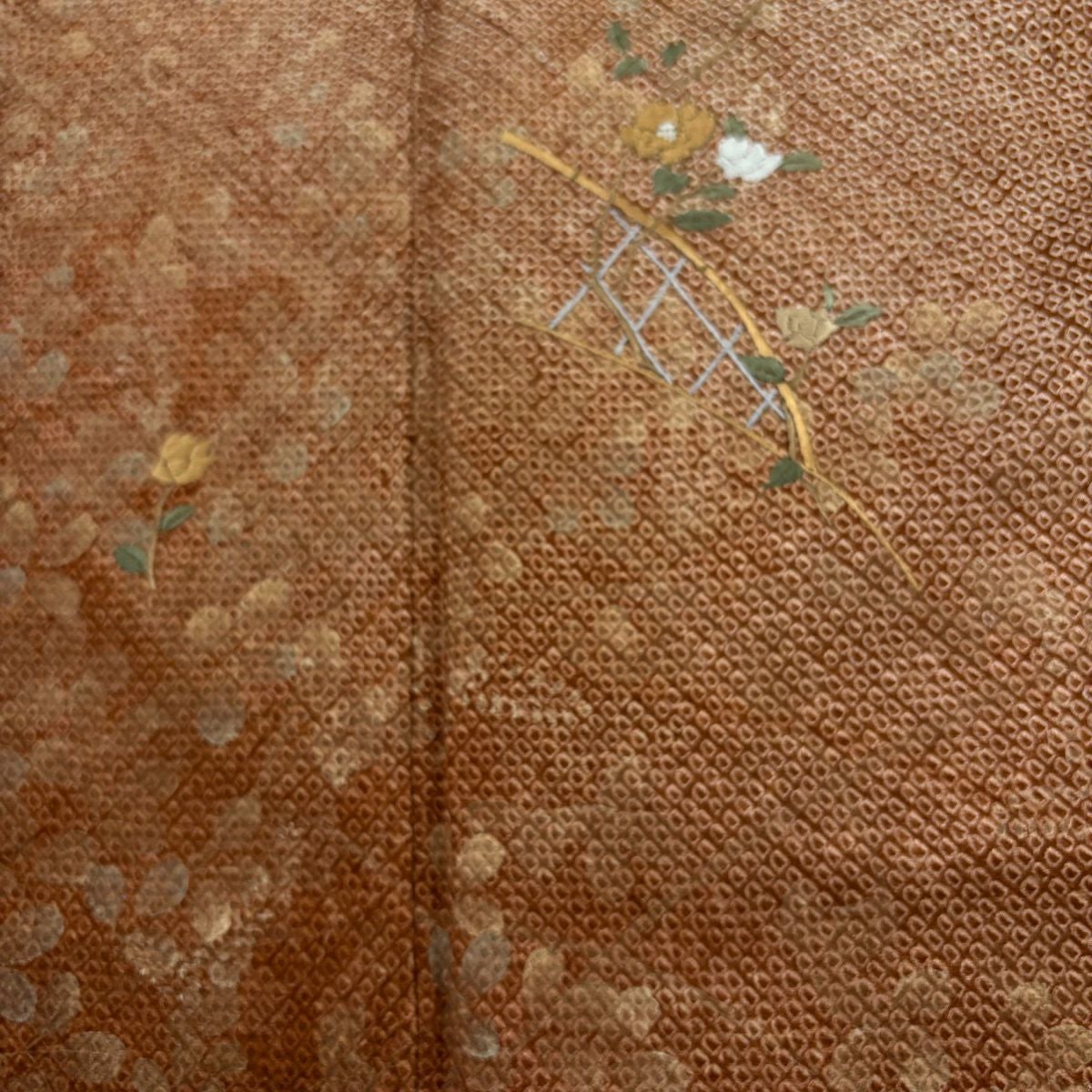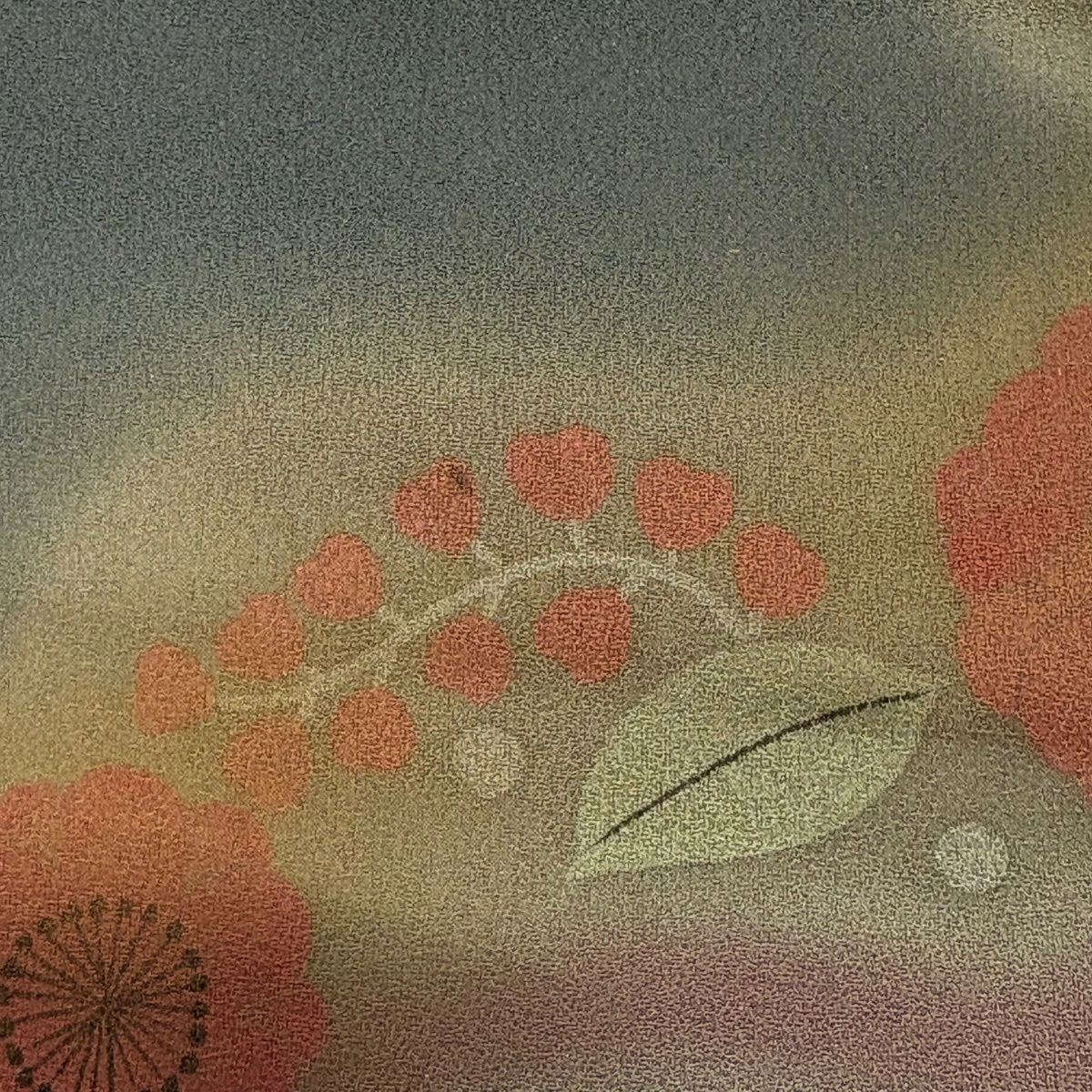 付下げ 身丈163cm 裄丈66cm M 袷 鼓 草花 金糸 刺繍 抹茶色 正絹 秀品