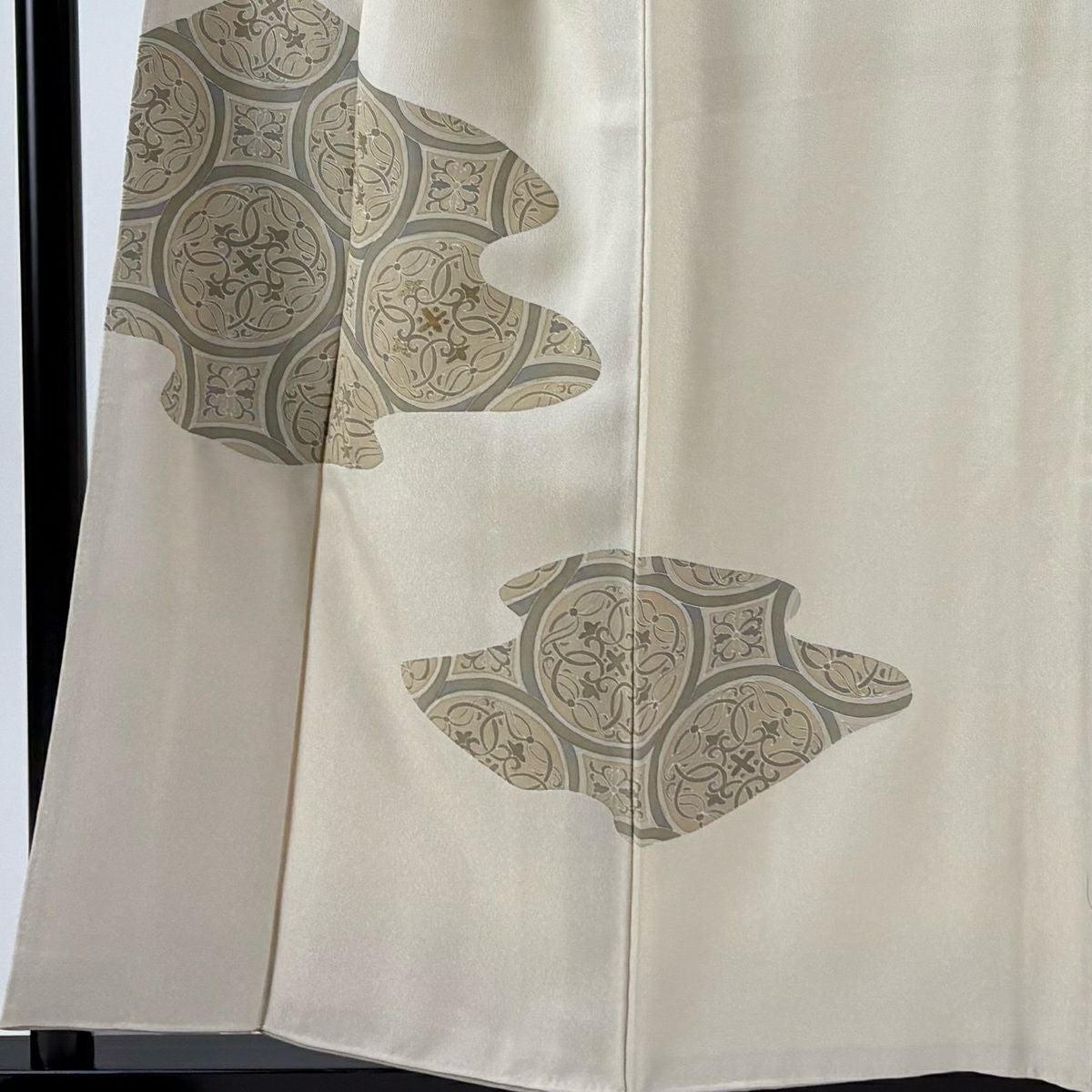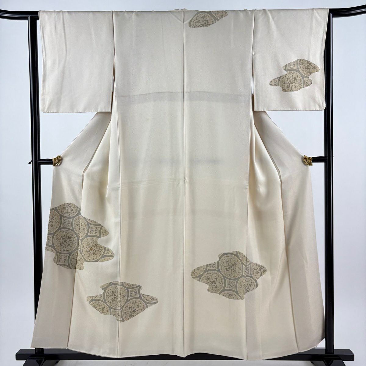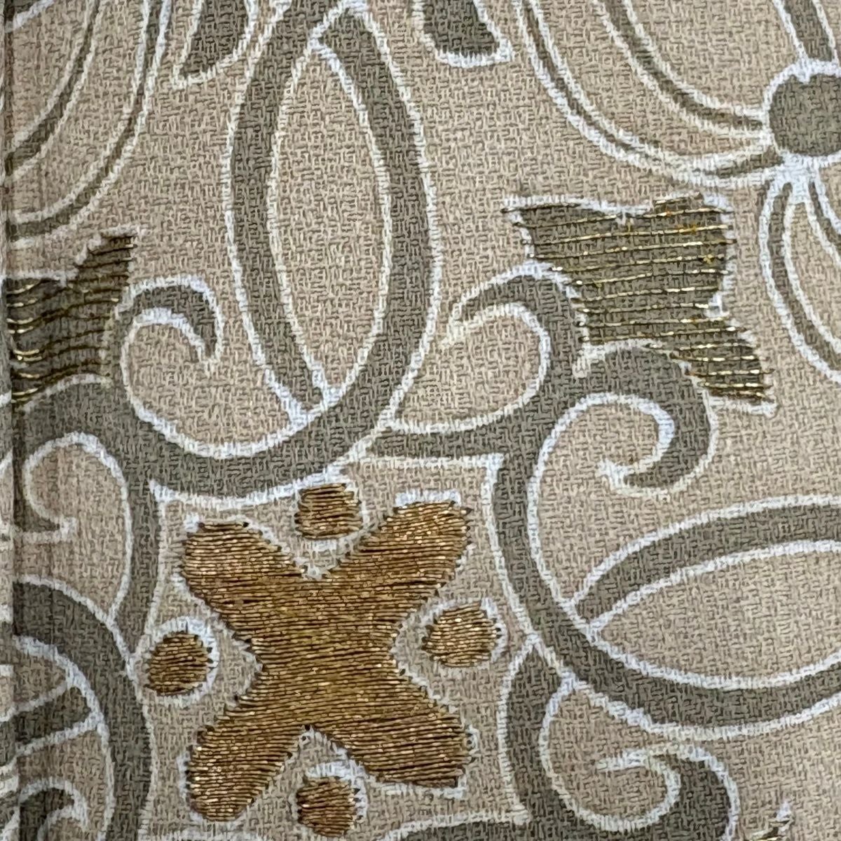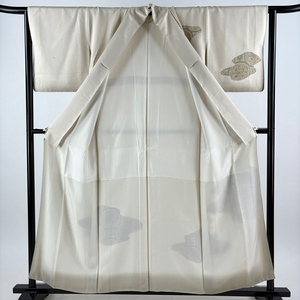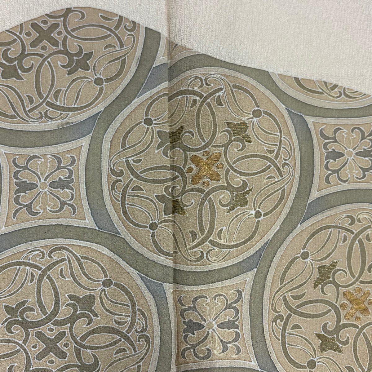 付下げ 身丈157cm 裄丈63cm S 袷 丸文 花 金糸 ベージュ 正絹 秀品