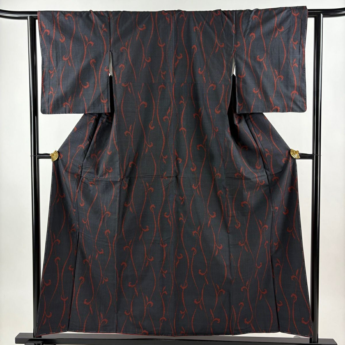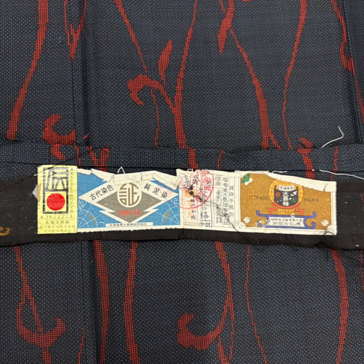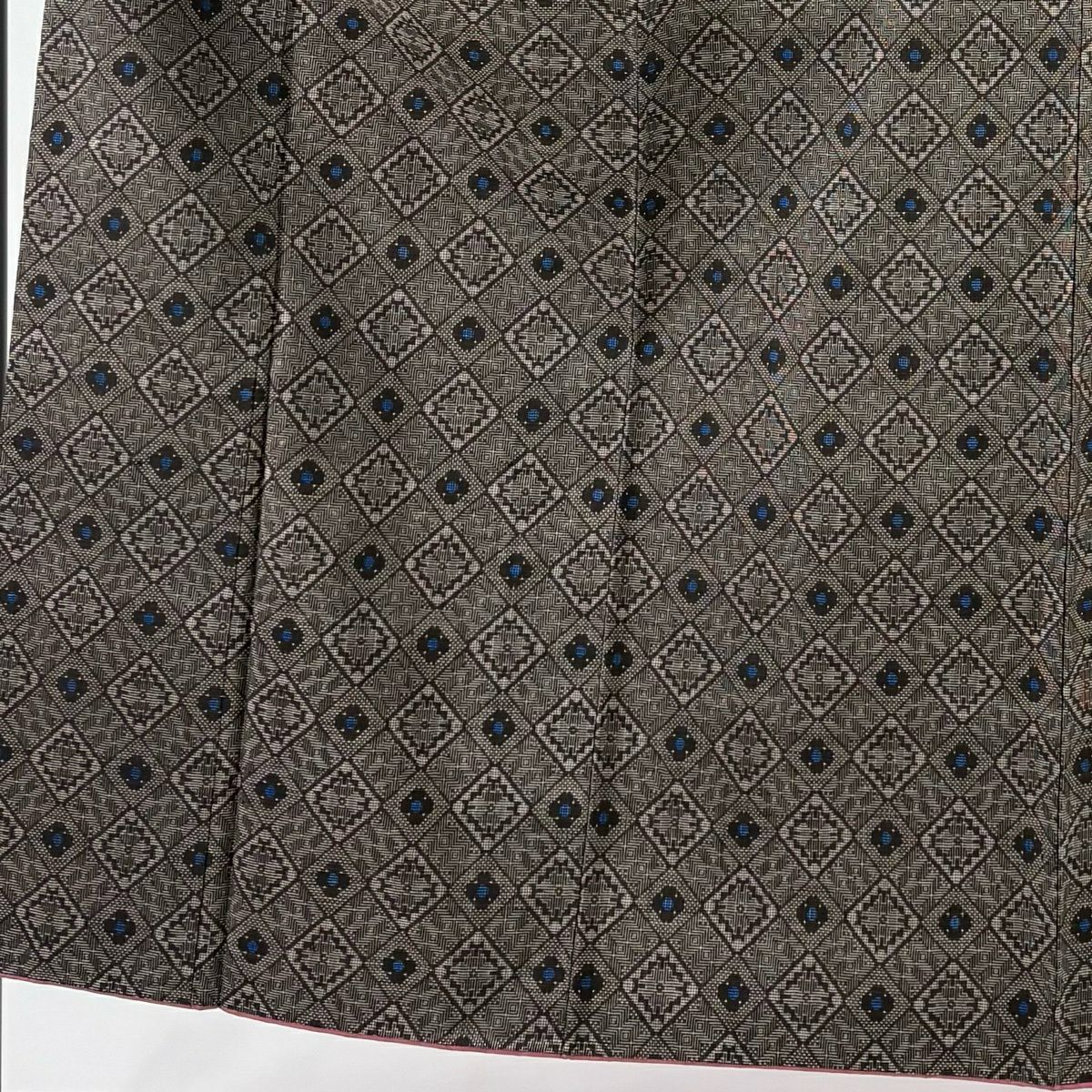 大島紬 身丈157cm 裄丈62cm S 袷 純泥染 証紙あり 唐草 紺色 正絹 秀品