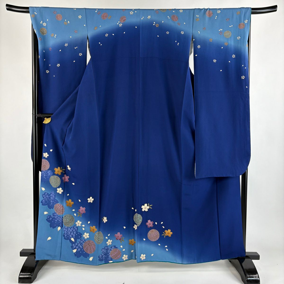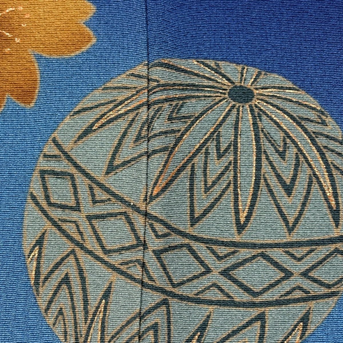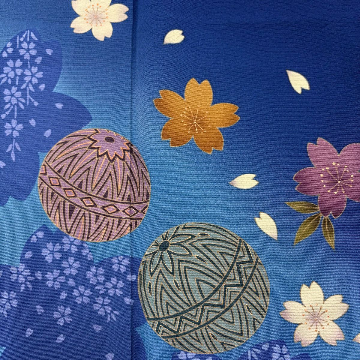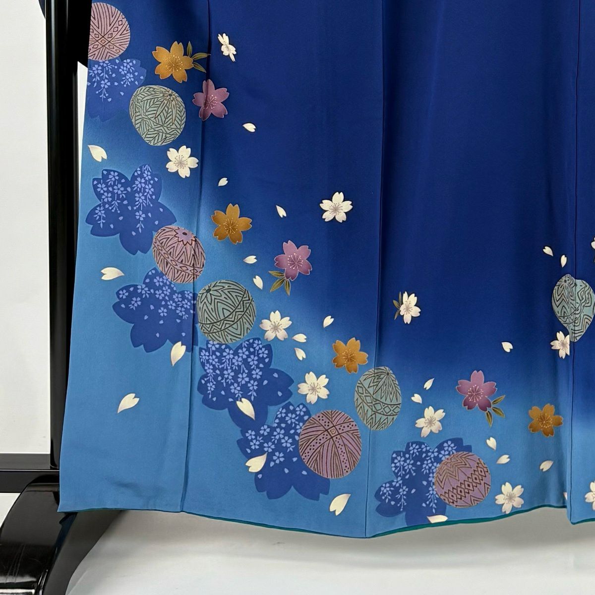 振袖 身丈162.5cm 裄丈67cm M 袷 手鞠 桜 金彩 ぼかし 青 正絹 秀品
