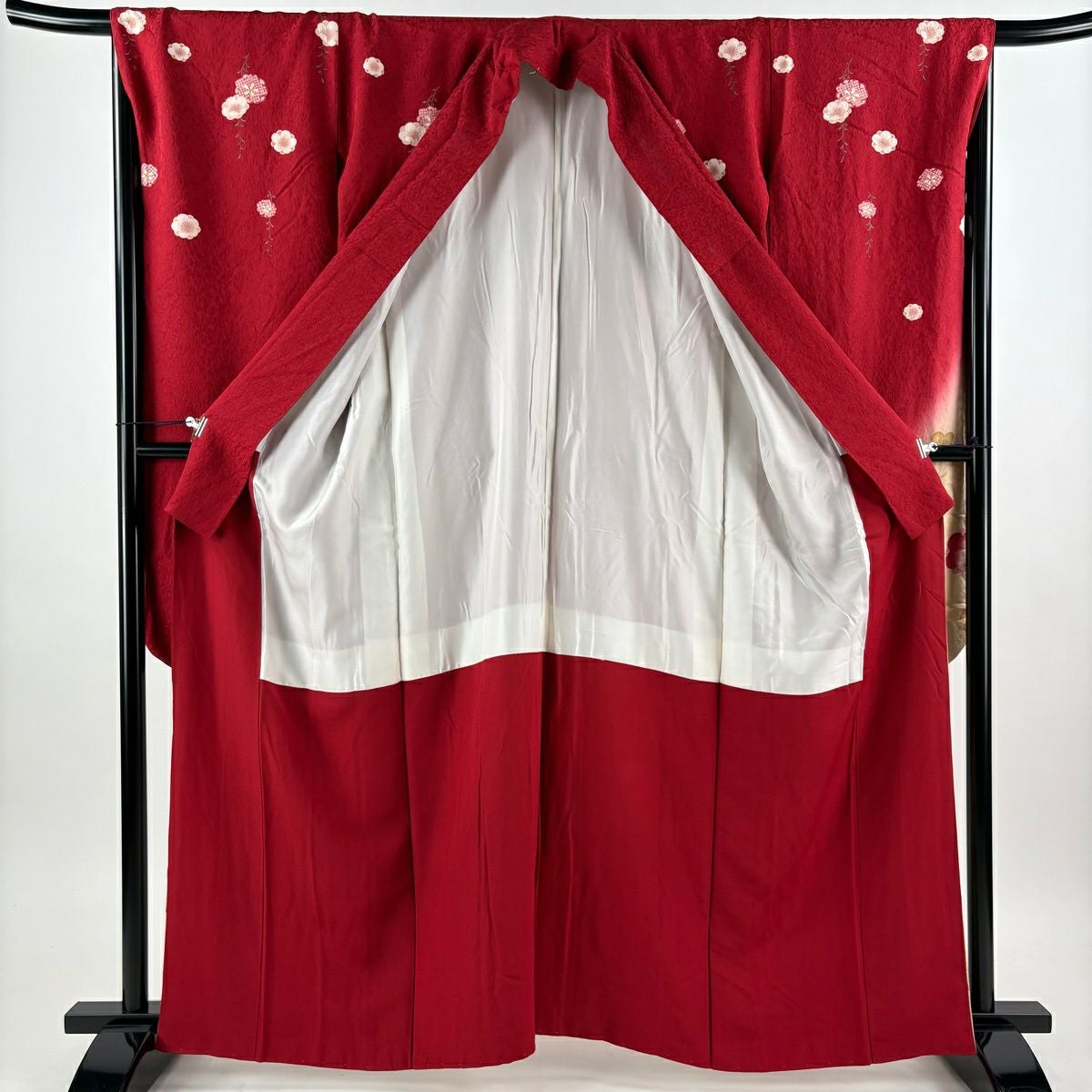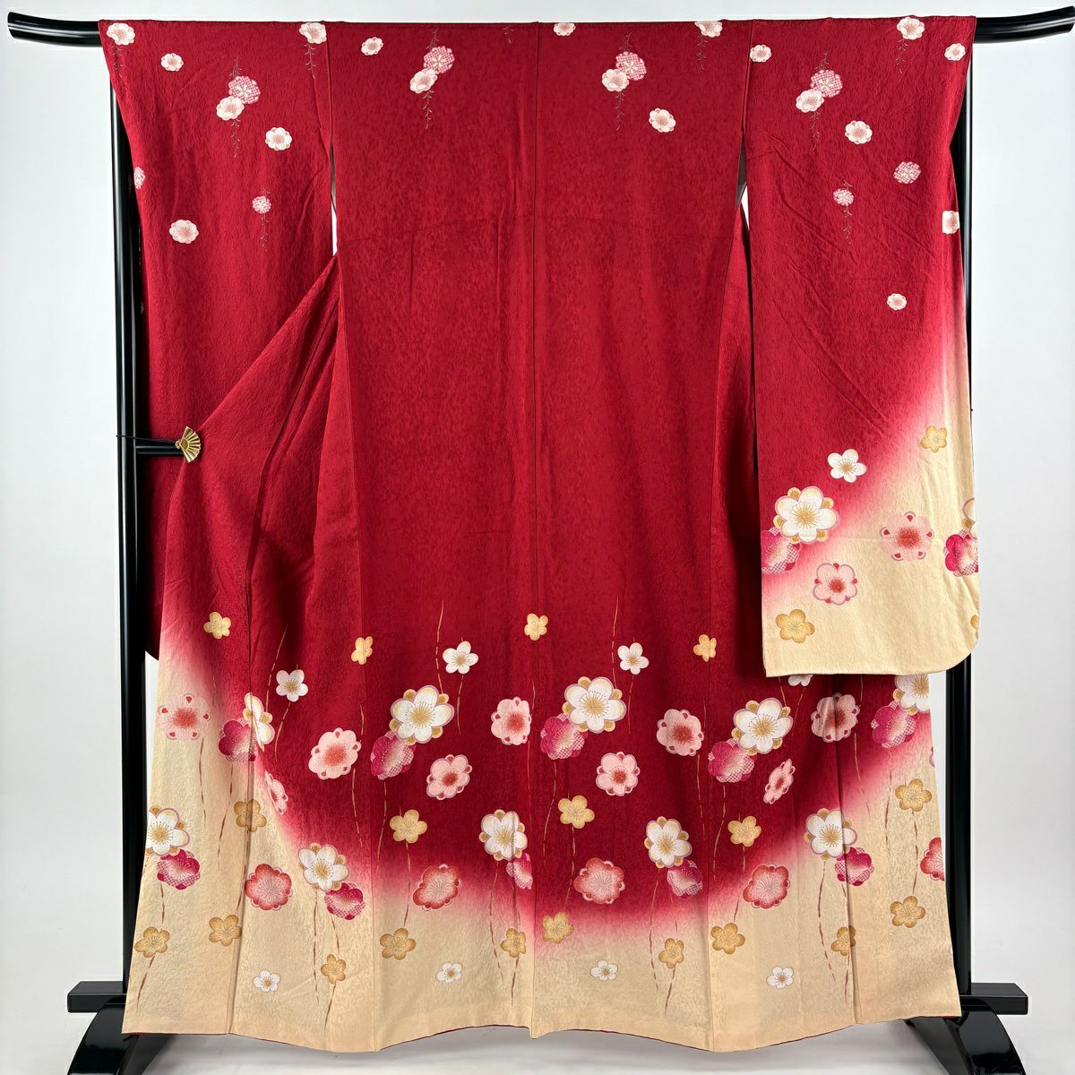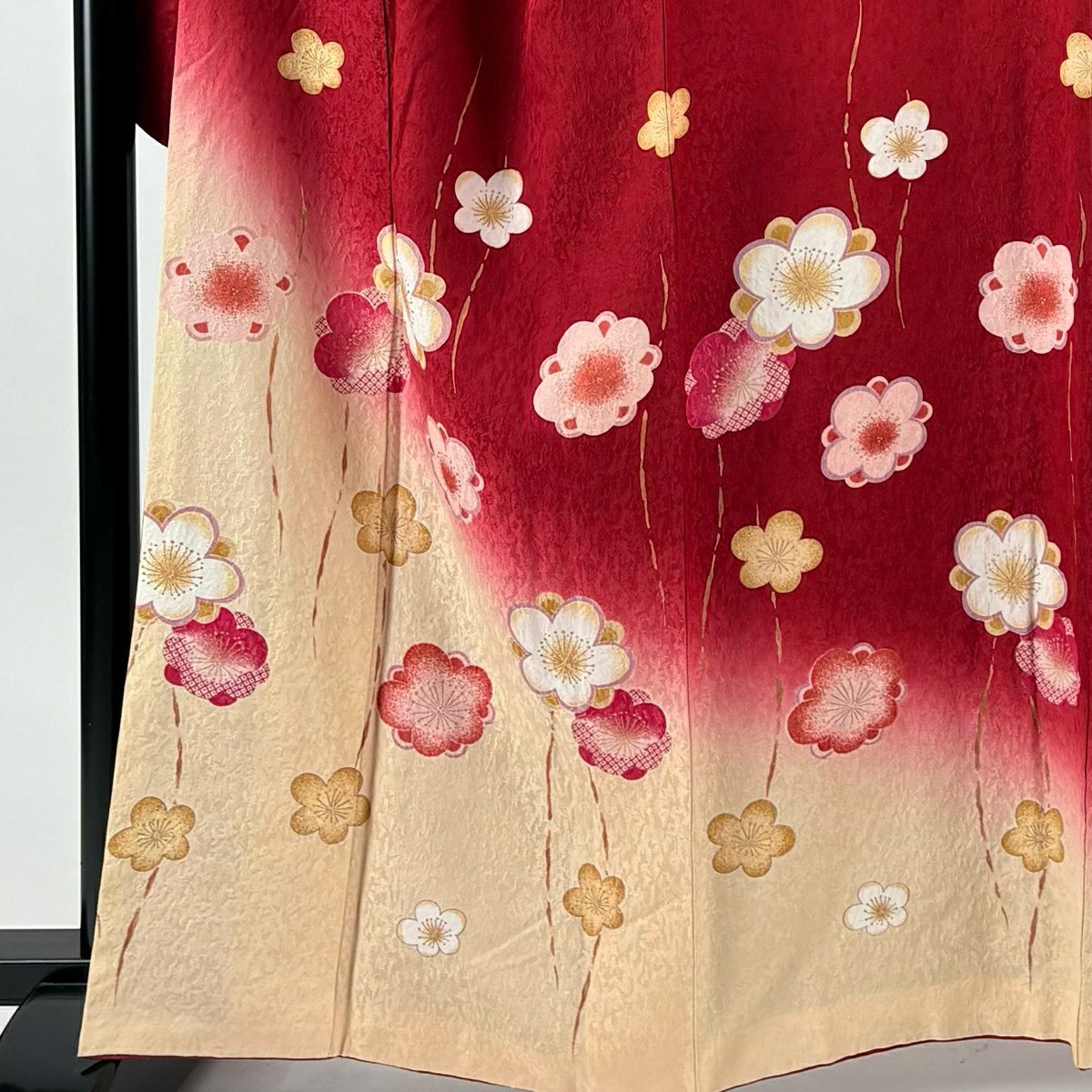 振袖 身丈162cm 裄丈69.5cm L 袷 梅 立涌 金彩 ぼかし 赤 正絹 秀品