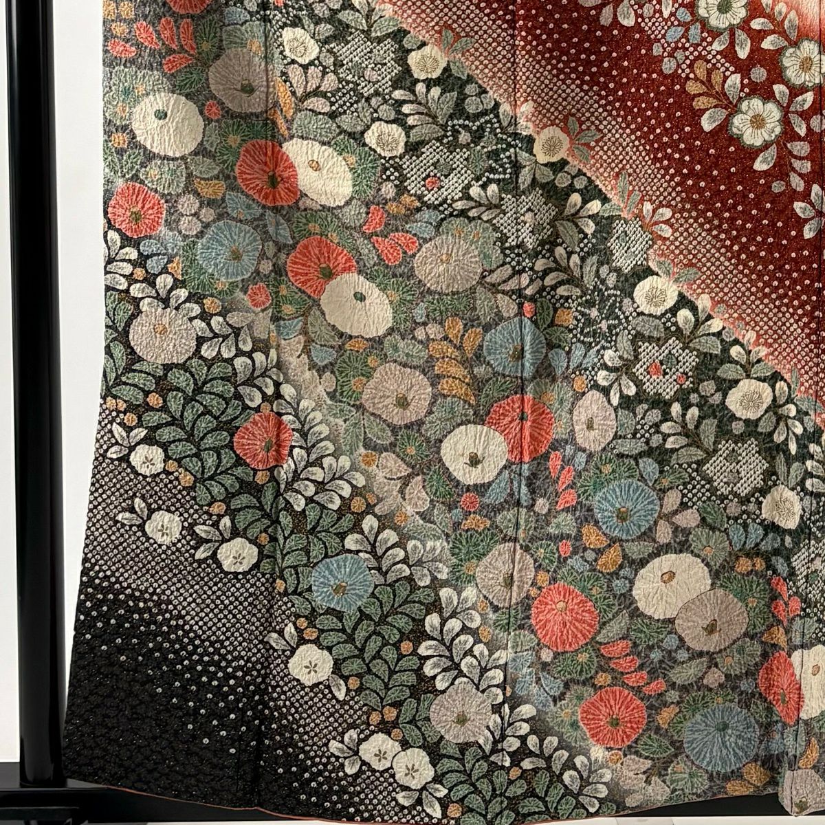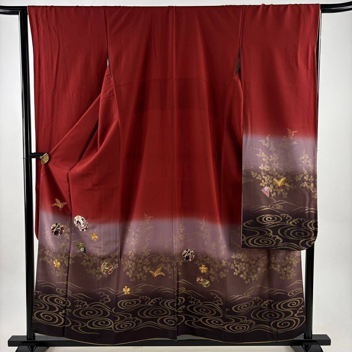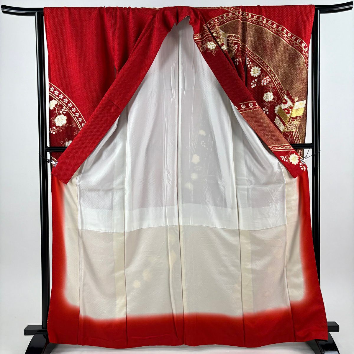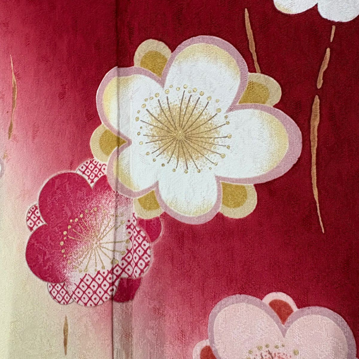 振袖 身丈162cm 裄丈69.5cm L 袷 梅 立涌 金彩 ぼかし 赤 正絹 秀品