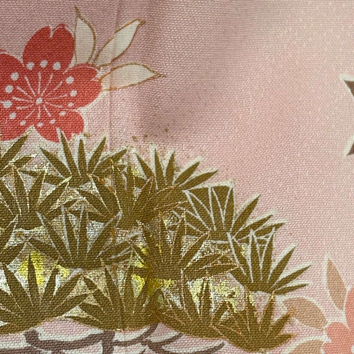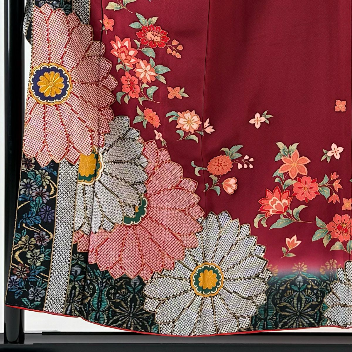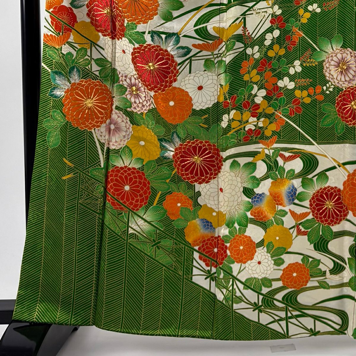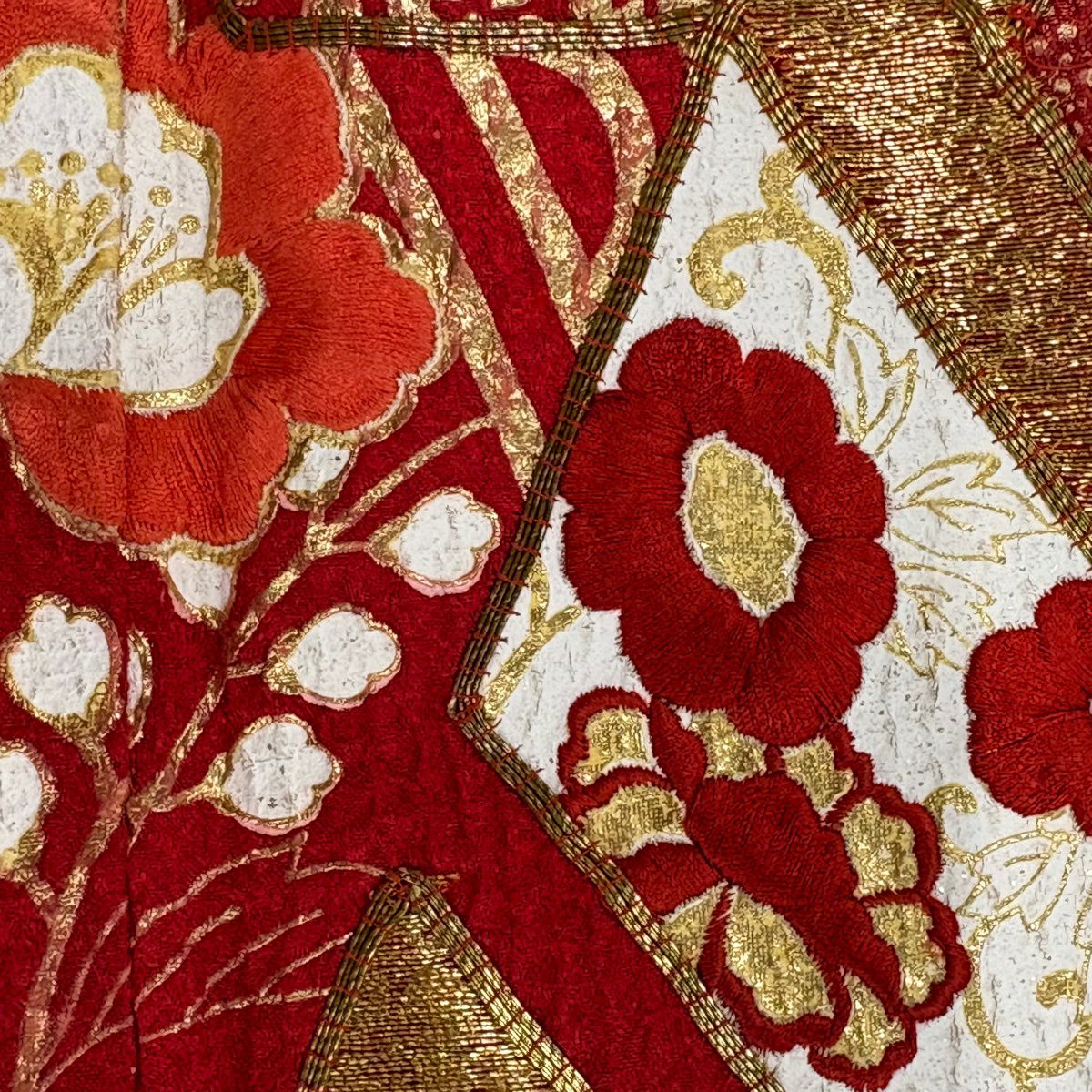 振袖 身丈161.5cm 裄丈66.5cm M 袷 菊 松竹梅 金糸 金彩 朱色 正絹 秀品