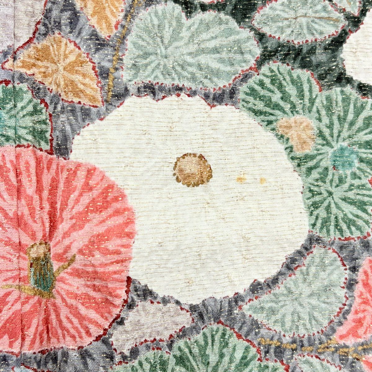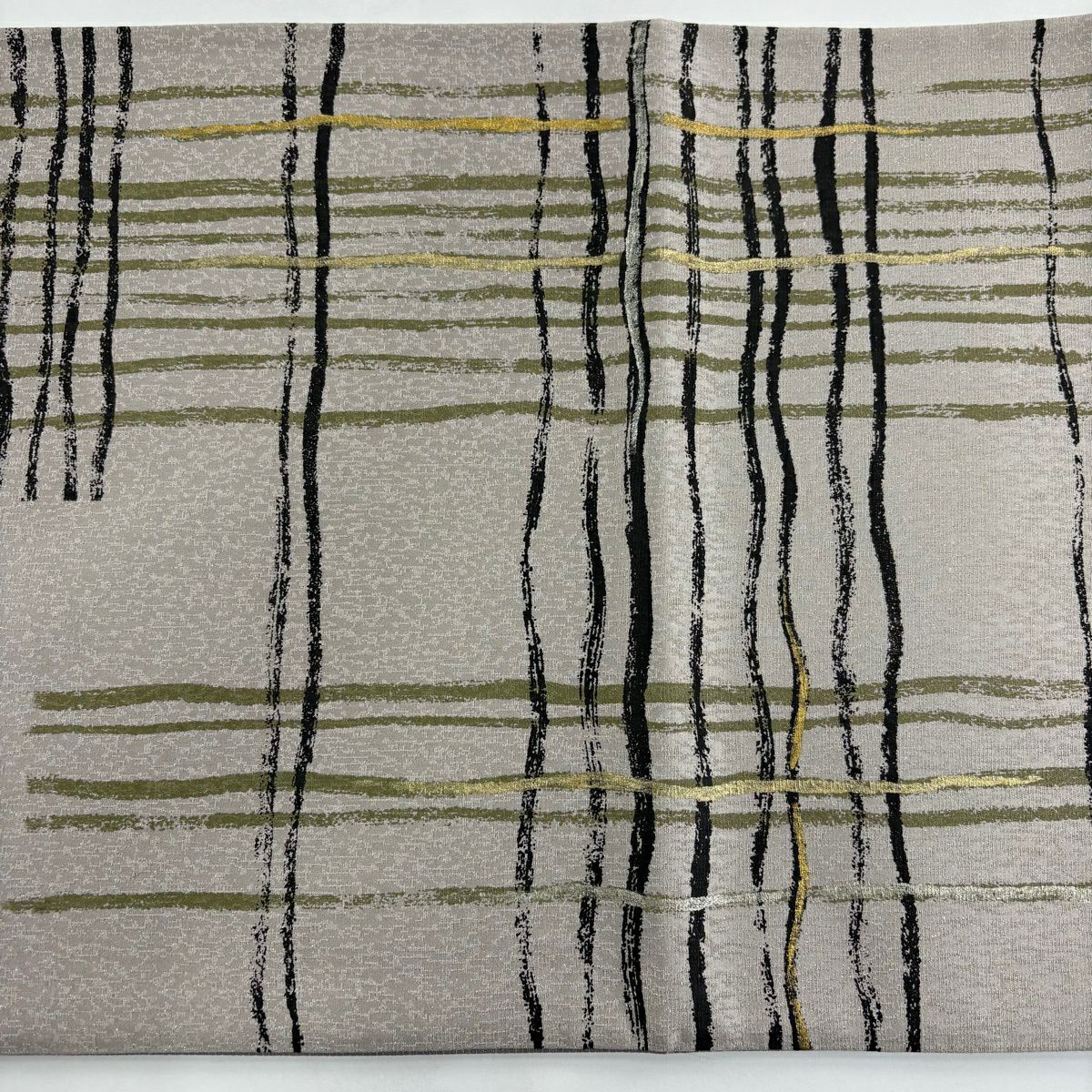 【美品】 袋帯 秀品 やまと 格子 幾何学模様 金彩 銀通し 薄小豆 お太鼓柄 正絹
