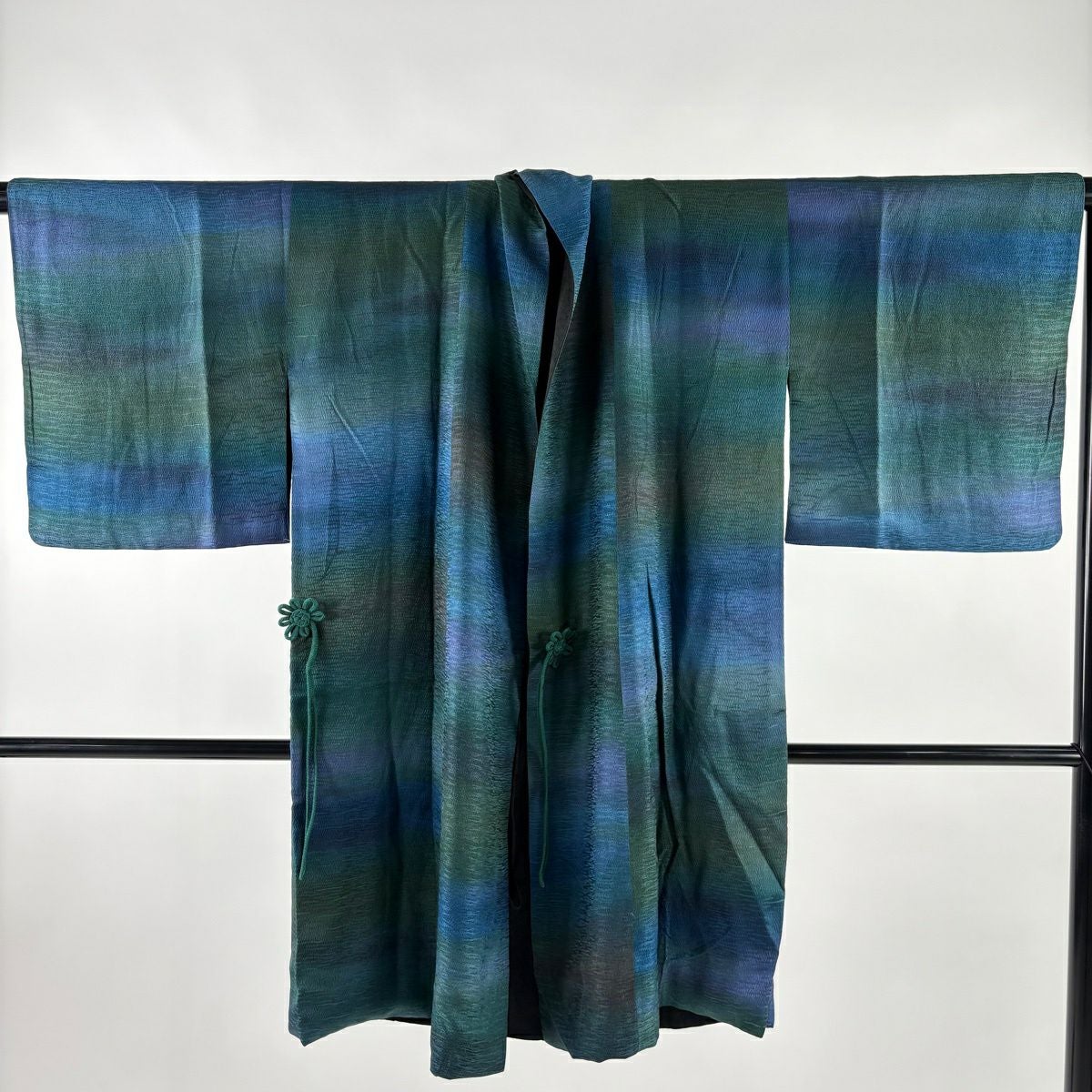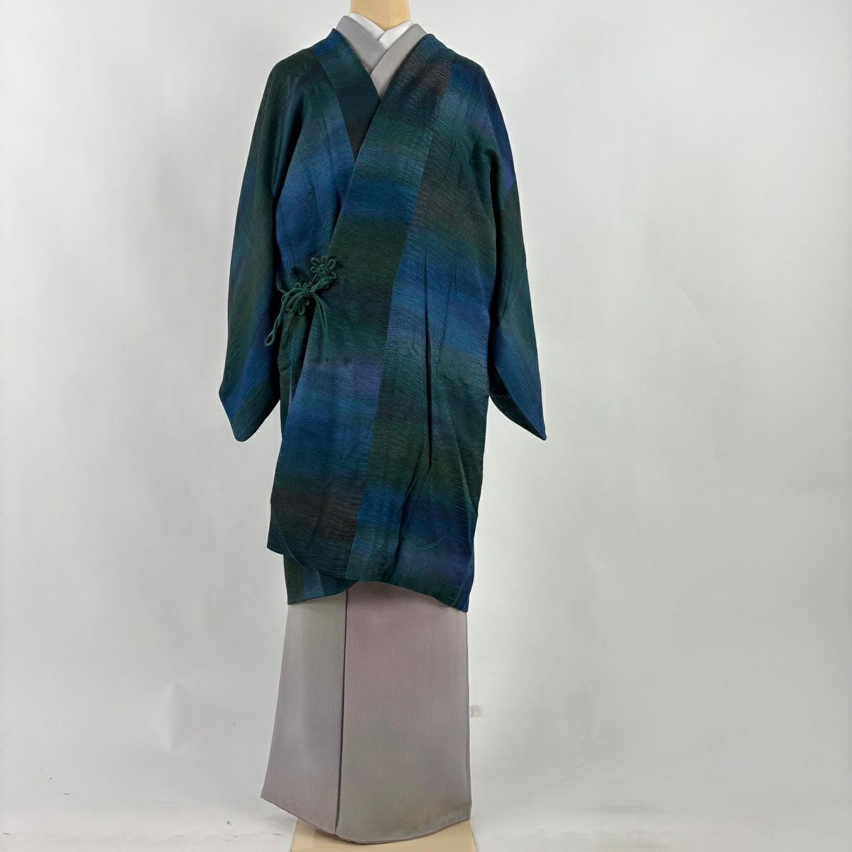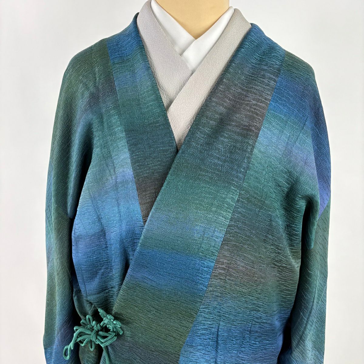 道中着 身丈98.5cm 裄丈63cm S 和装コート 地紋 ぼかし 青緑 正絹 秀品