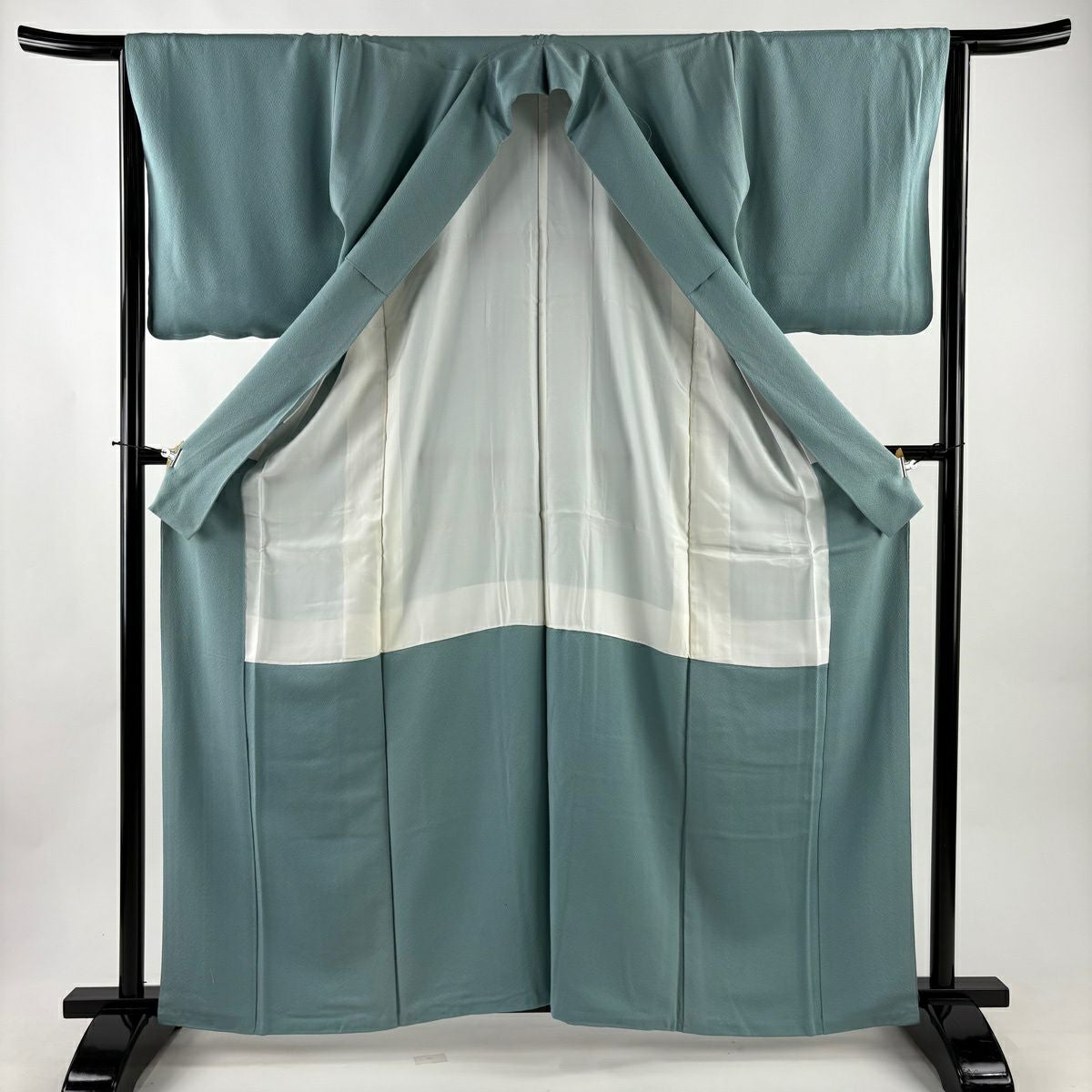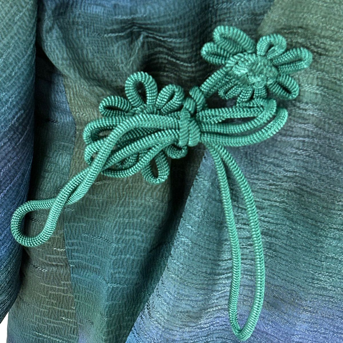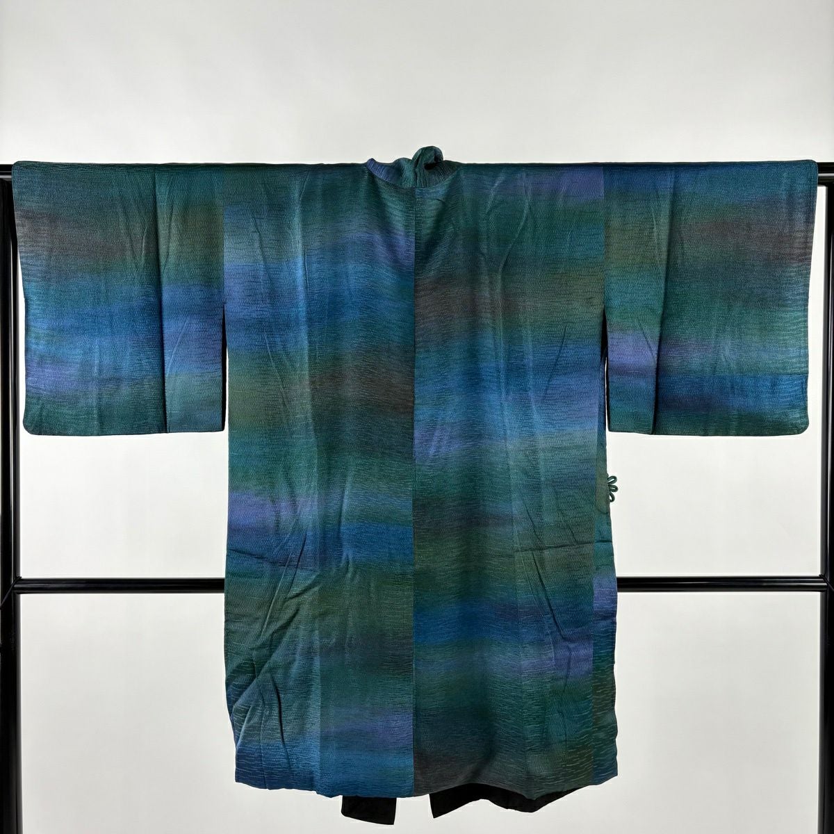 道中着 身丈98.5cm 裄丈63cm S 和装コート 地紋 ぼかし 青緑 正絹 秀品