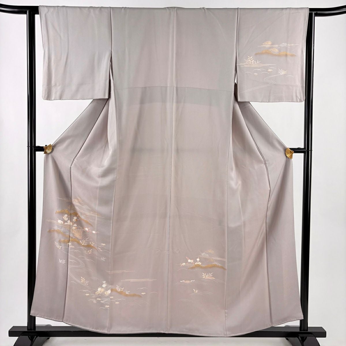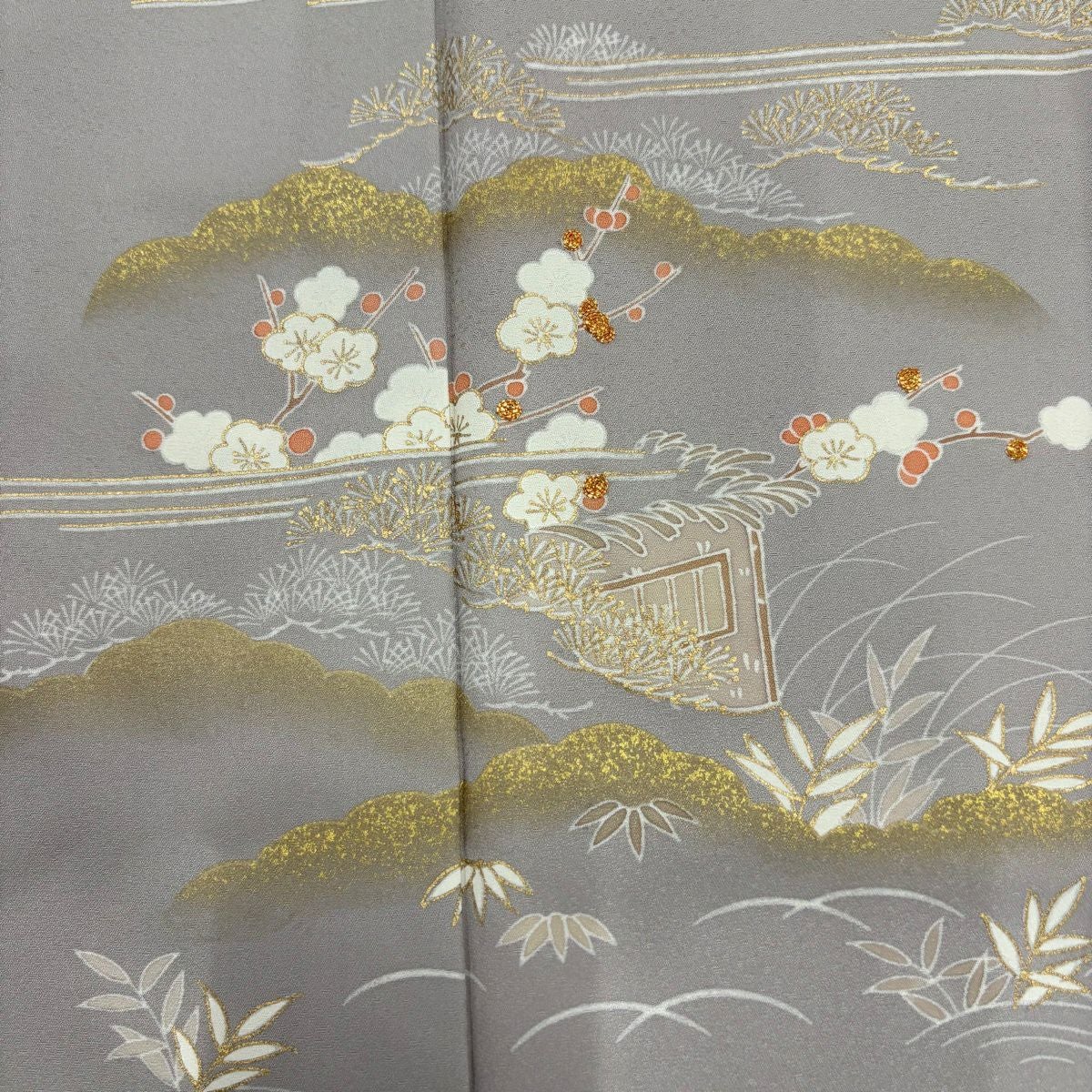訪問着 身丈156cm 裄丈63cm S 袷 松竹梅 雲文 金糸 金彩 灰紫 正絹 秀品