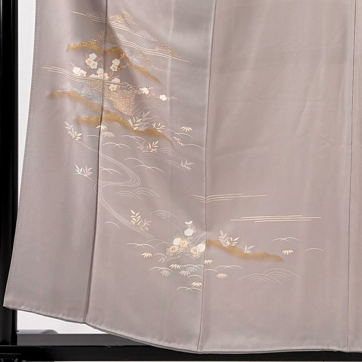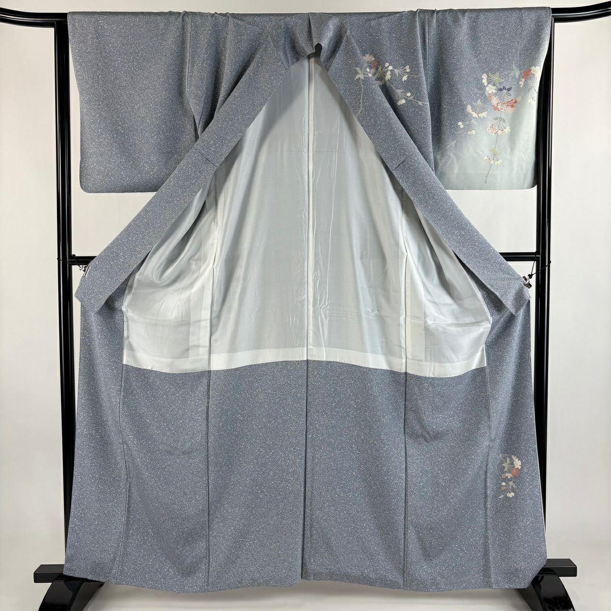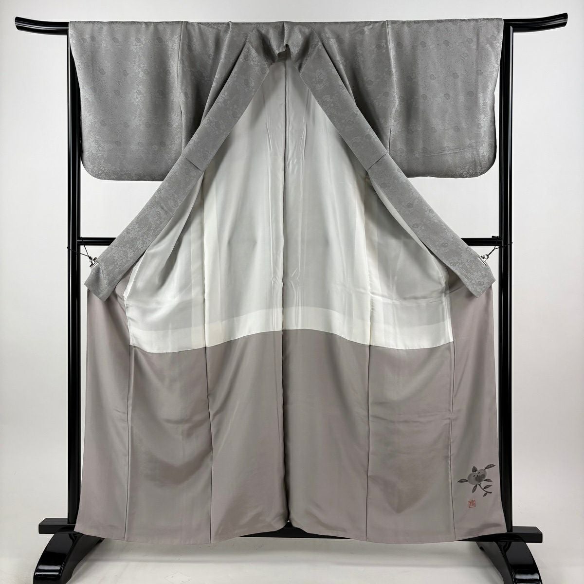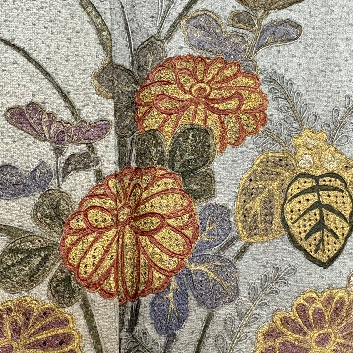 付下げ 身丈160cm 裄丈65.5cm M 袷 菊 桐 金彩 刺繍 灰色 正絹 秀品