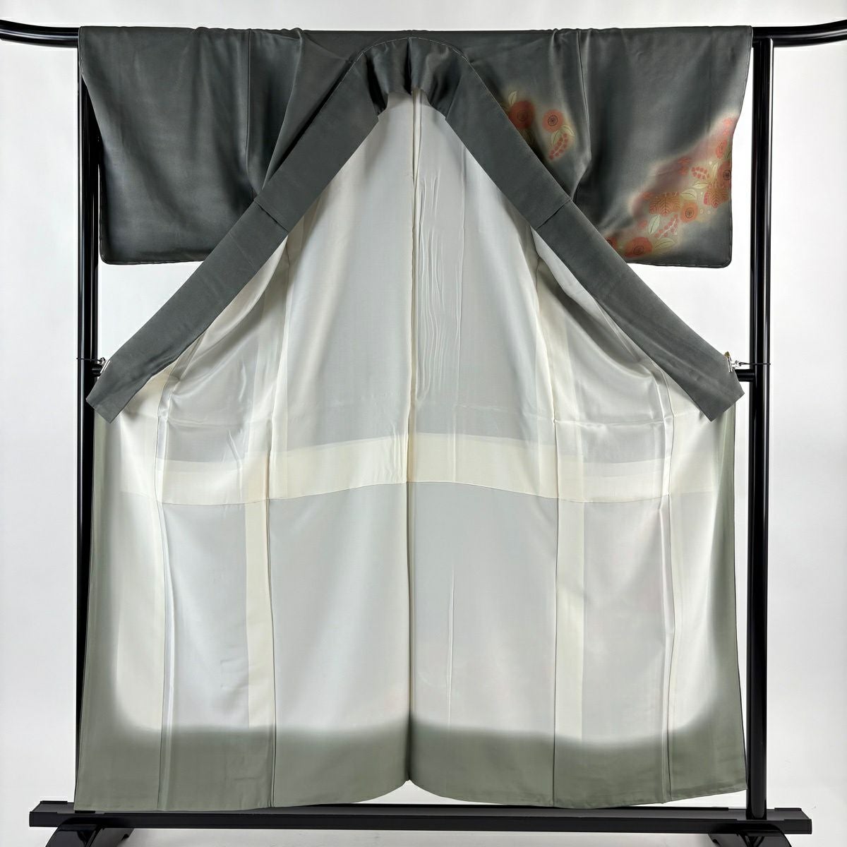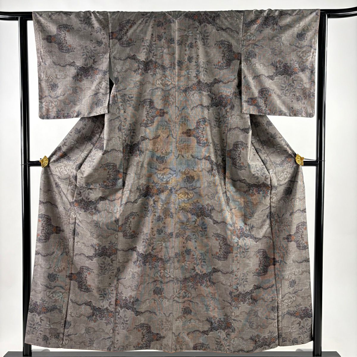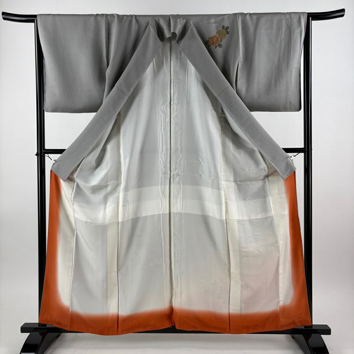 付下げ 身丈160cm 裄丈65.5cm M 袷 菊 桐 金彩 刺繍 灰色 正絹 秀品