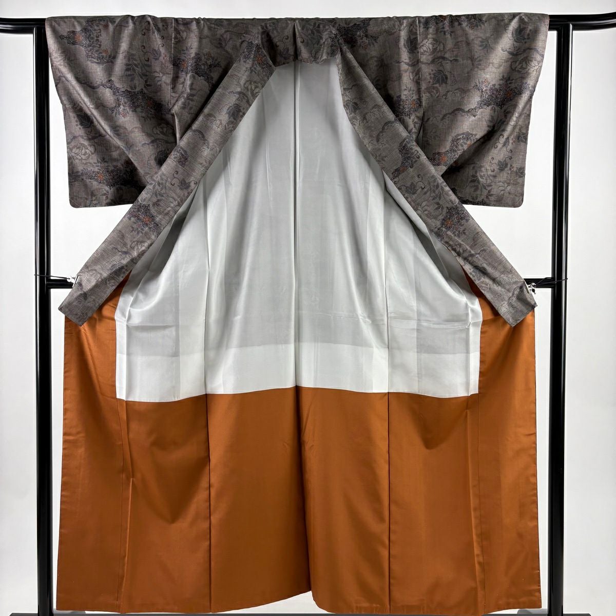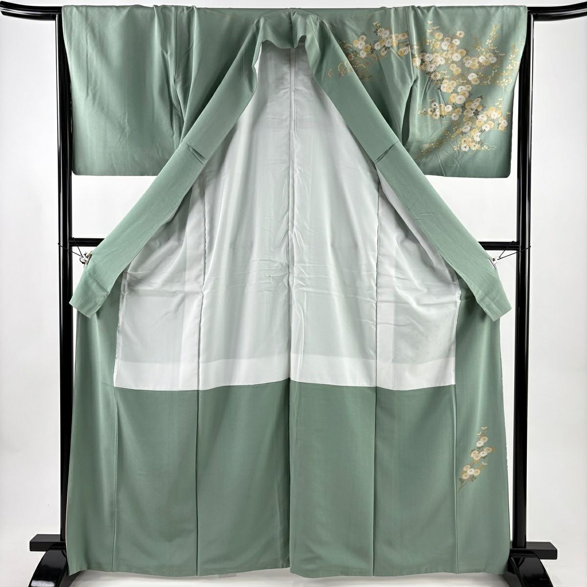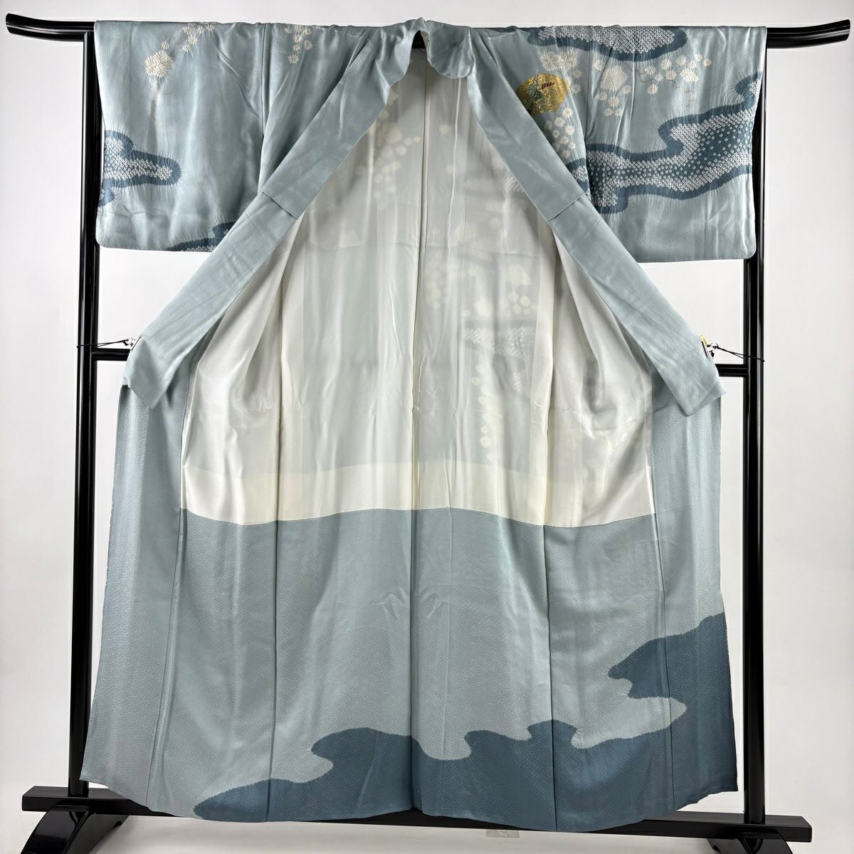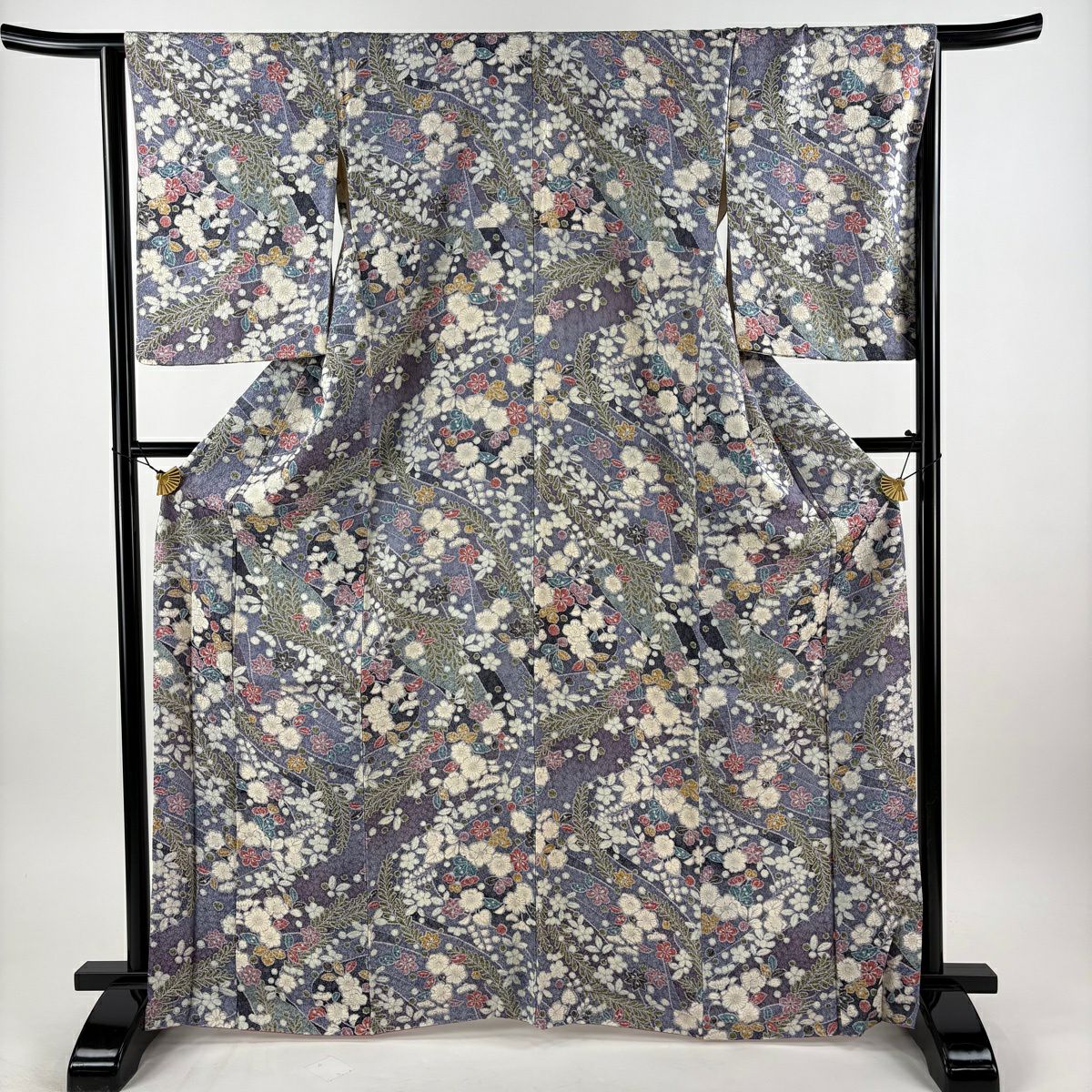 付下げ 身丈160cm 裄丈65.5cm M 袷 菊 桐 金彩 刺繍 灰色 正絹 秀品