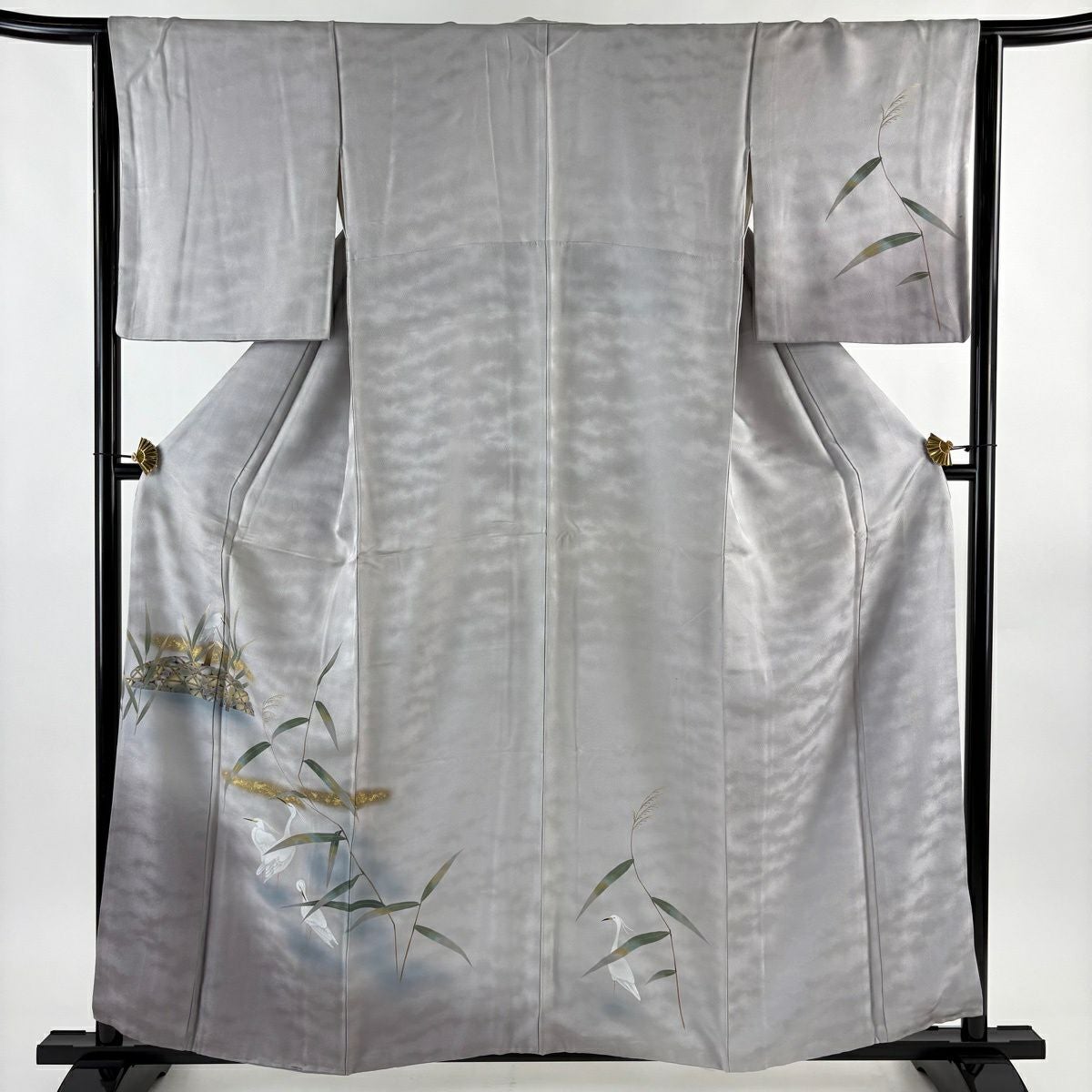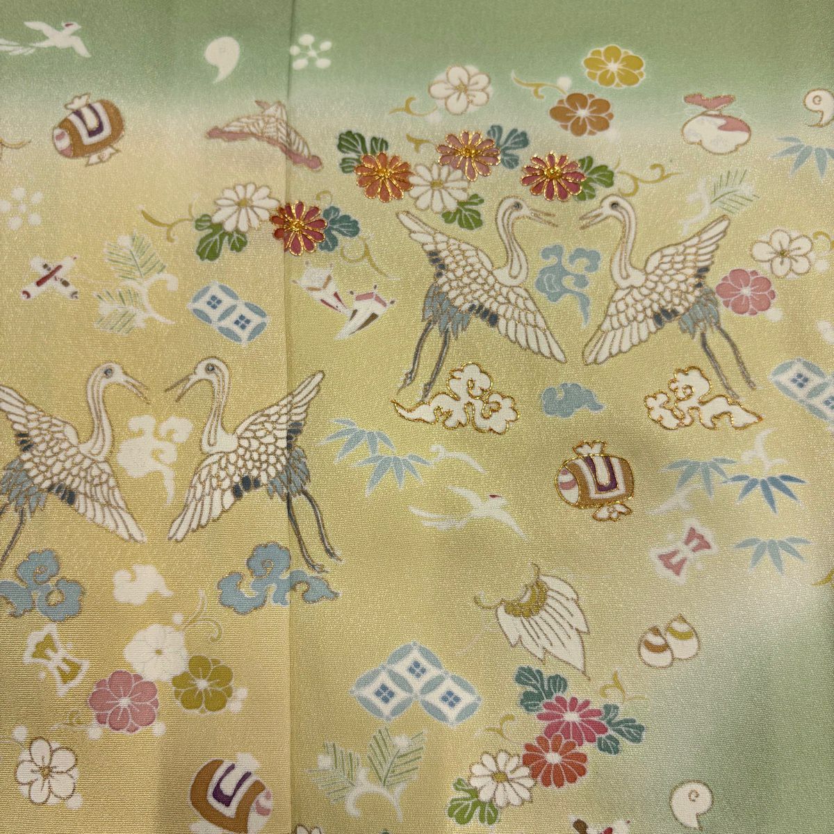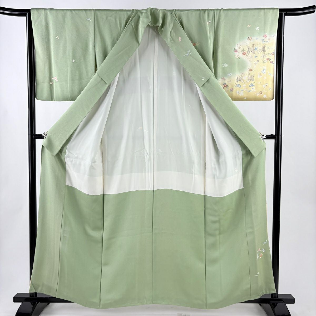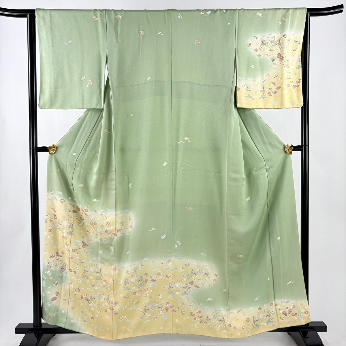 訪問着 身丈159cm 裄丈65cm M 袷 鶴 宝尽くし 金糸 金彩 薄緑 正絹 秀品