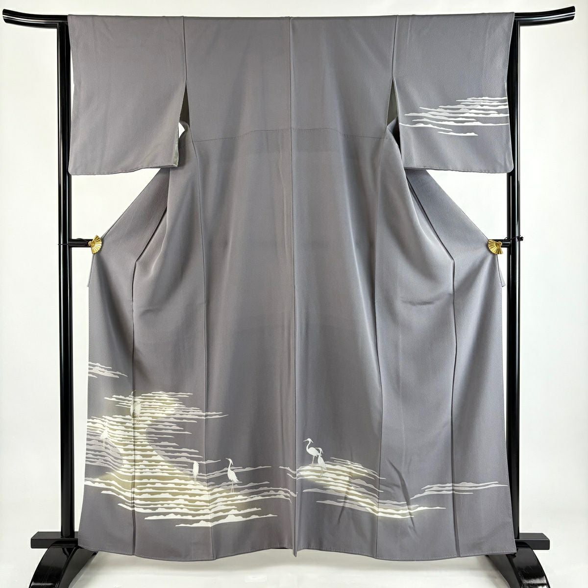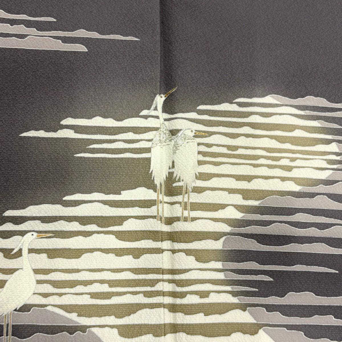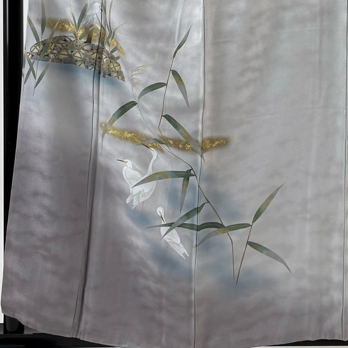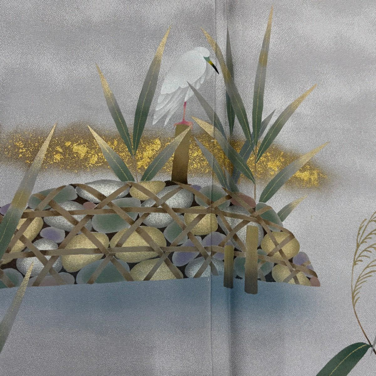 訪問着 身丈159cm 裄丈65cm M 袷 鶴 宝尽くし 金糸 金彩 薄緑 正絹 秀品
