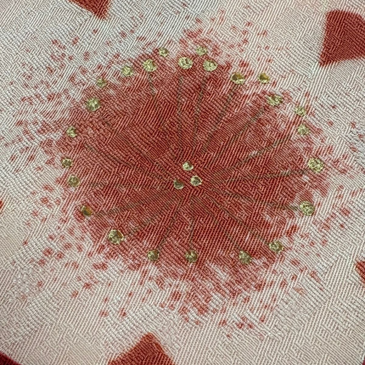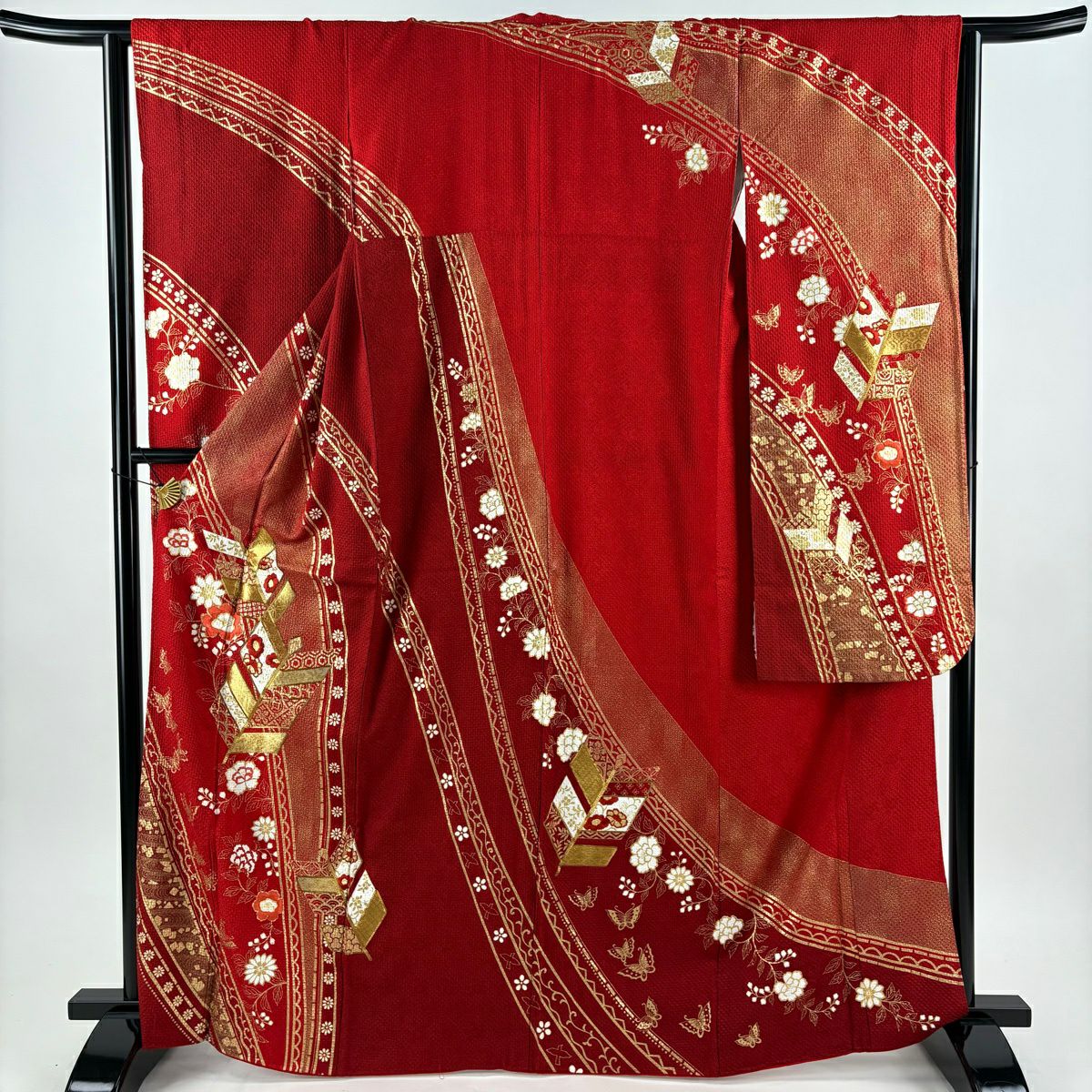振袖 身丈168.5cm 裄丈64cm M 袷 矢羽 草花 刺繍 金糸 赤 正絹 秀品