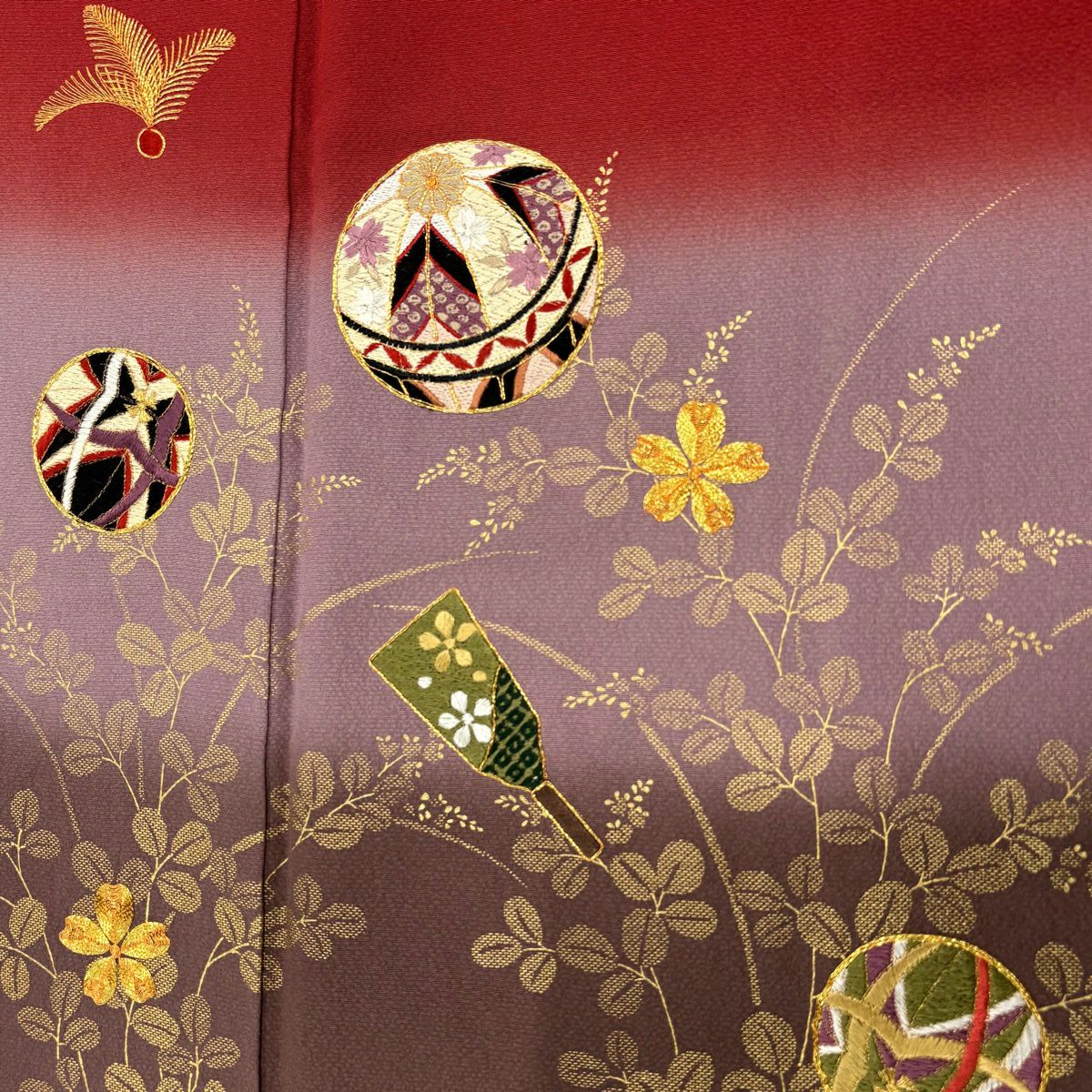 振袖 身丈158cm 裄丈64.5cm M 袷 鞠 羽子板 刺繍 金糸 赤 正絹 秀品