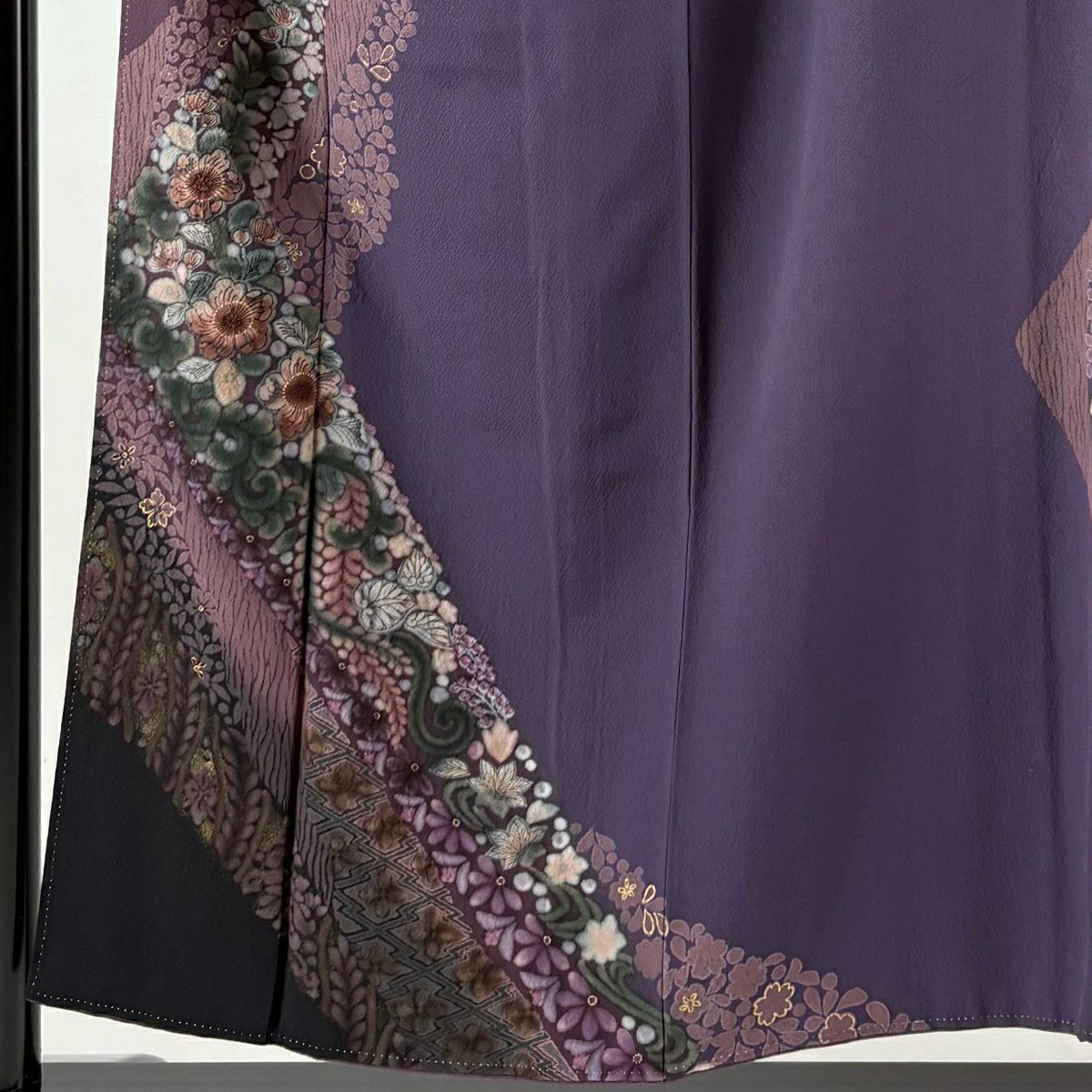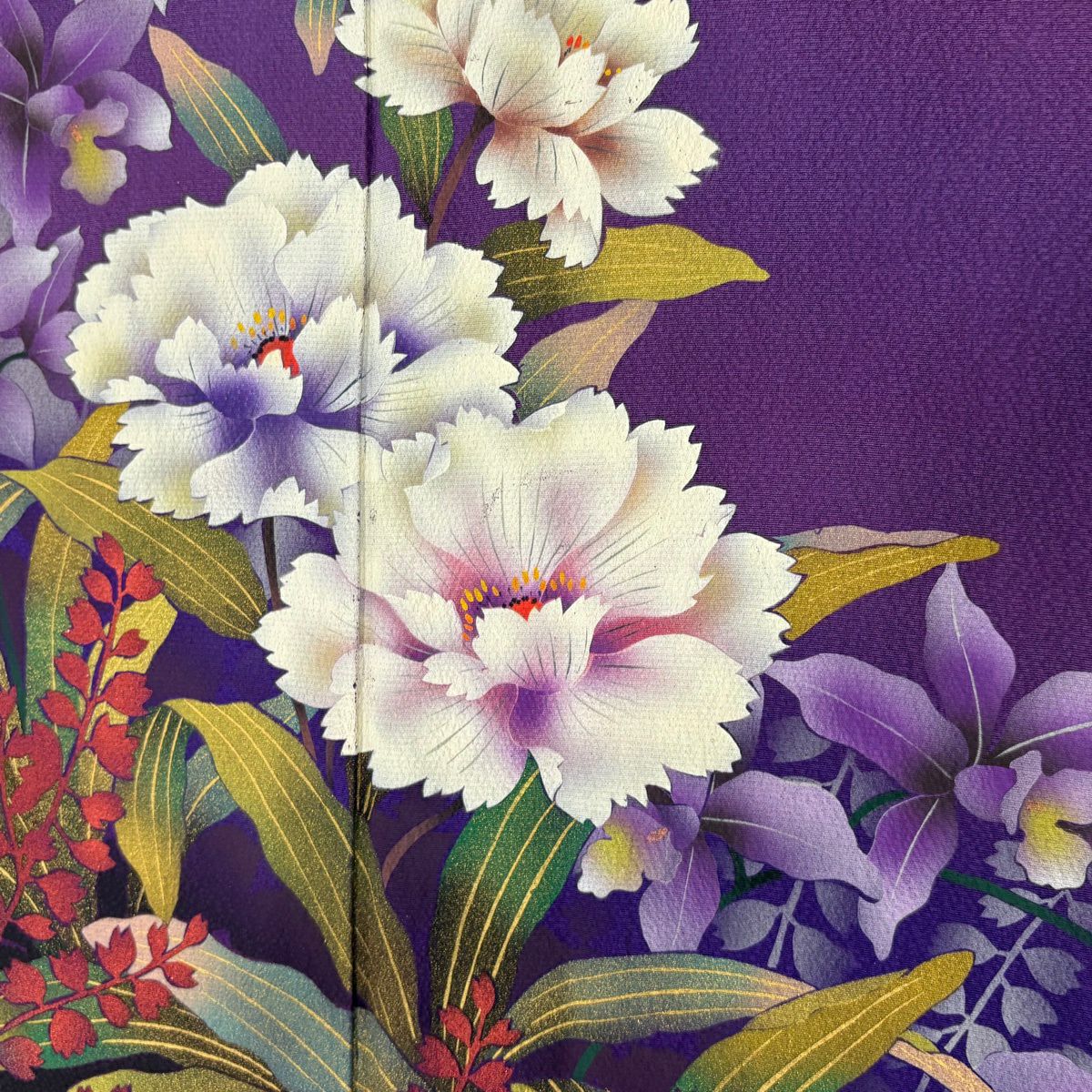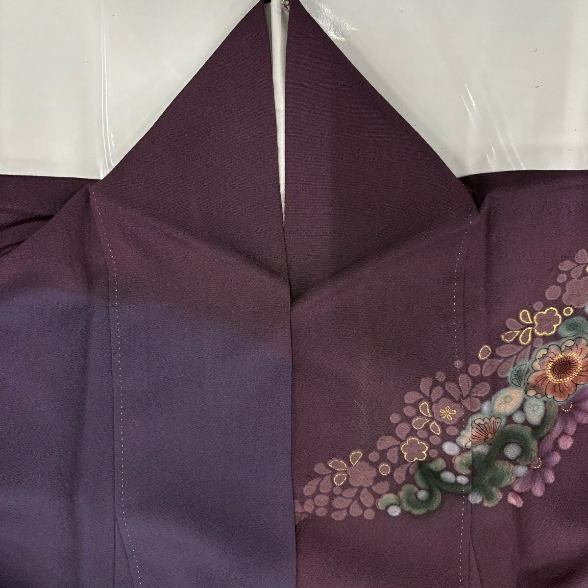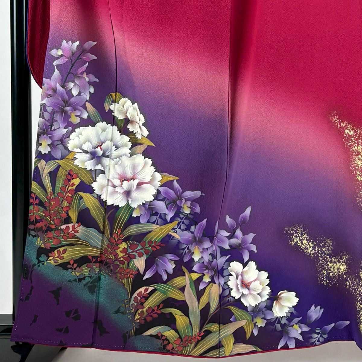 振袖 身丈162cm 裄丈67.5cm L 袷 草花 金彩 染め分け 赤紫 正絹 秀品