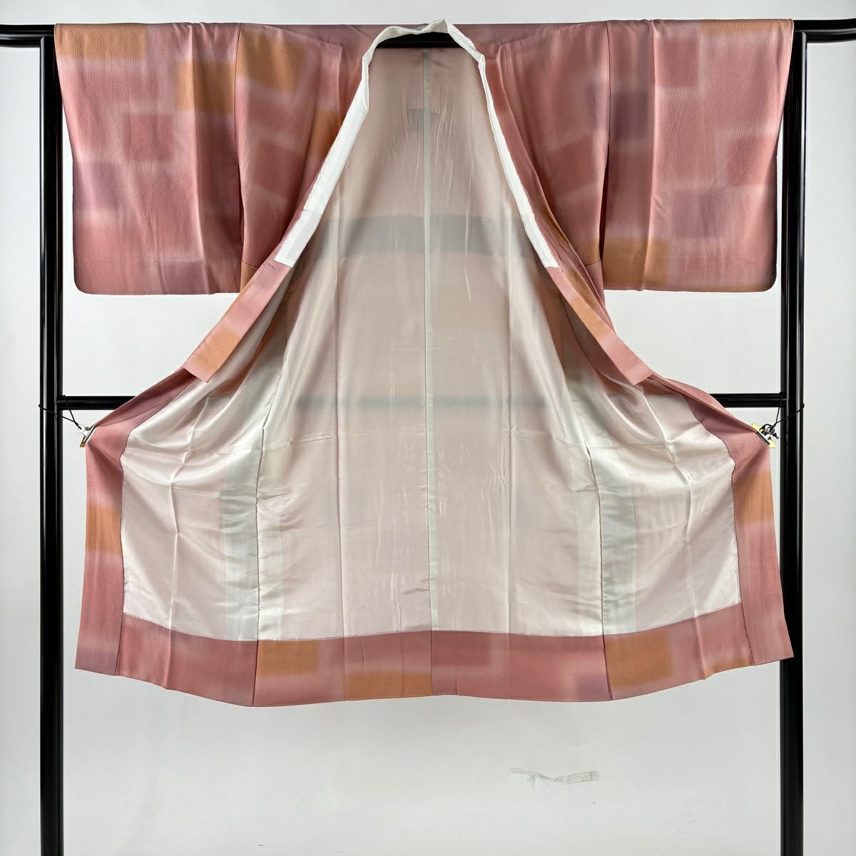 長襦袢 身丈124.5cm 裄丈64cm M 幾何学模様 ぼかし ピンク 正絹 秀品