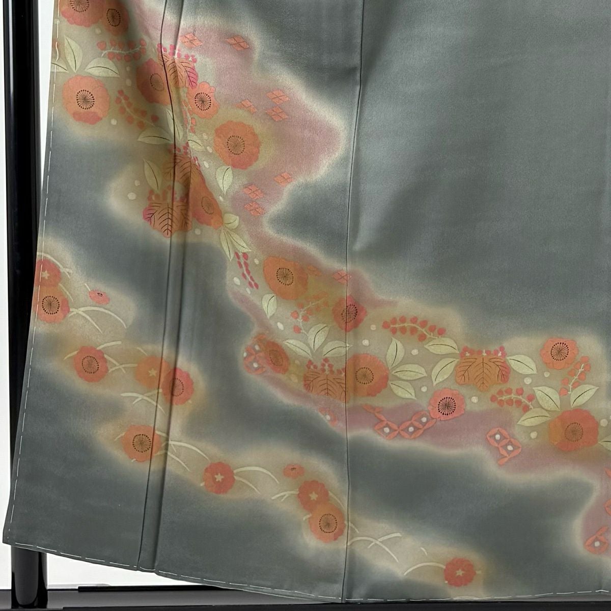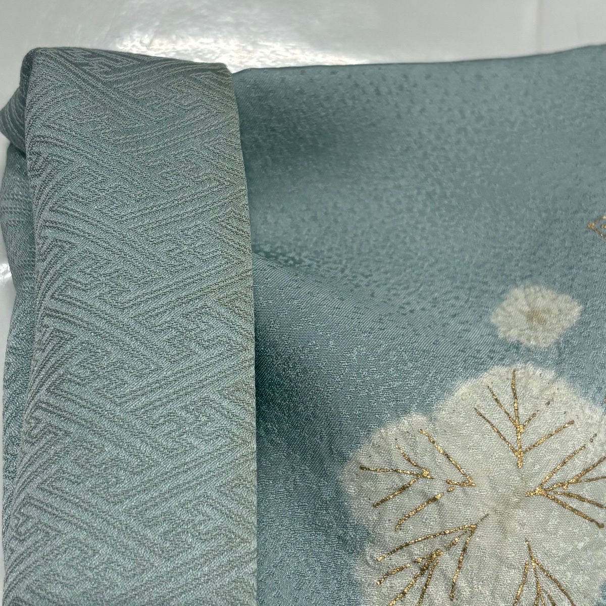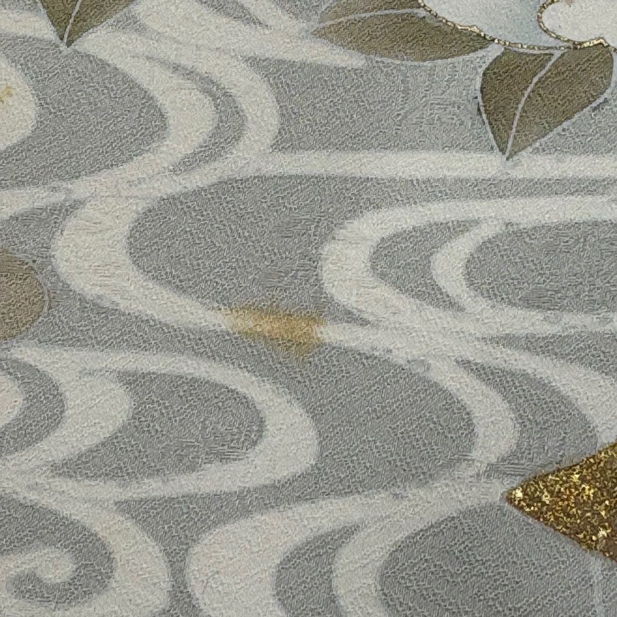 付下げ 身丈157.5cm 裄丈66cm M 袷 華文 青海波 刺繍 灰緑 正絹 秀品