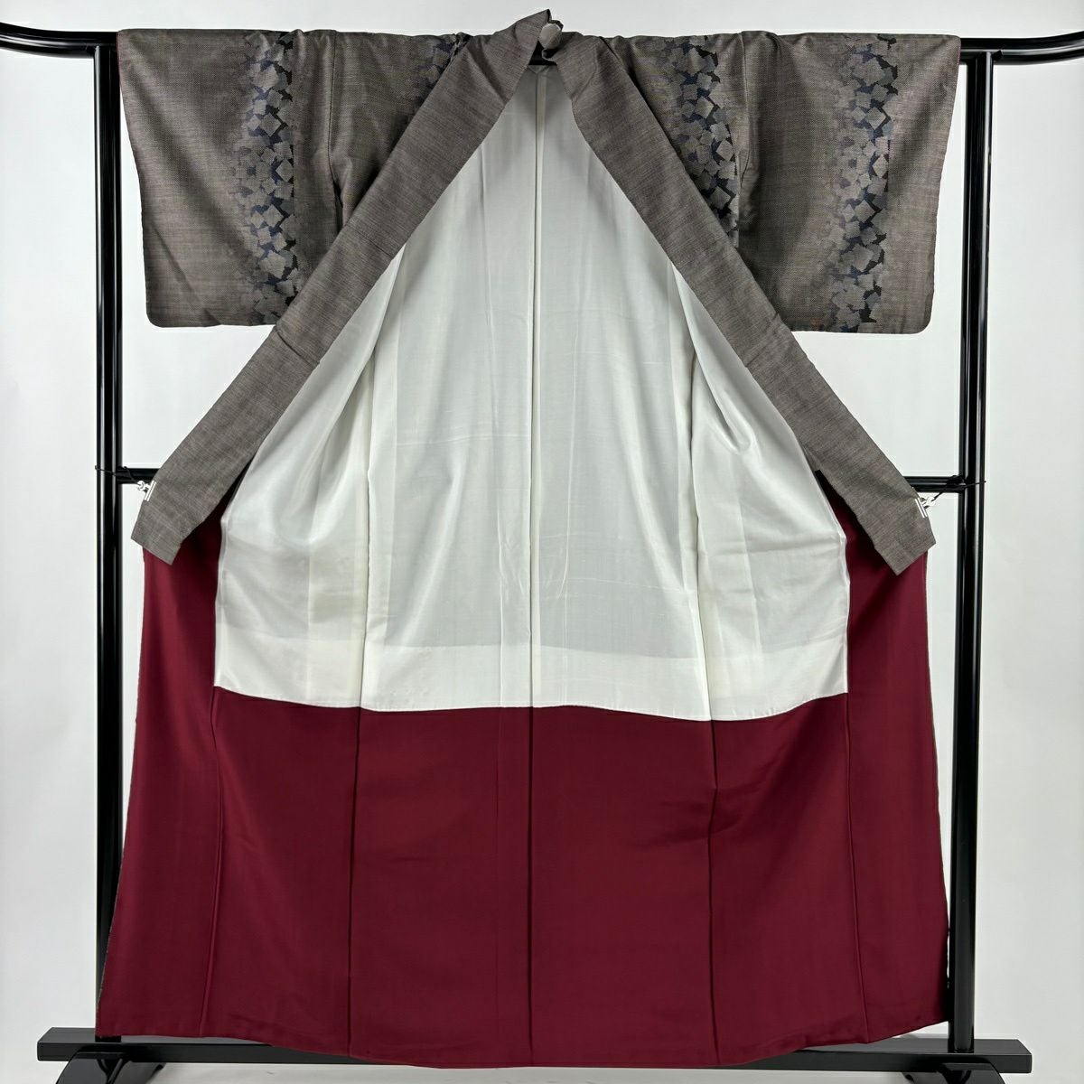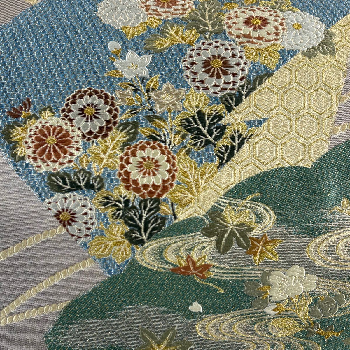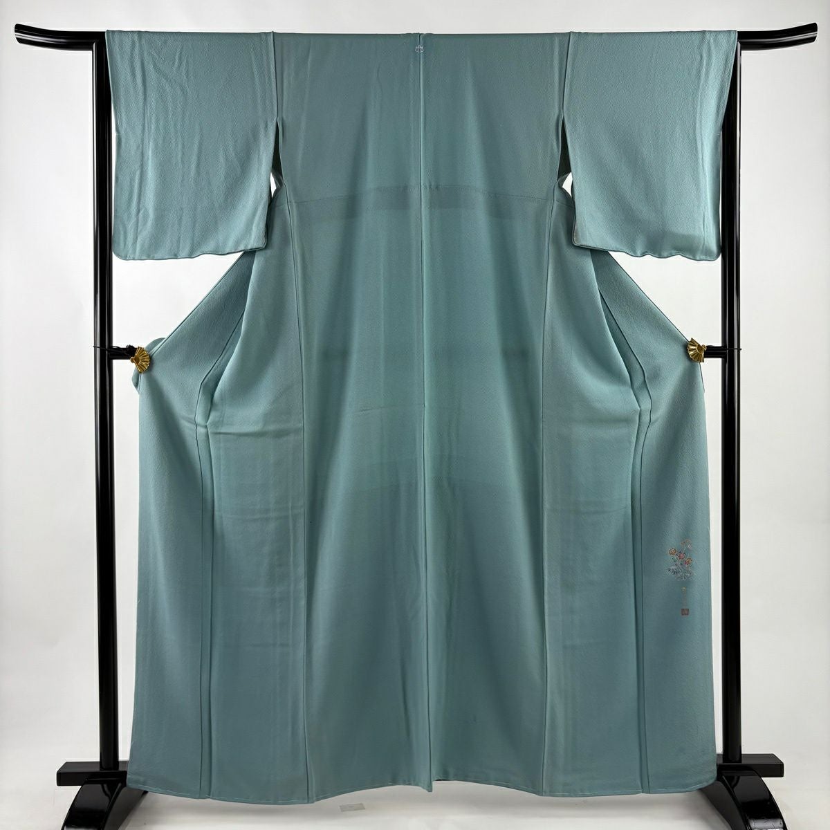付下げ 身丈157.5cm 裄丈66cm M 袷 華文 青海波 刺繍 灰緑 正絹 秀品