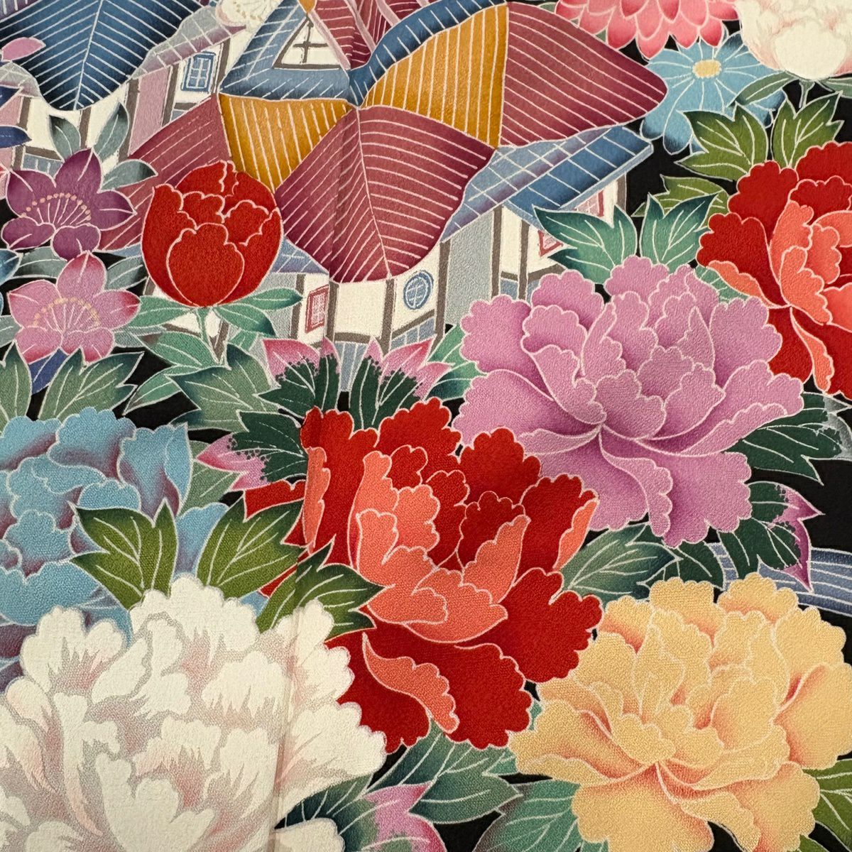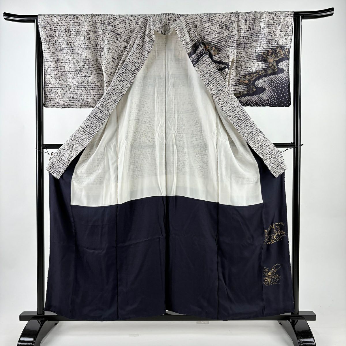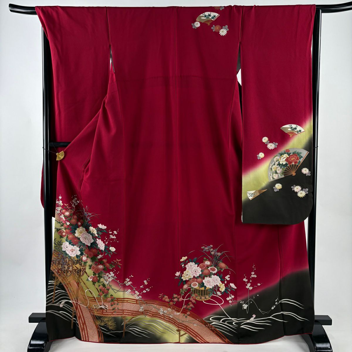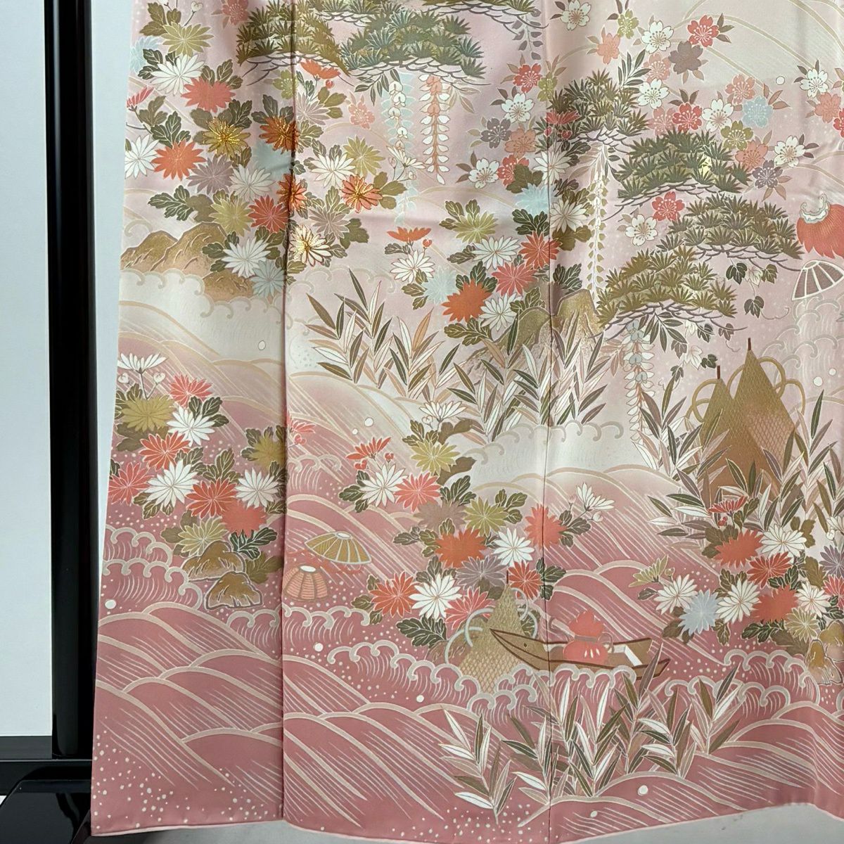 振袖 身丈167.5cm 裄丈66cm M 袷 落款あり 牡丹 松竹梅 黒 正絹 秀品