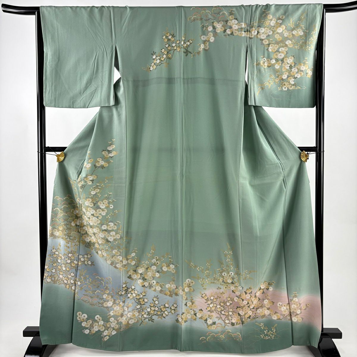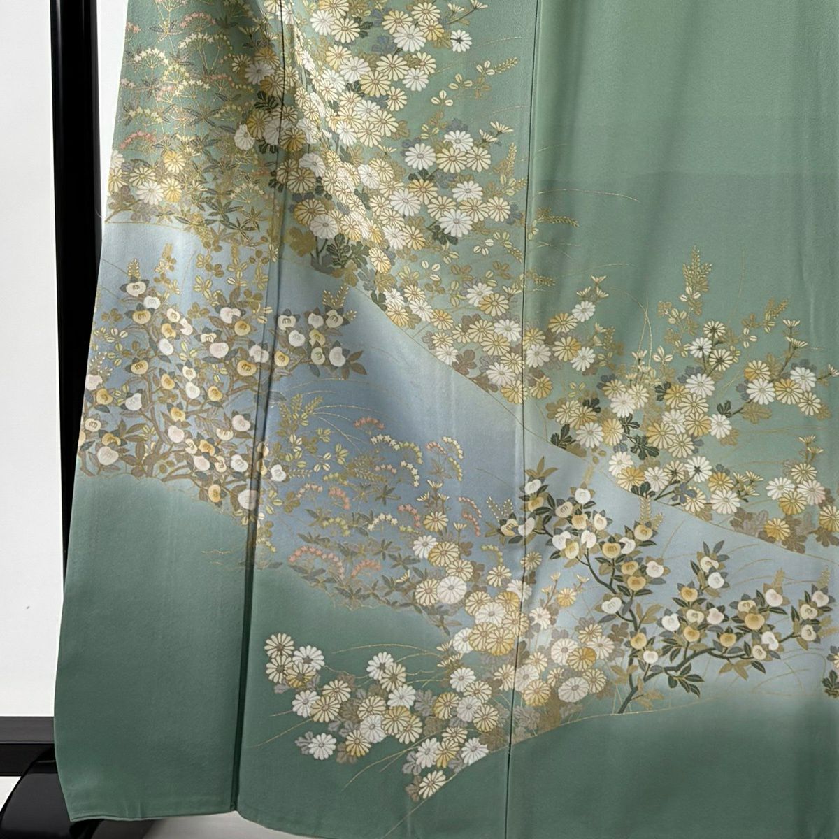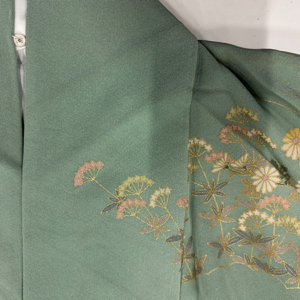 訪問着 身丈164.5cm 裄丈65cm M 袷 秋草 金彩 染め分け 薄緑 正絹 秀品