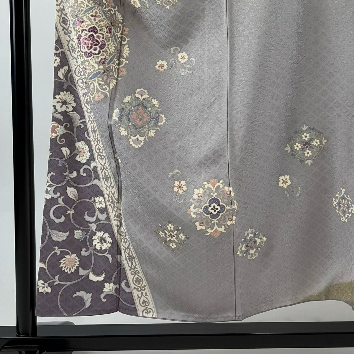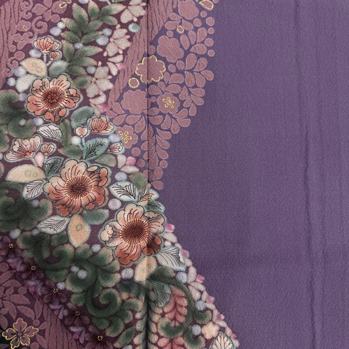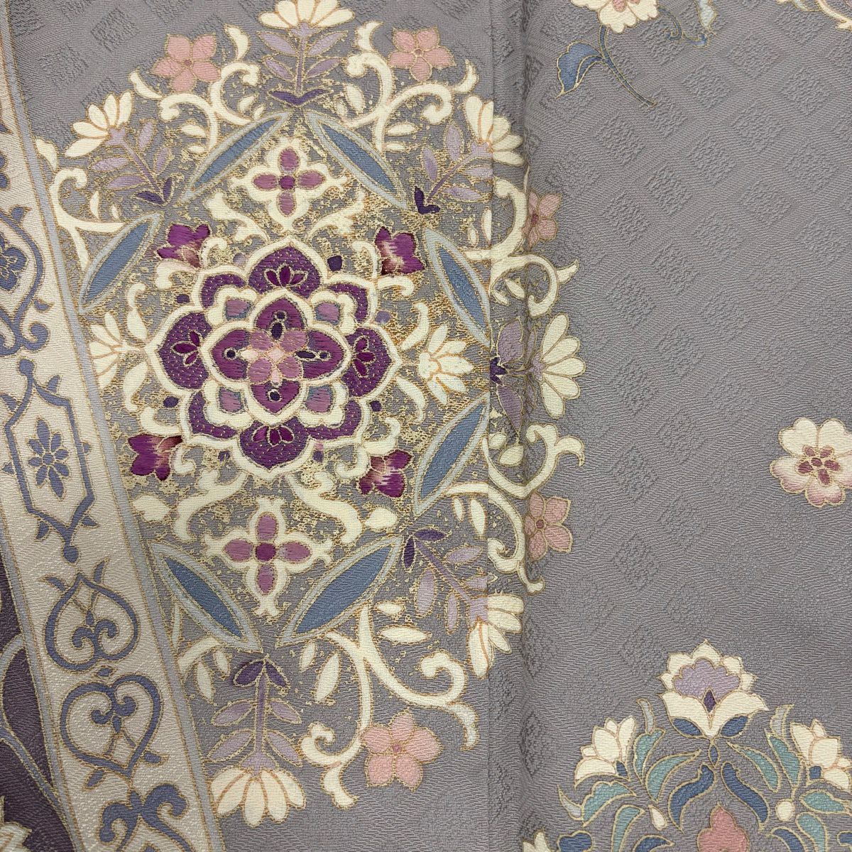 訪問着 身丈150cm 裄丈62.5cm S 袷 草花 金彩 ぼかし 灰紫 正絹 秀品