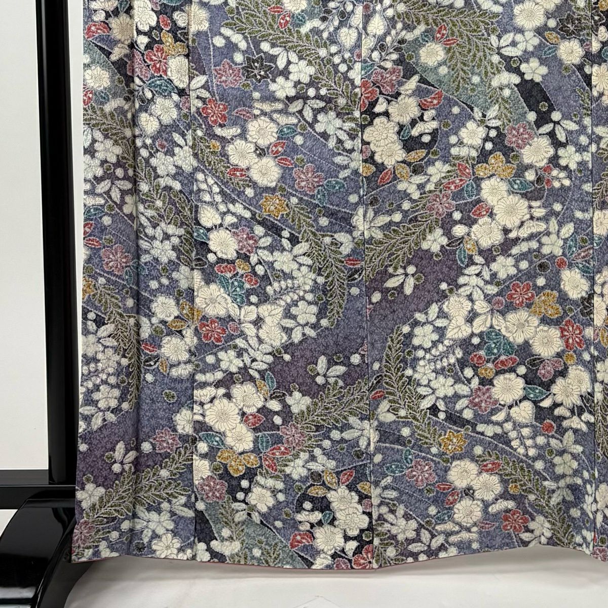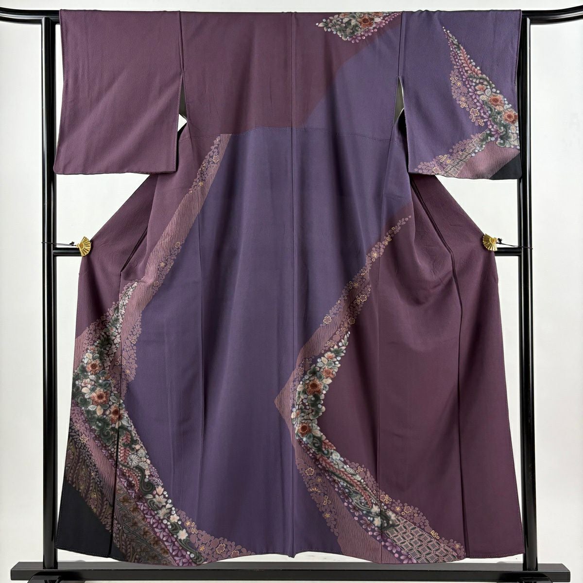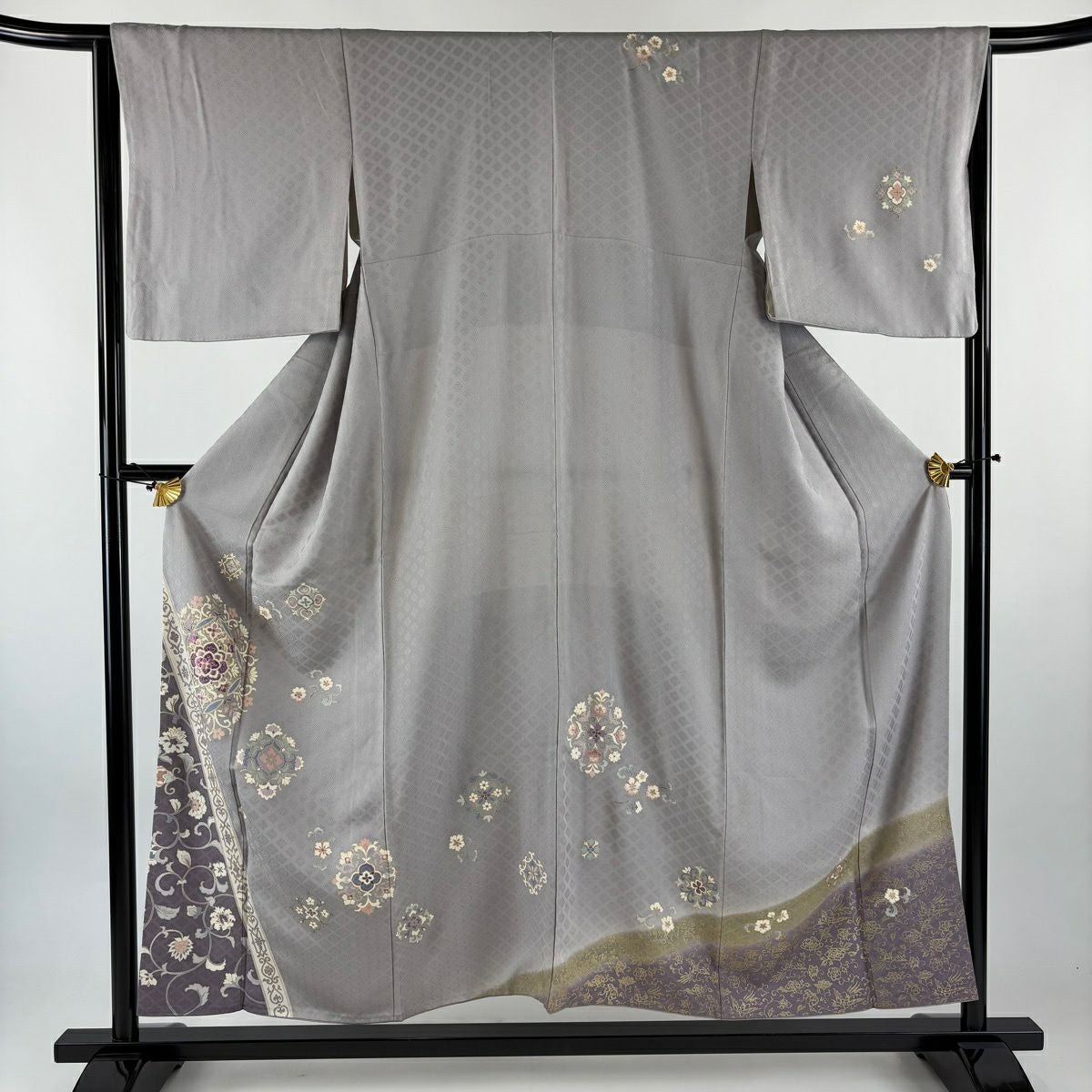 訪問着 身丈150cm 裄丈62.5cm S 袷 草花 金彩 ぼかし 灰紫 正絹 秀品