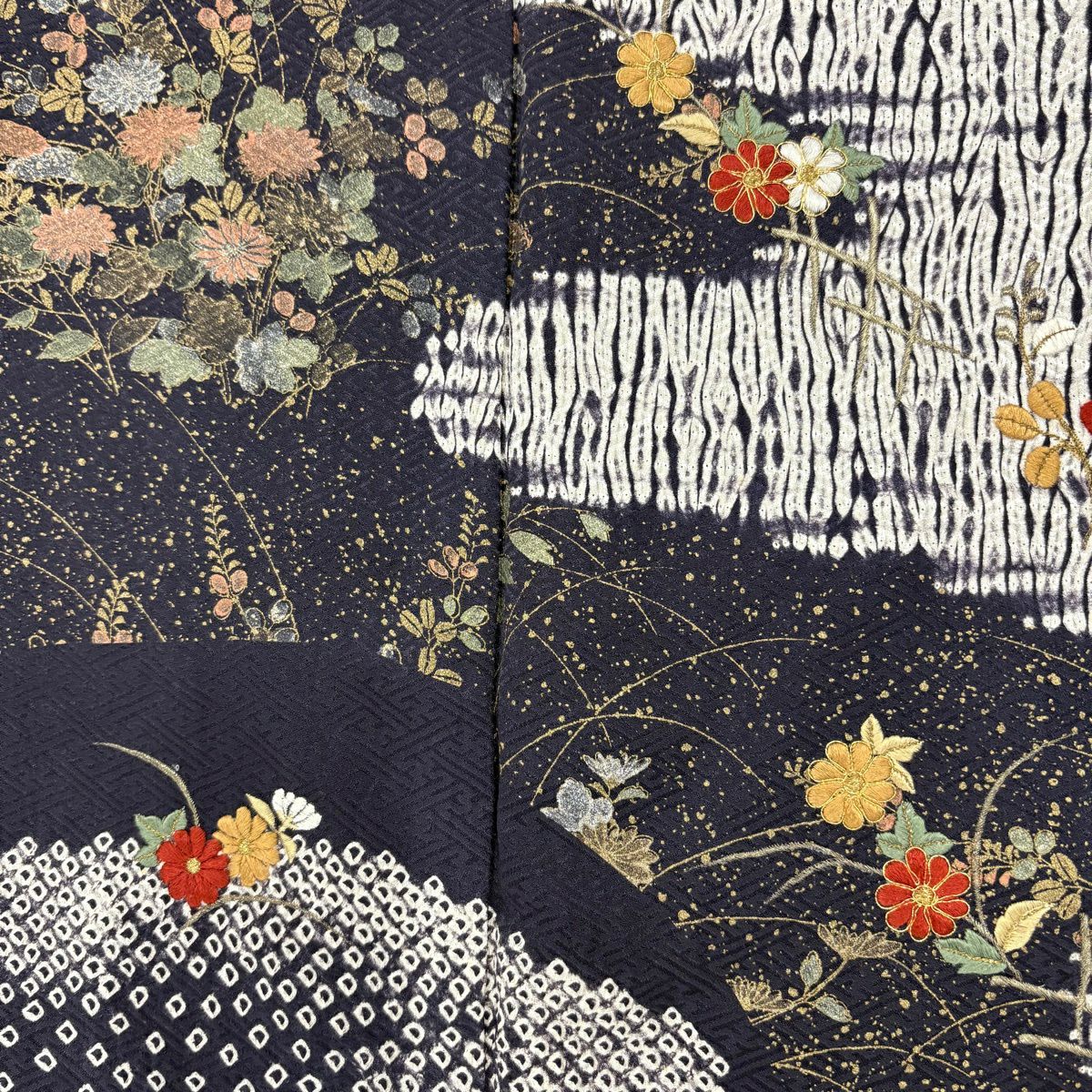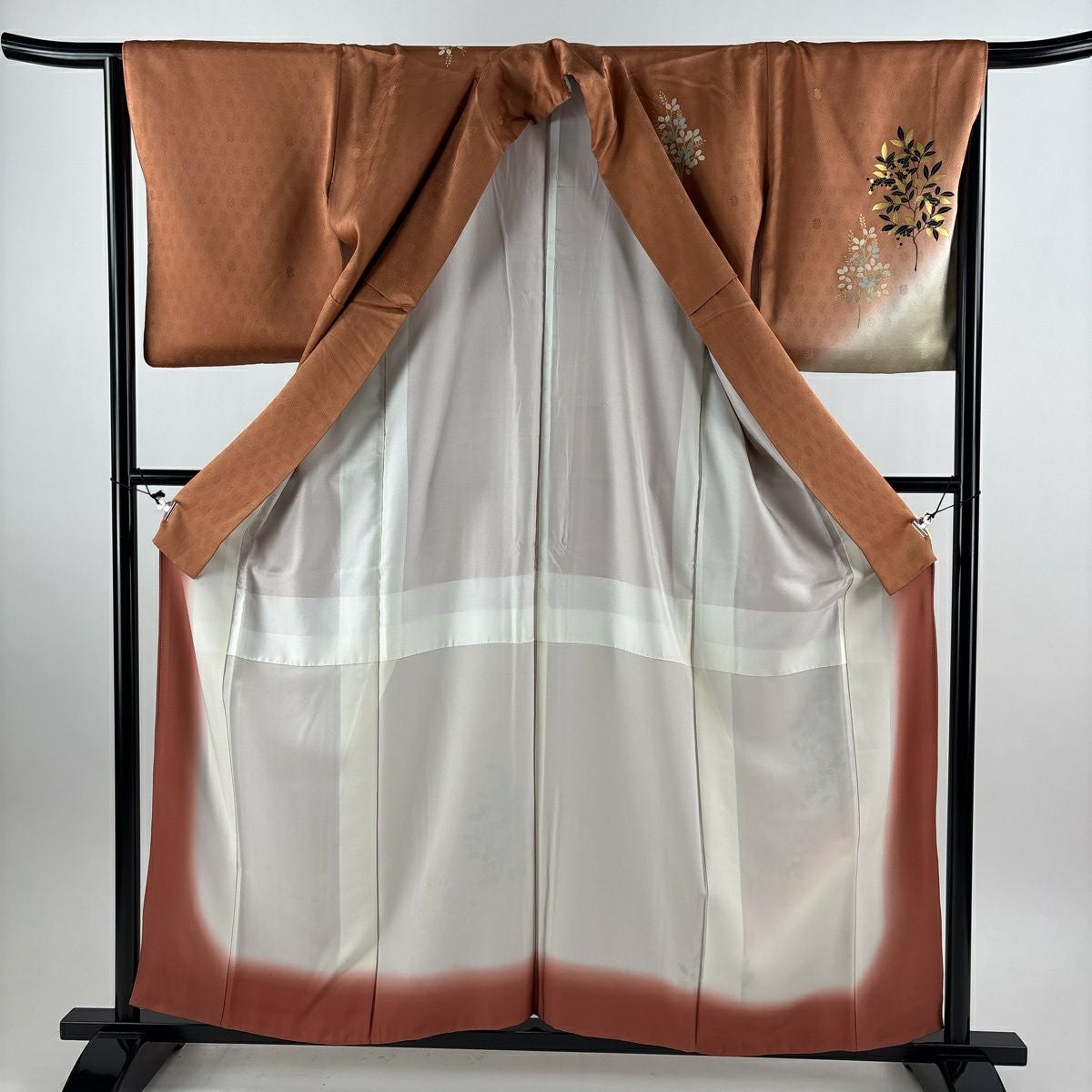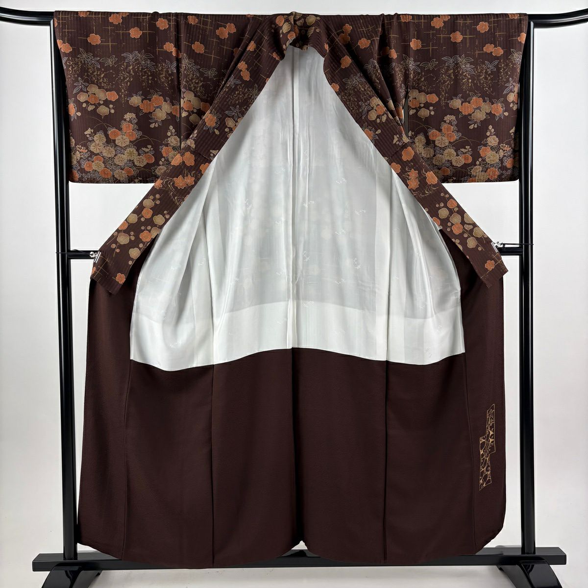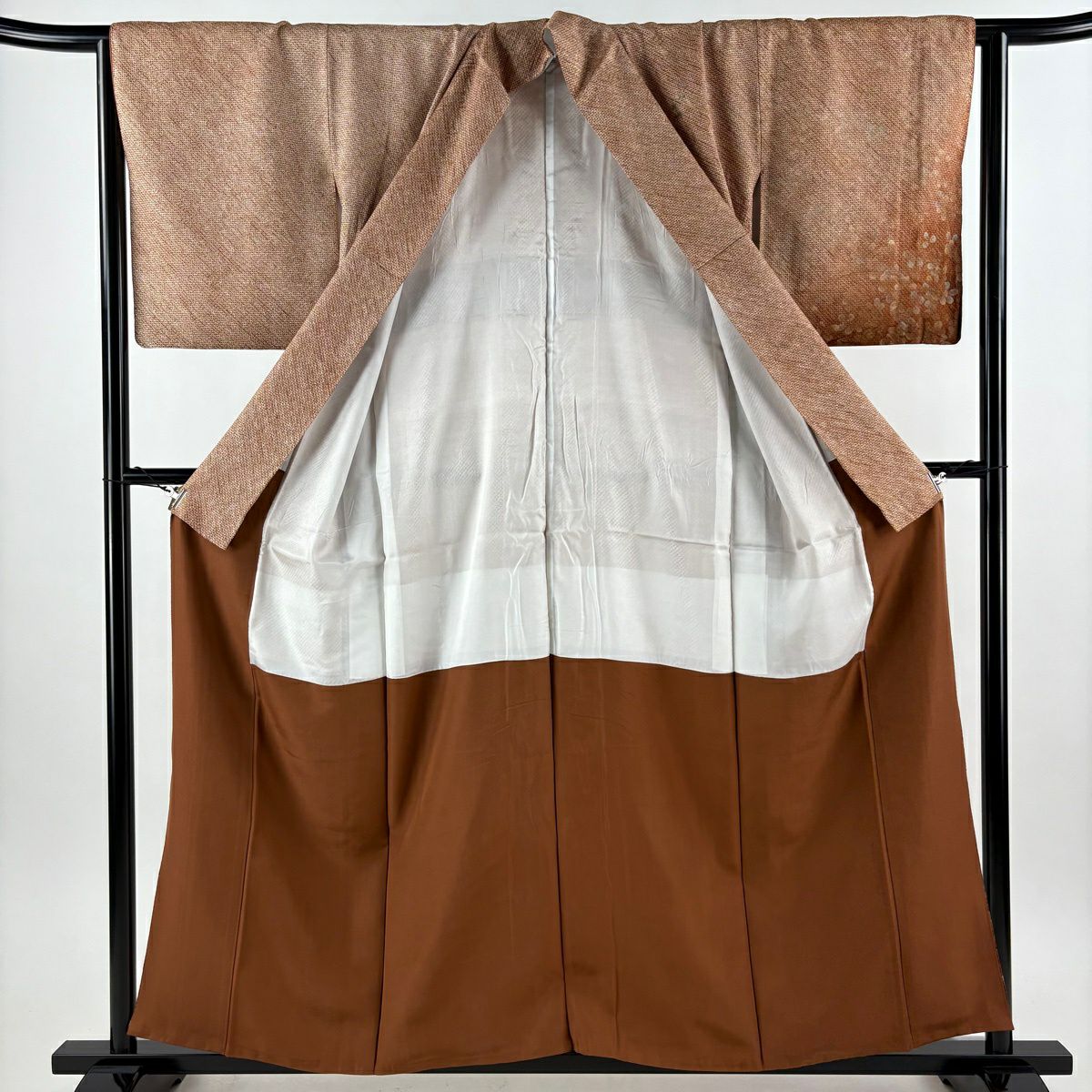 付下げ 身丈158cm 裄丈64cm M 袷 萩 草花 刺繍 総絞り 茶色 正絹 秀品