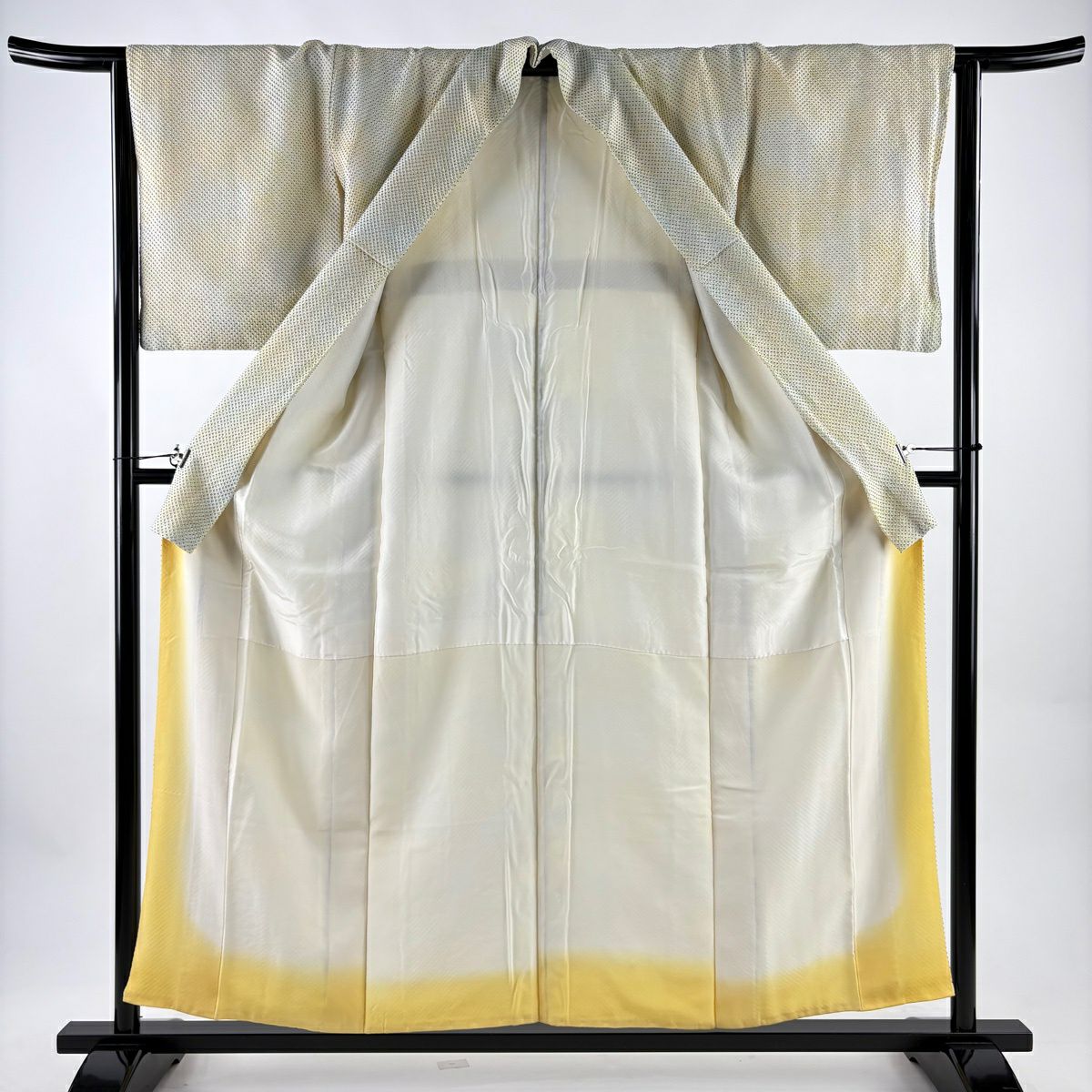【美品】 小紋 身丈156cm 裄丈64cm M 袷 総絞り ぼかし 薄黄 正絹 秀品