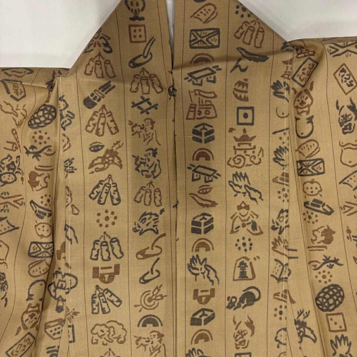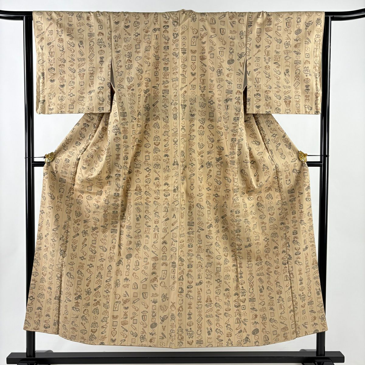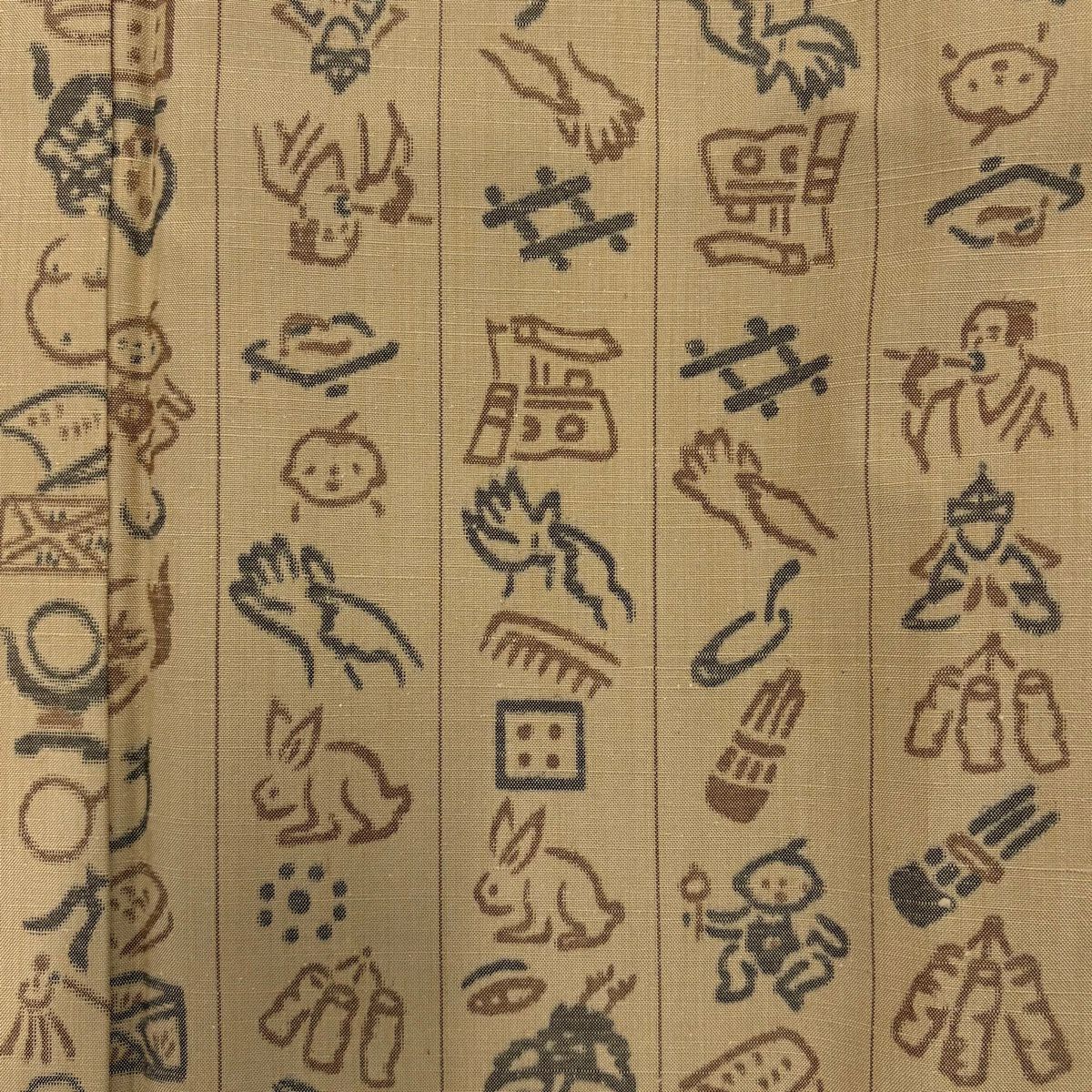 【美品】 紬 身丈152cm 裄丈64.5cm M 袷 動物 人物 薄茶色 正絹 秀品