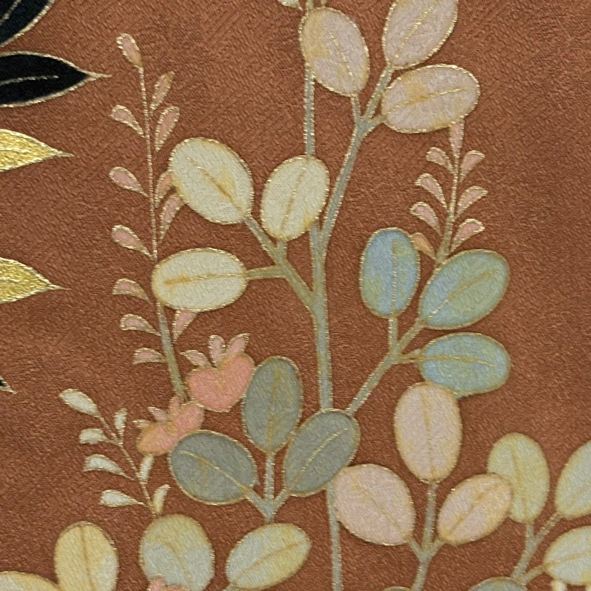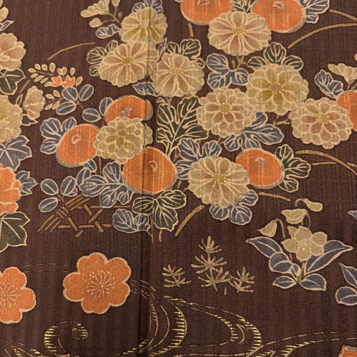 訪問着 身丈158cm 裄丈65cm M 袷 万寿菊 椿 金通し 金彩 赤茶 正絹 秀品