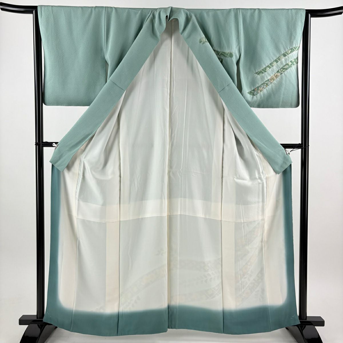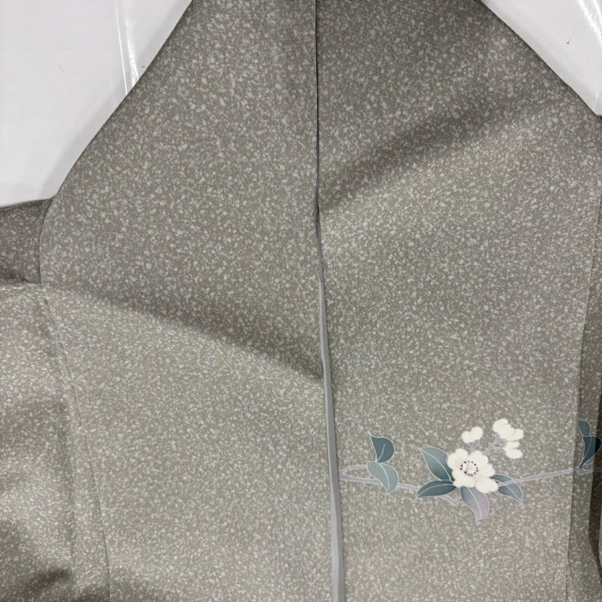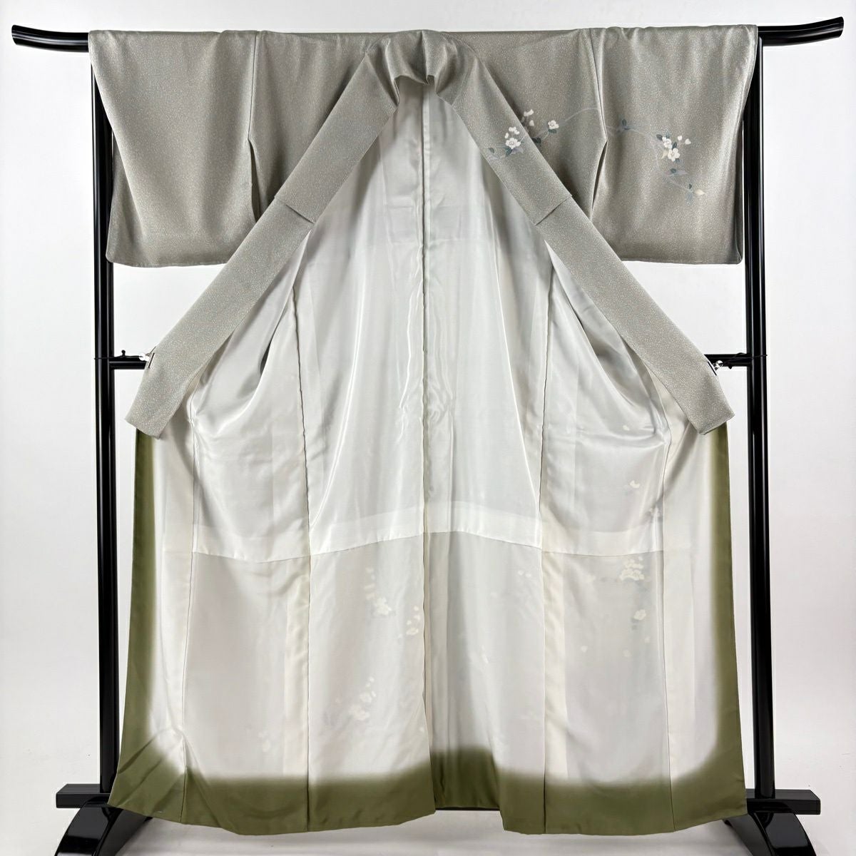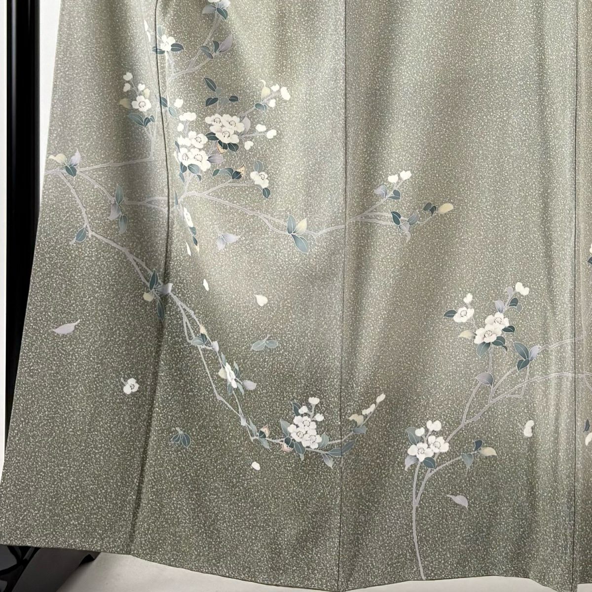 付下げ 身丈154cm 裄丈64.5cm M 袷 華文 刺繍 ぼかし 灰緑 正絹 秀品
