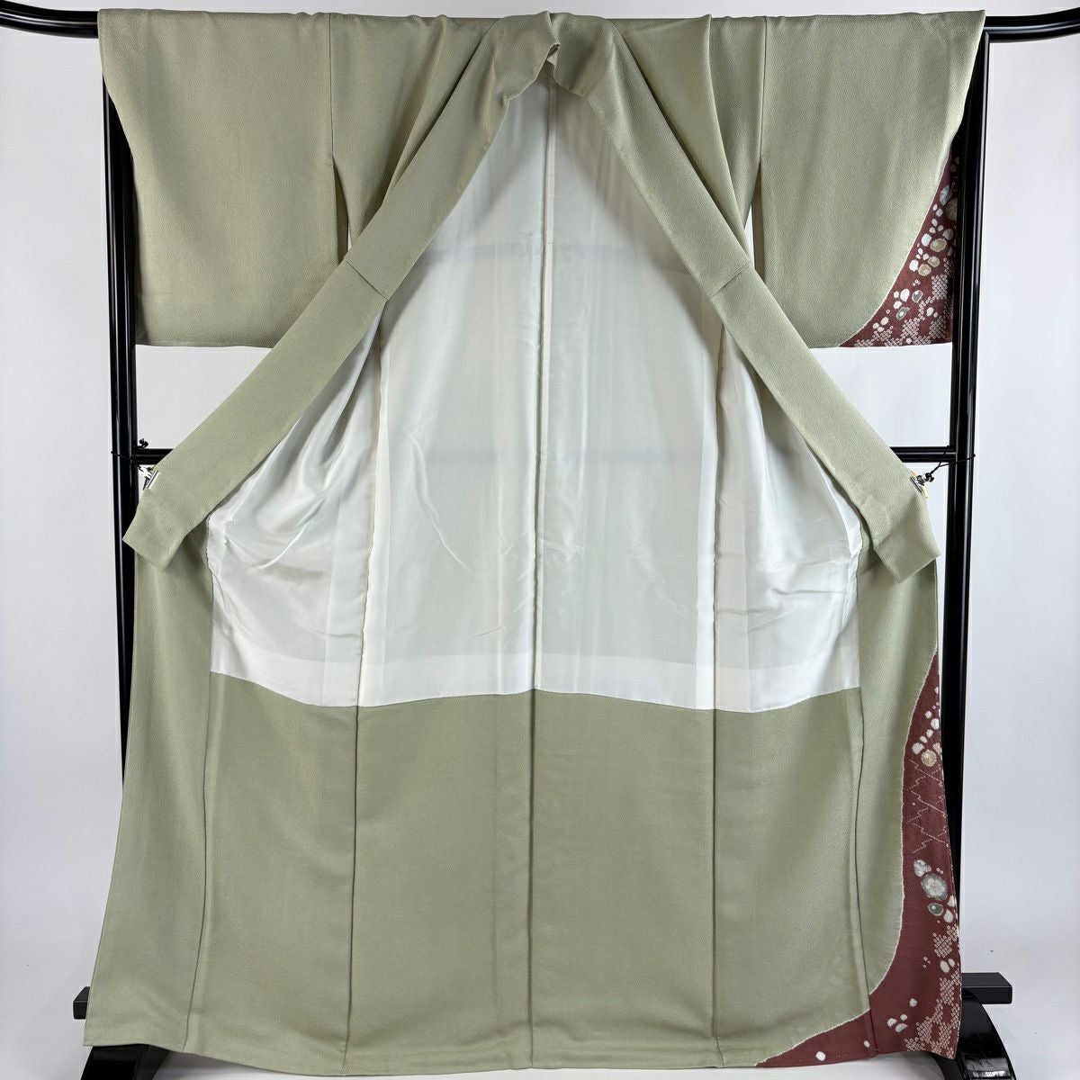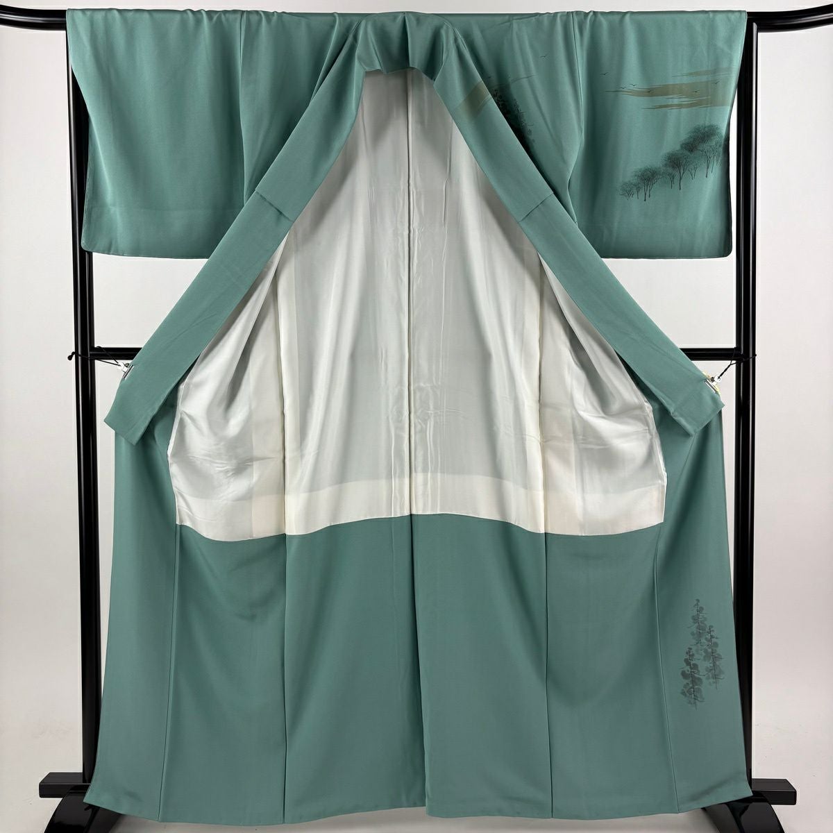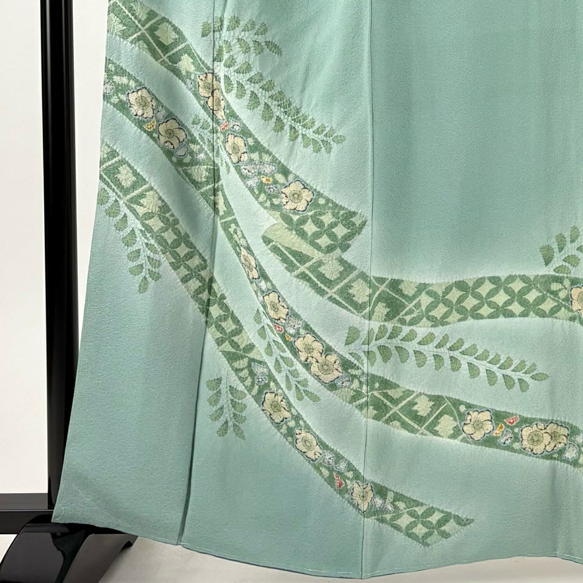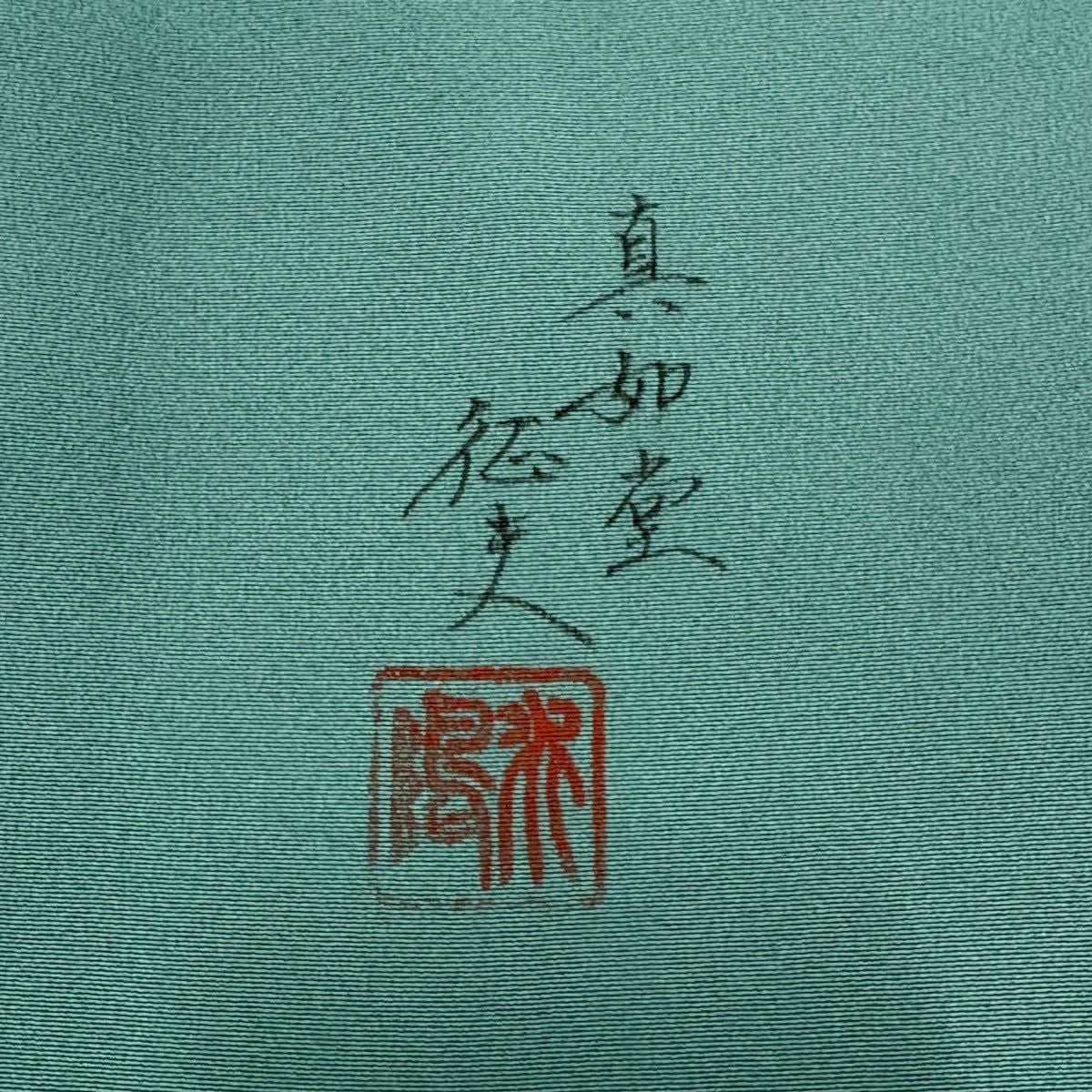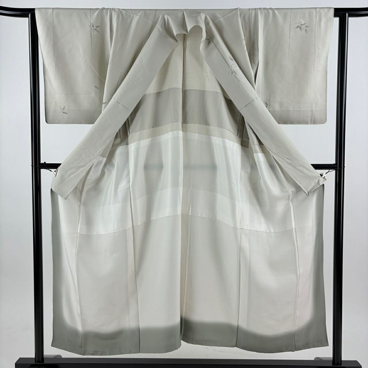 付下げ 身丈154cm 裄丈64.5cm M 袷 華文 刺繍 ぼかし 灰緑 正絹 秀品