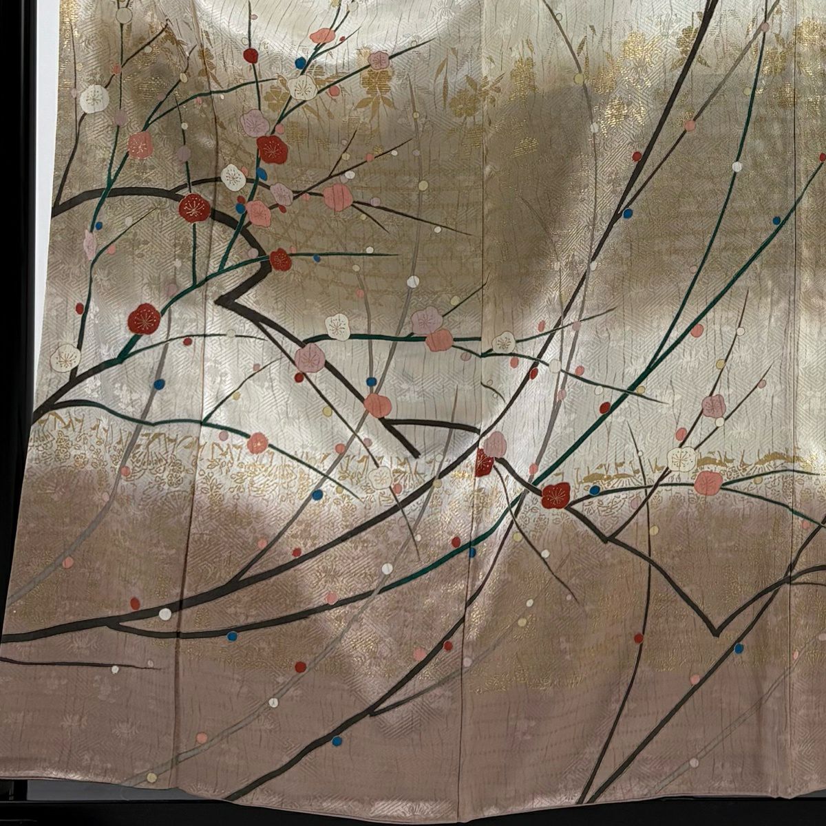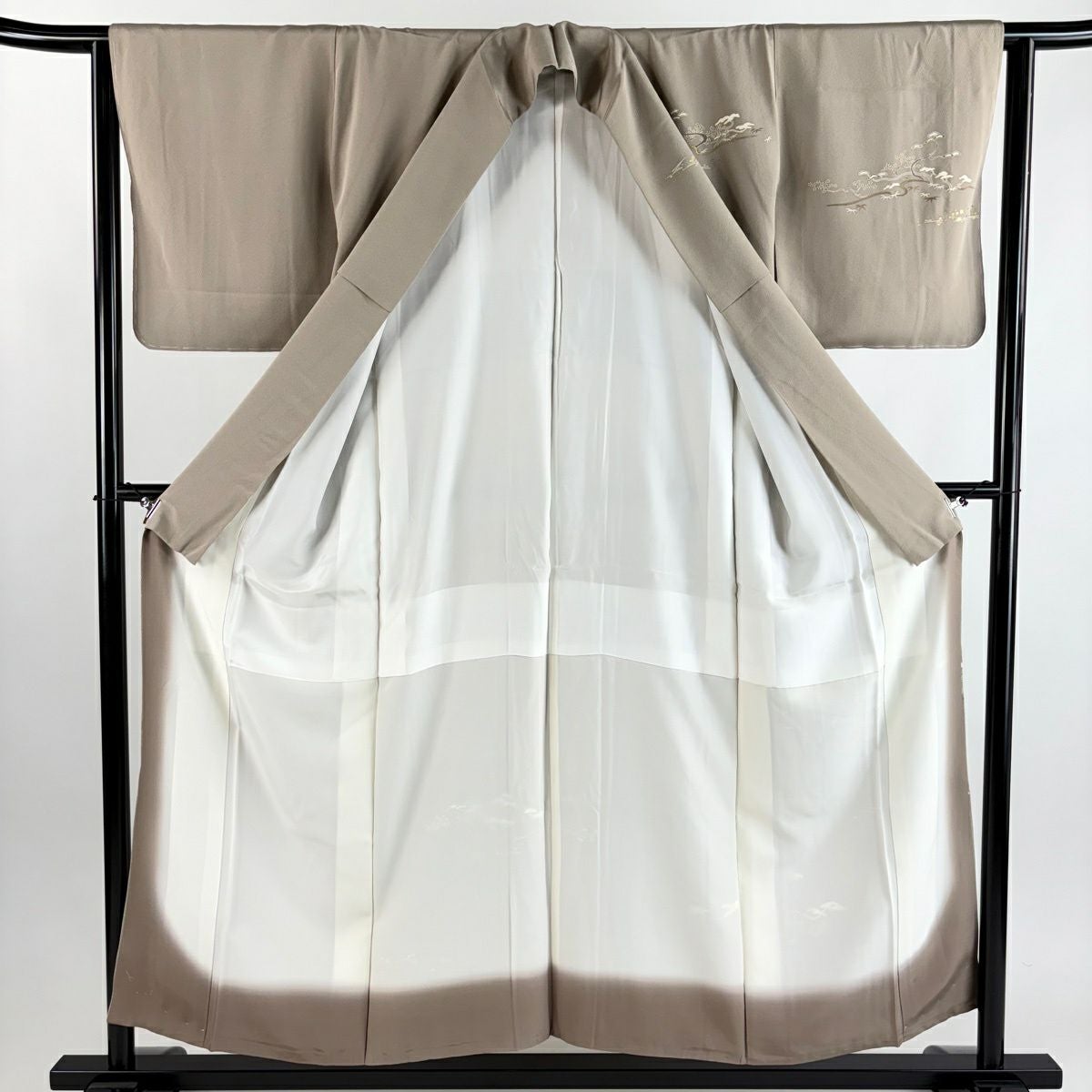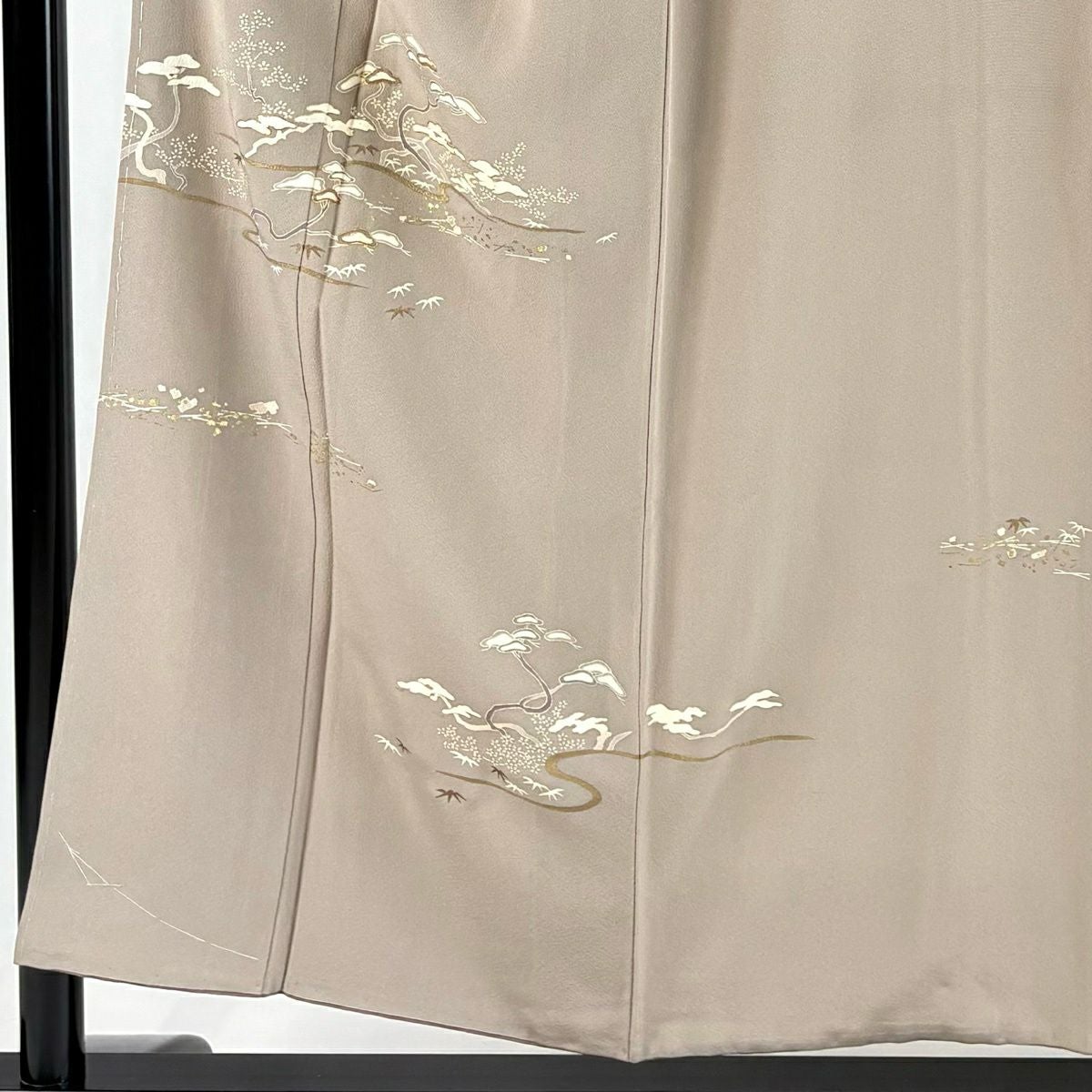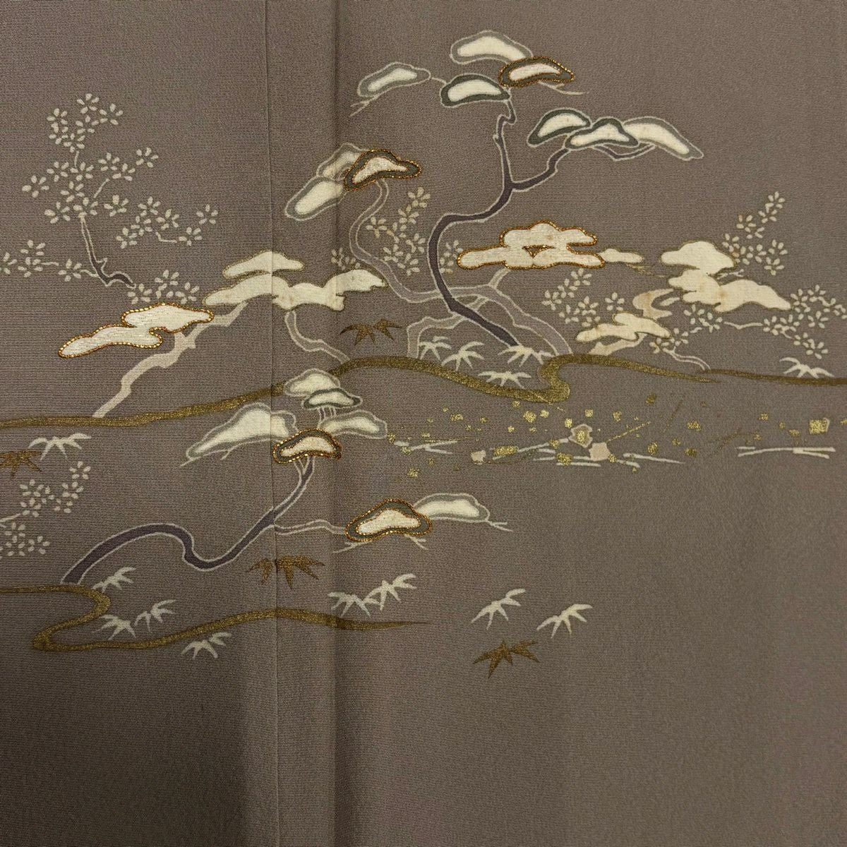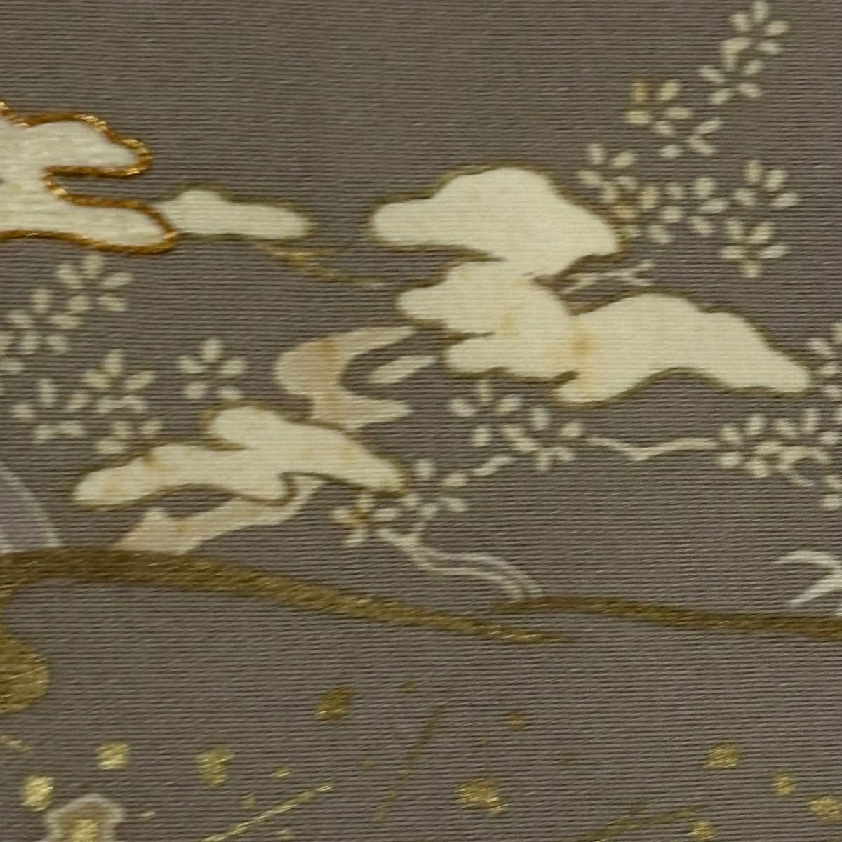 付下げ 身丈153.5cm 裄丈63.5cm S 袷 松竹梅 霞 金彩 金糸 灰茶 正絹 秀品