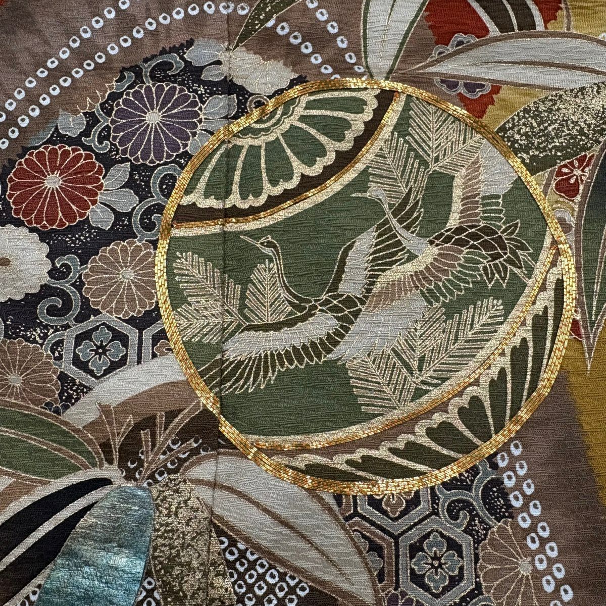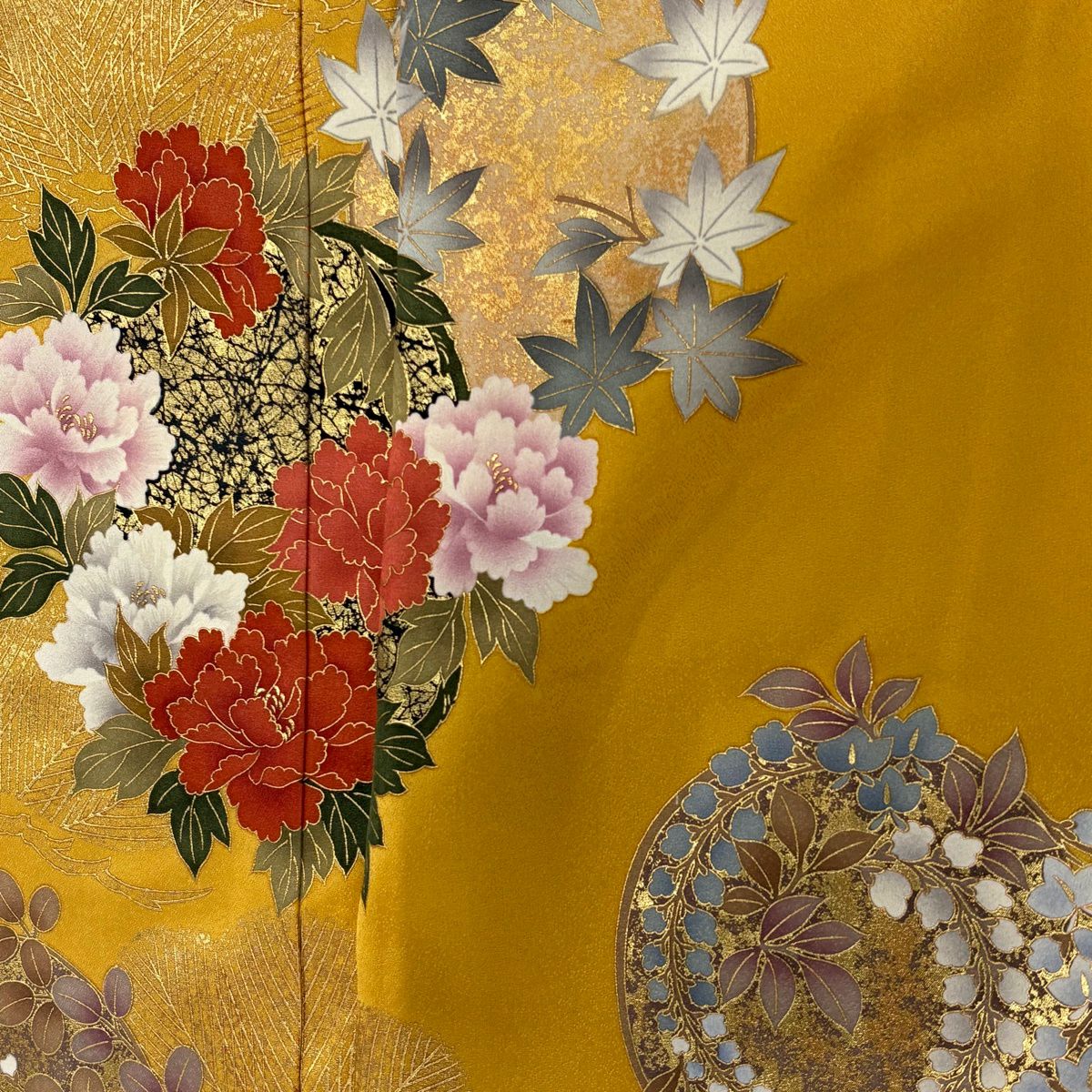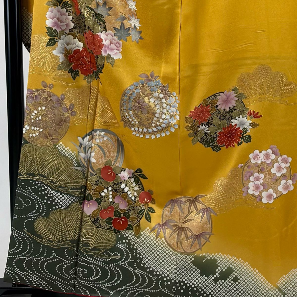 振袖 身丈164cm 裄丈65.5cm M 袷 鳳凰 桜 金彩 ラメ 鶯色 正絹 秀品