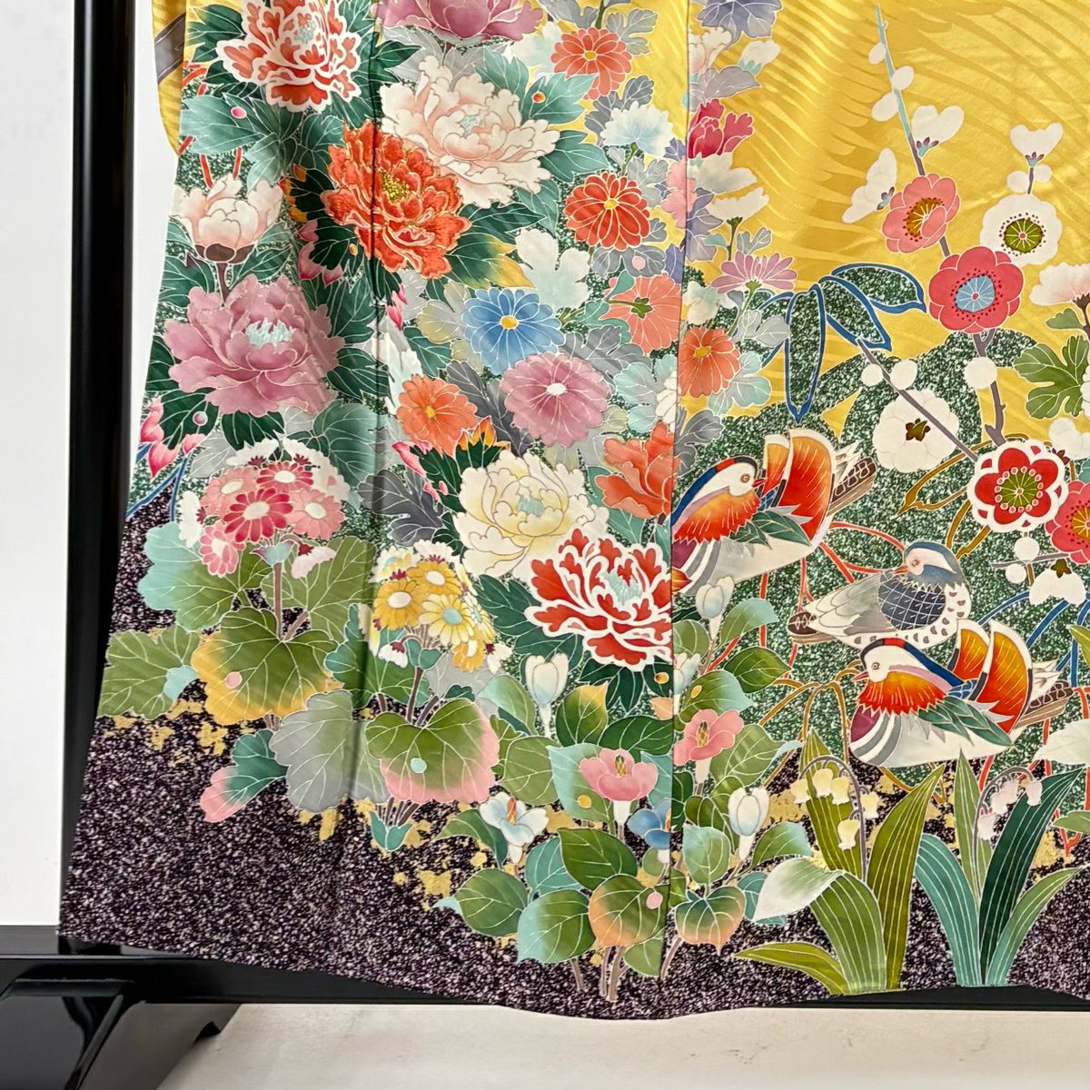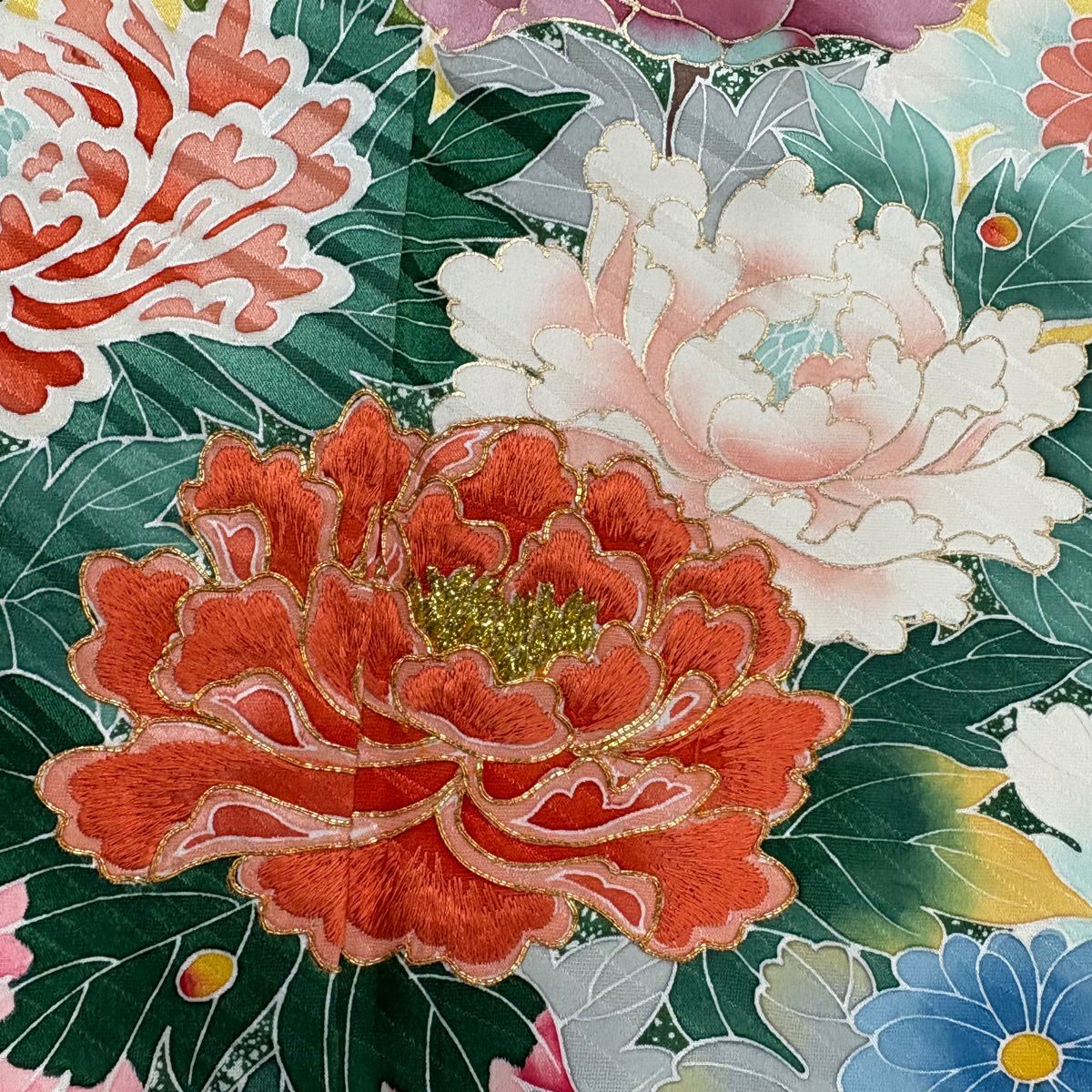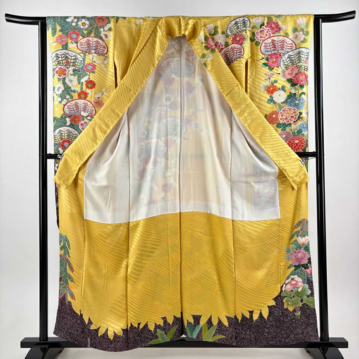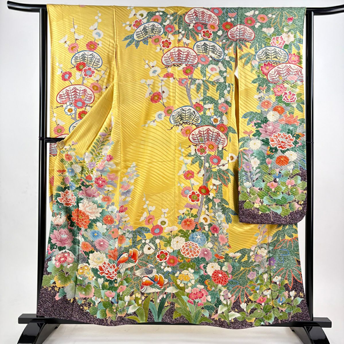 振袖 身丈164cm 裄丈65.5cm M 袷 鳳凰 桜 金彩 ラメ 鶯色 正絹 秀品